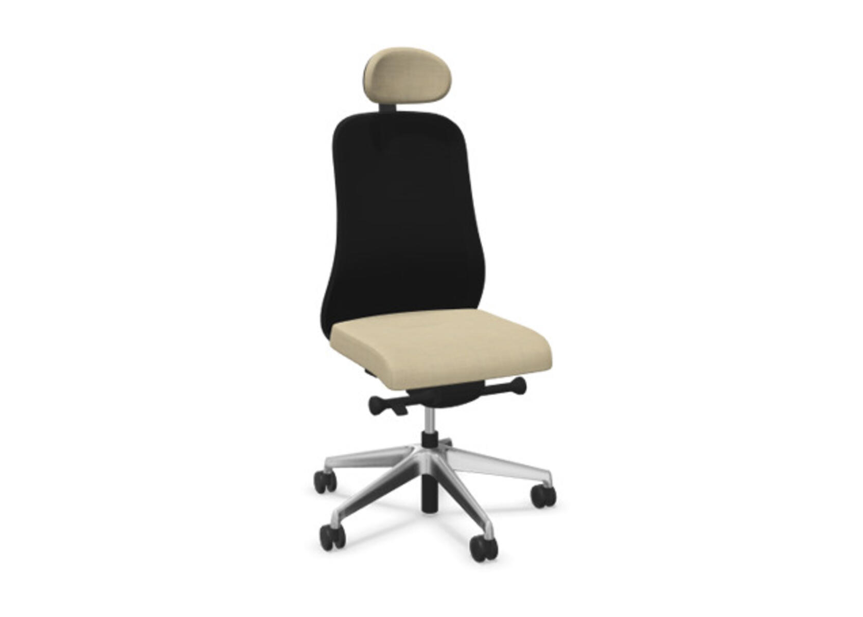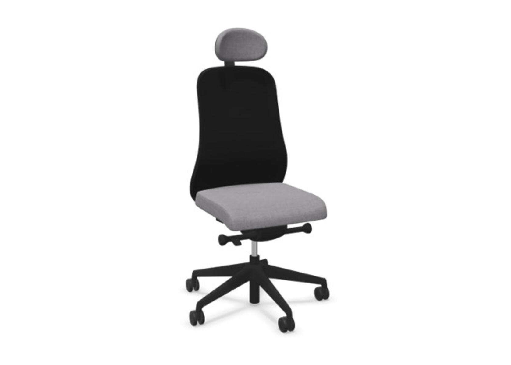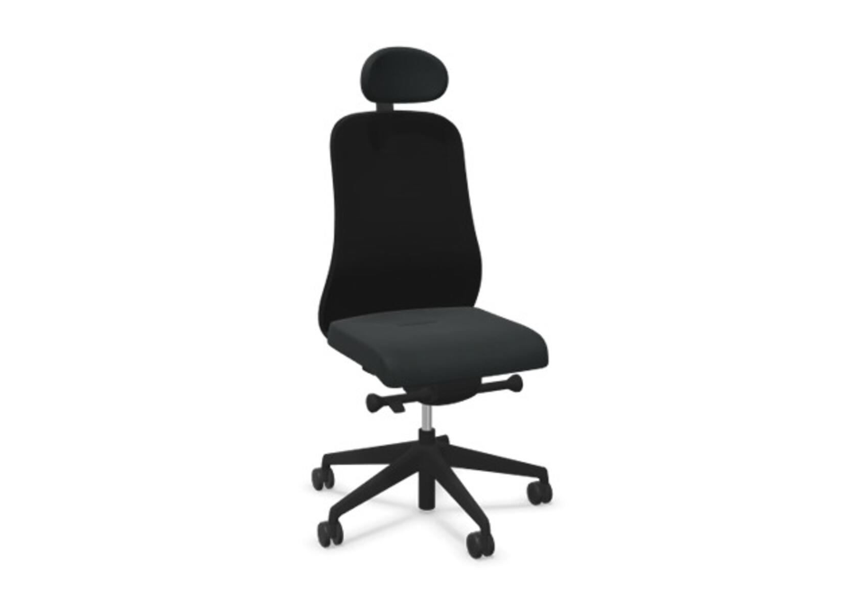 Moderni ja ergonominen toimistotuoli, jossa verhoiltu selkänoja, kehittynyt synkromekanismi ja istuinsyvyyden säätö, tarjoen optimaalisen tuen aktiiviseen istumiseen koko työpäivän ajan. Verhoiltu polyesterikankaalla. Synkronoitu selkänojan ja istuimen kallistus mahdollistaa aktiivisen ja mukavan istuma-asennon. Selkänojan kallistuskulma 23° synkronoitu istuimen 10° kallistuskulman kanssa. Selkänoja lukittavissa 5 eri asentoon mahdollistaen yksilöllisen säädön, ja sen vastusta voi säätää helposti säätönupilla, 7 eri kohtaan. Ei selkänojan korkeussäätöä. Istuinsyvyyden säätö 60 mm, 7 lukitusasentoa. Negatiivinen istuinkulma –2°, synkronoitu selkänojan 5° kallistukseen, mikä takaa optimaalisen tuen kaikissa kallistusasennossa. Selkänojassa on Anti-Shock-toiminto, joka estää selkänojaa palautumasta äkillisesti, kun kallistus vapautetaan. Verhoiltu niskatuki, säädettävä: syvyys 20 mm, kulma 70° ja korkeus 100 mm. Valitse ristikko vaaleanharmaasta polyamidista tai kiillotetusta alumiinista sekä itsestään jarruttavat pyörät pehmeille tai koville lattioille. Lisävarusteena saatavilla lannerangan tuki, manuaalisesti säädettävä korkeussuunnassa (55 mm). Käsinojat (2D, 3D tai 4D) myydään erikseen.
