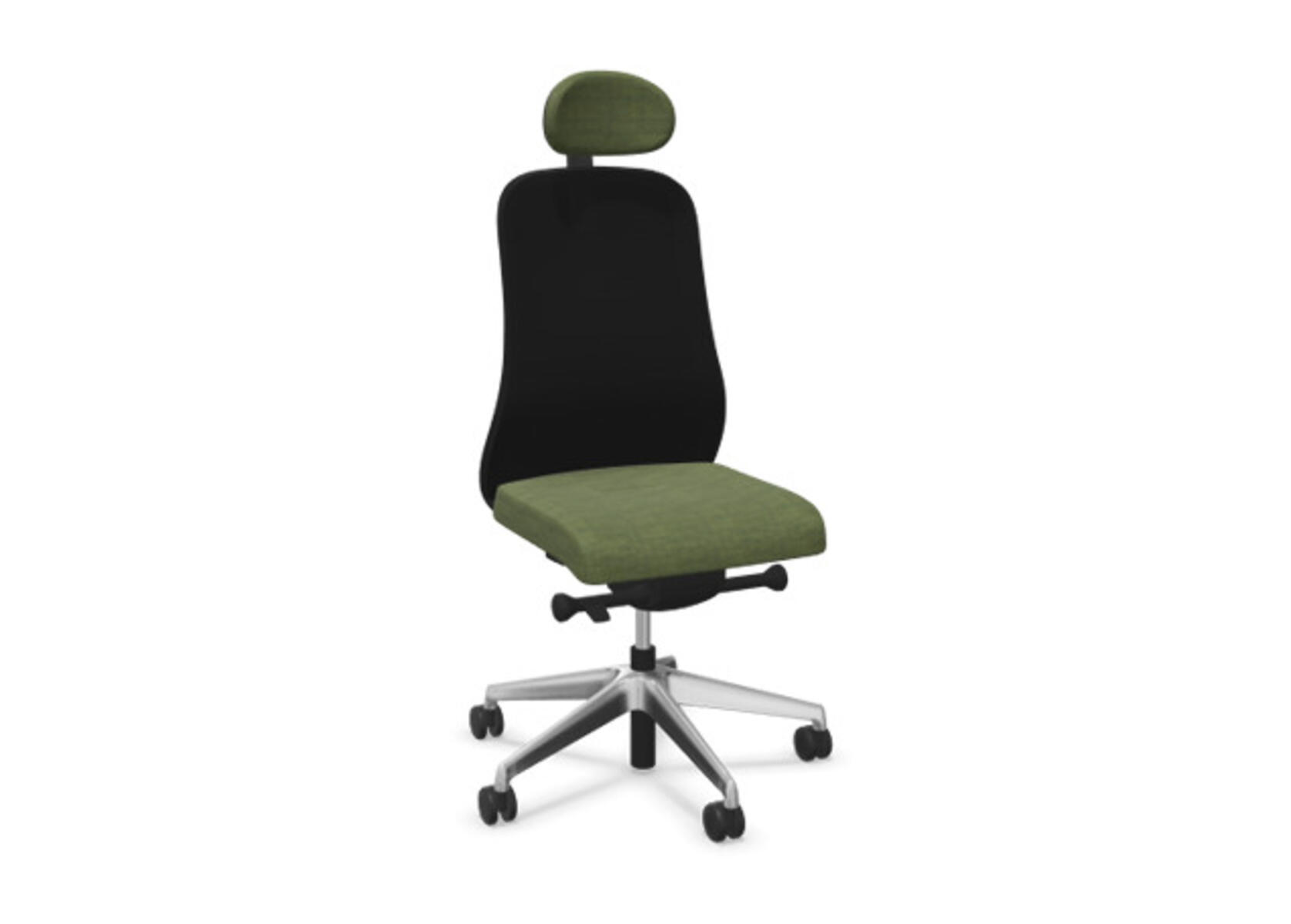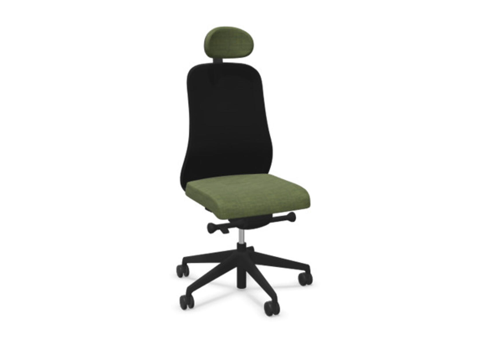 Ergonominen toimistotuoli, jossa on puoliverhoiltu keskikorkea selkänoja ja synkronimekanismi aktiiviseen työskentelyasentoon. Selkänojan kallistuskulma 20° ja istuinosan 11°, synkronoitu liike. Selkänoja lukittavissa viiteen asentoon, vastus säädettävissä säätönupilla. Selkänojan korkeussäätö 75 mm, 13 lukitusasentoa. Anti-Shock-toiminto estää selkänojan äkillisen palautumisen. Valittavissa musta polyamidiristikko tai kiillotettu alumiiniristikko. Itsejarruttavat pyörät pehmeille tai koville lattioille. Käsinojat (2D, 3D tai 4D) myydään erikseen.