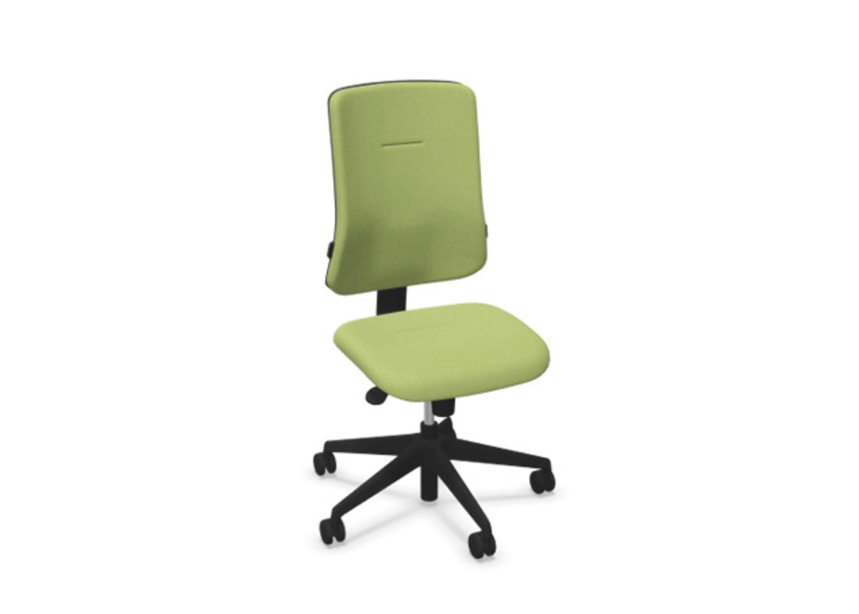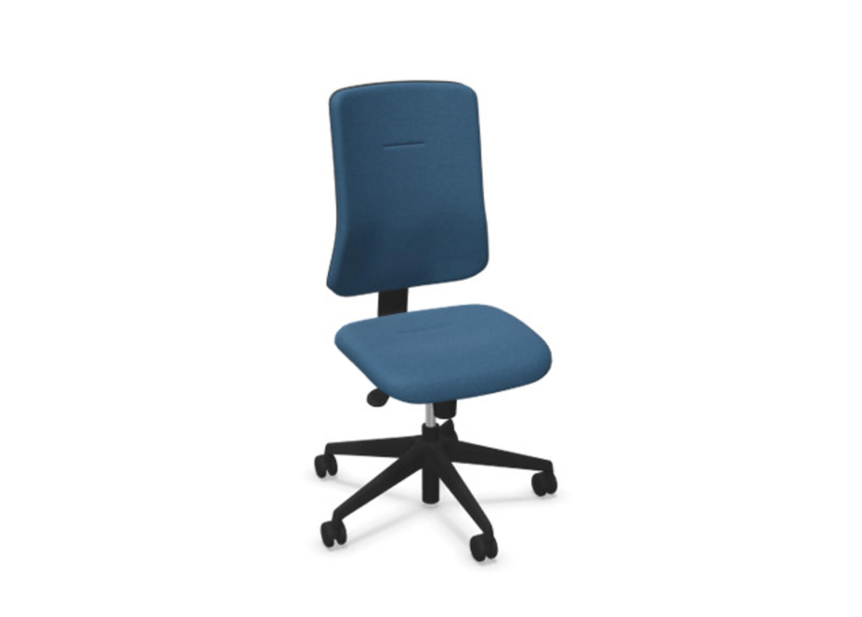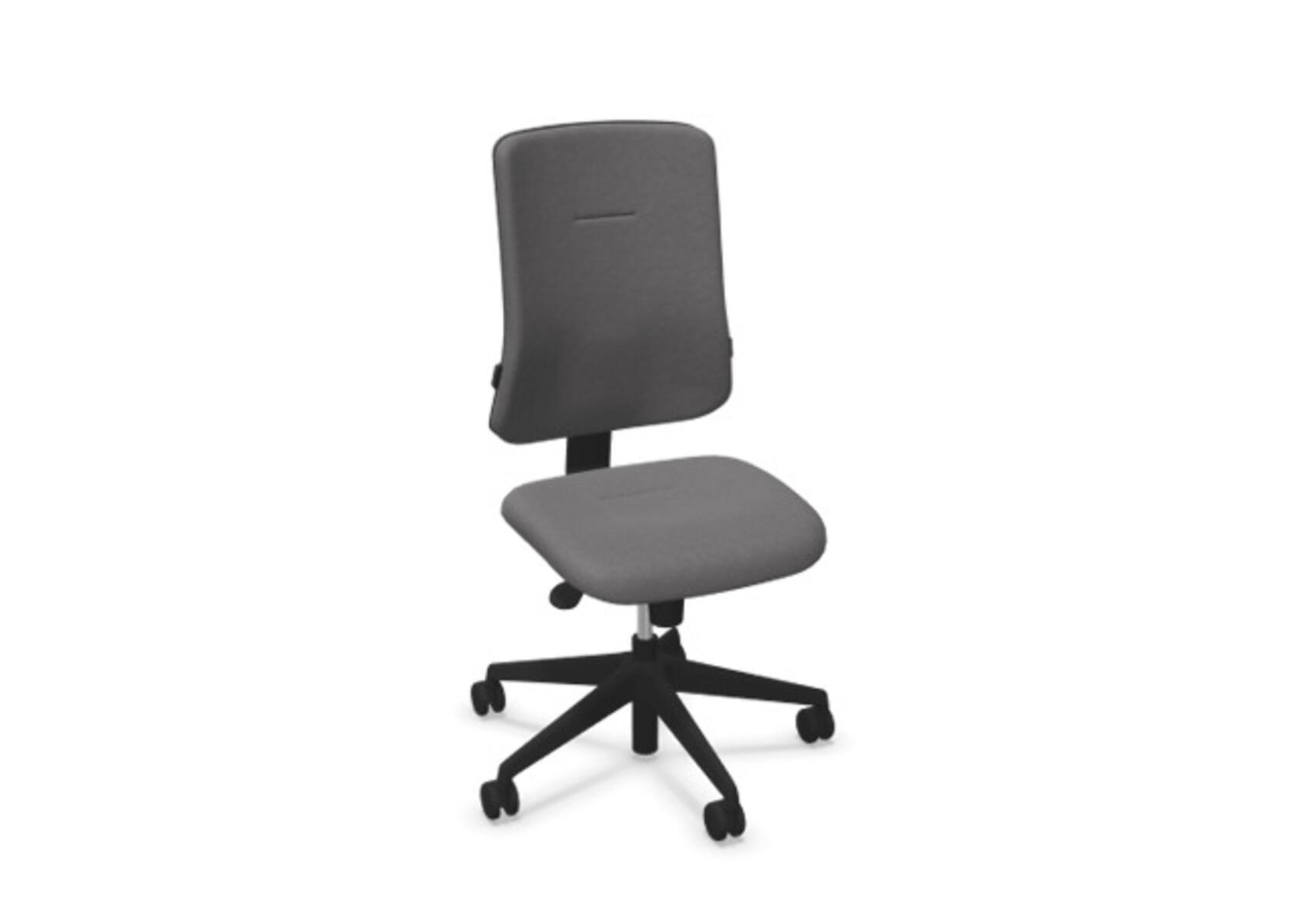 Ergonominen toimistotuoli, jossa verhoiltu selkänoja. Edistynyt synkronimekanismi takaa aktiivisen ja mukavan istuma-asennon koko työpäivän ajan. Verhoiltu polyesterikankaalla. Synkronoitu selkänojan ja istuimen kallistus mahdollistaa aktiivisen ja mukavan istuma-asennon. Selkänojan kallistuskulma 20° synkronoitu istuimen 11° kallistuskulman kanssa. Selkänoja lukittavissa 5 asentoon, selkänojan vastus säädettävissä säätönupilla. Selkänoja on korkeussäädettävä 70 mm ja lukittavissa 5 eri asentoon. Verhoiltu niskatuki, säädettävä: syvyys 20 mm, kulma 70° ja korkeus 100 mm. Selkänojassa on Anti-Shock-toiminto, joka estää selkänojaa palautumasta äkillisesti, kun kallistus vapautetaan. Valitse ristikko mustasta polyamidista tai kiillotetusta alumiinista sekä itsestään jarruttavat pyörät pehmeille tai koville lattioille. Lisävarusteena saatavilla lannerangan tuki, manuaalisesti säädettävä syvyyssuunnassa (15 mm) ja korkeussuunnassa (20 mm). Käsinojat (2D, 3D tai 4D) myydään erikseen.