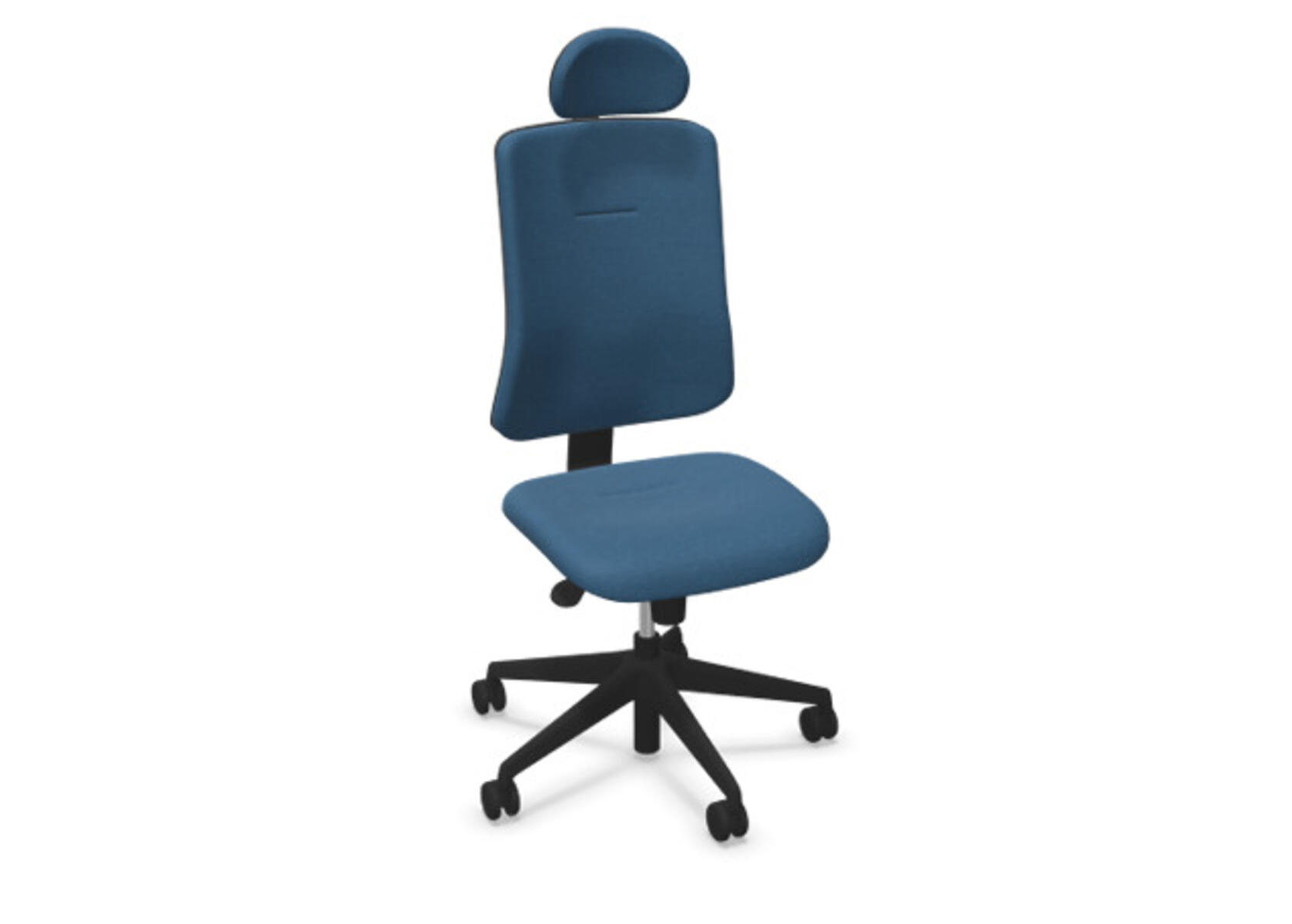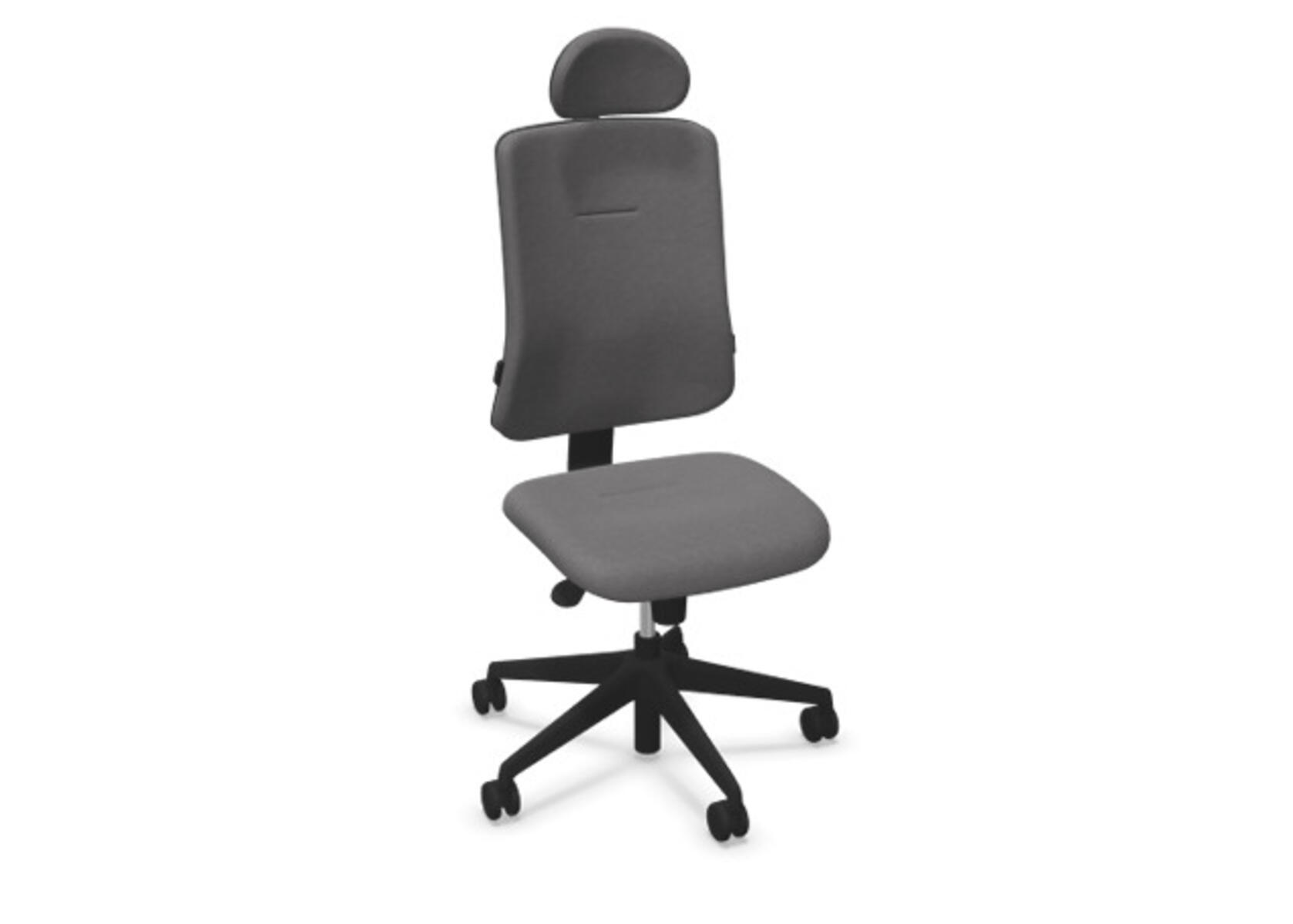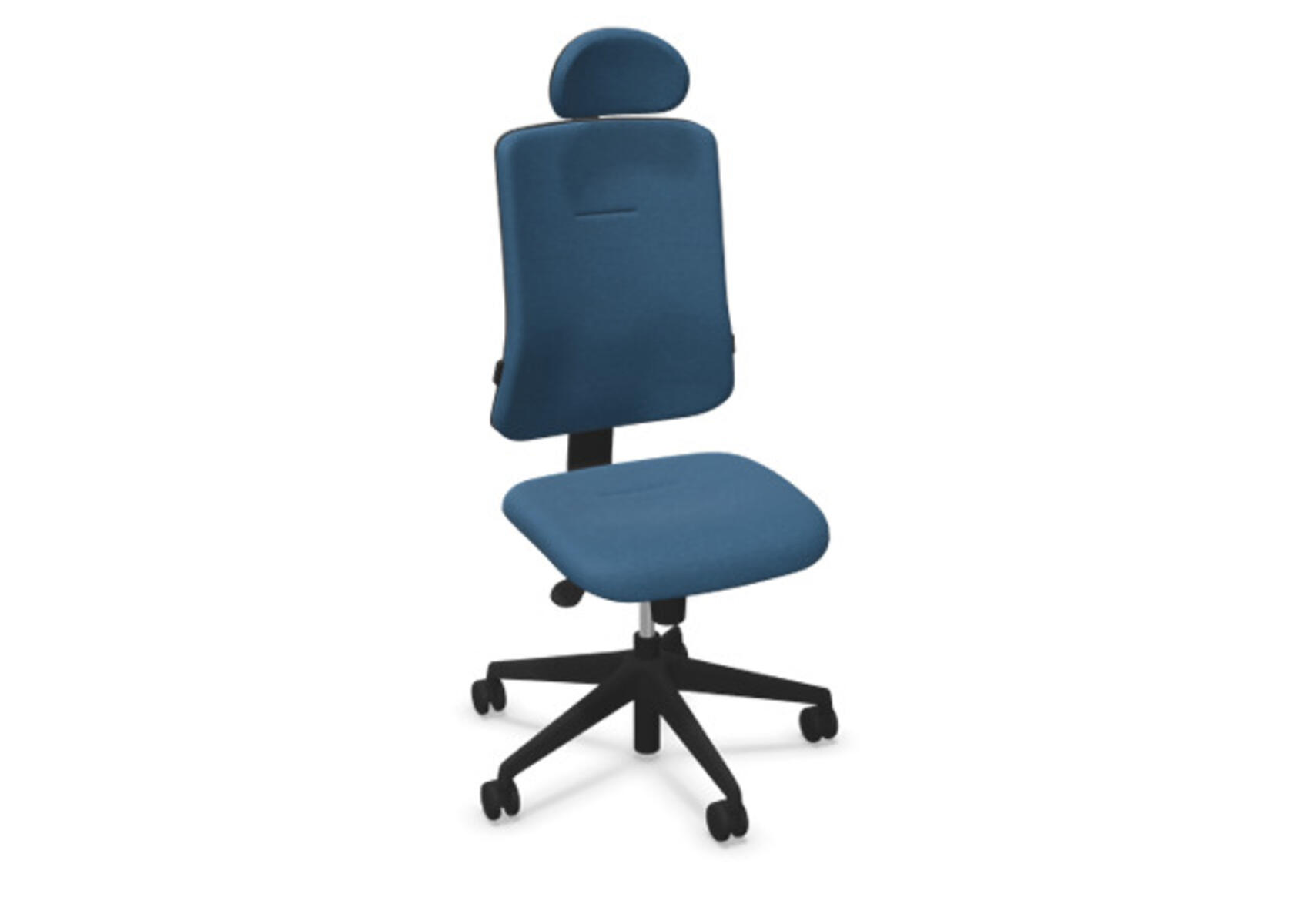 Ergonominen toimistotuoli, jossa verhoiltu selkänoja. Edistynyt synkronimekanismi takaa aktiivisen ja mukavan istuma-asennon koko työpäivän ajan. Verhoiltu polyesterikankaalla. Synkronoitu selkänojan ja istuimen kallistus mahdollistaa aktiivisen ja mukavan istuma-asennon. Selkänojan kallistuskulma 20° synkronoitu istuimen 11° kallistuskulman kanssa. Selkänoja lukittavissa 5 asentoon, selkänojan vastus säädettävissä säätönupilla. Selkänoja on korkeussäädettävä 70 mm ja lukittavissa 5 eri asentoon. Verhoiltu niskatuki, säädettävä: syvyys 20 mm, kulma 70° ja korkeus 100 mm. Selkänojassa on Anti-Shock-toiminto, joka estää selkänojaa palautumasta äkillisesti, kun kallistus vapautetaan. Valitse ristikko mustasta polyamidista tai kiillotetusta alumiinista sekä itsestään jarruttavat pyörät pehmeille tai koville lattioille. Lisävarusteena saatavilla lannerangan tuki, manuaalisesti säädettävä syvyyssuunnassa (15 mm) ja korkeussuunnassa (20 mm). Käsinojat (2D, 3D tai 4D) myydään erikseen.