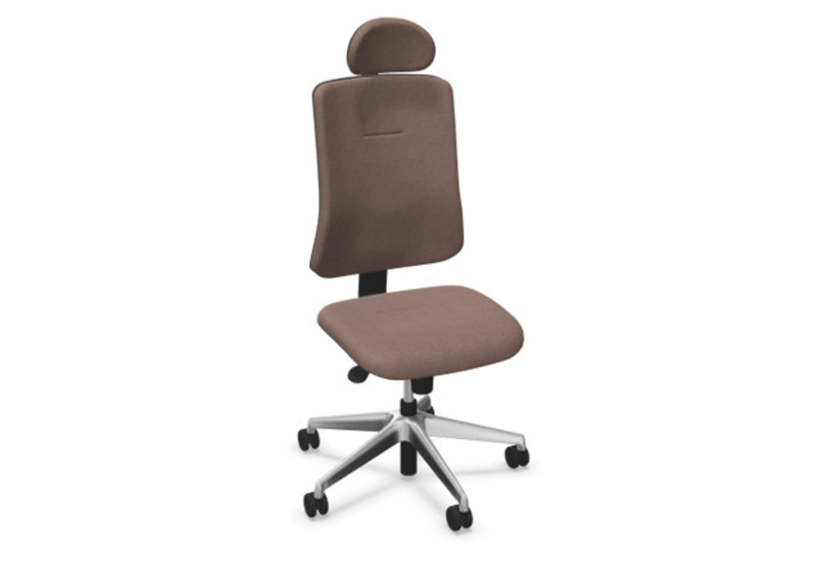 Ergonominen toimistotuoli, jossa verhoiltu selkänoja. Edistynyt synkronimekanismi takaa aktiivisen ja mukavan istuma-asennon koko työpäivän ajan. Verhoiltu polyesterikankaalla. Synkronoitu selkänojan ja istuimen kallistus mahdollistaa aktiivisen ja mukavan istuma-asennon. Selkänojan kallistuskulma 20° synkronoitu istuimen 11° kallistuskulman kanssa. Selkänoja lukittavissa 5 asentoon, selkänojan vastus säädettävissä säätönupilla. Selkänoja on korkeussäädettävä 70 mm ja lukittavissa 5 eri asentoon. Verhoiltu niskatuki, säädettävä: syvyys 20 mm, kulma 70° ja korkeus 100 mm. Selkänojassa on Anti-Shock-toiminto, joka estää selkänojaa palautumasta äkillisesti, kun kallistus vapautetaan. Valitse ristikko vaaleanharmaasta polyamidista tai kiillotetusta alumiinista sekä itsestään jarruttavat pyörät pehmeille tai koville lattioille. Lisävarusteena saatavilla lannerangan tuki, manuaalisesti säädettävä syvyyssuunnassa (15 mm) ja korkeussuunnassa (20 mm). Käsinojat (2D, 3D tai 4D) myydään erikseen.