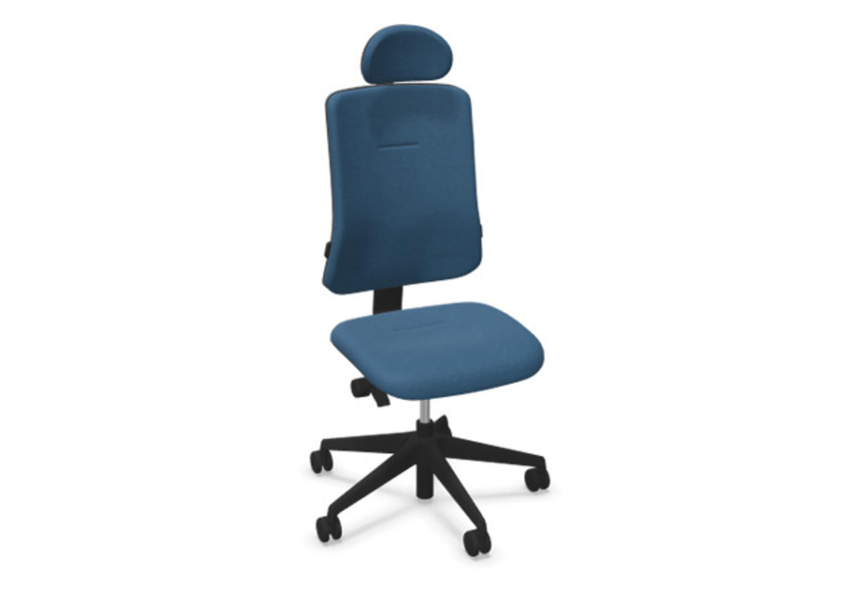 Ergonominen toimistotuoli, jossa verhoiltu selkänoja. Edistynyt synkronimekanismi takaa aktiivisen ja mukavan istuma-asennon koko työpäivän ajan. Verhoiltu polyesterikankaalla. Synkronoitu selkänojan ja istuimen kallistus mahdollistaa aktiivisen ja mukavan istuma-asennon. Selkänojan kallistuskulma 20° synkronoitu istuimen 11° kallistuskulman kanssa. Selkänoja lukittavissa 5 asentoon, selkänojan vastus säädettävissä säätönupilla. Selkänoja on korkeussäädettävä 70 mm ja lukittavissa 5 eri asentoon. Verhoiltu niskatuki, säädettävä: syvyys 20 mm, kulma 70° ja korkeus 100 mm. Selkänojassa on Anti-Shock-toiminto, joka estää selkänojaa palautumasta äkillisesti, kun kallistus vapautetaan. Valitse ristikko mustasta polyamidista tai kiillotetusta alumiinista sekä itsestään jarruttavat pyörät pehmeille tai koville lattioille. Lisävarusteena saatavilla lannerangan tuki, manuaalisesti säädettävä syvyyssuunnassa (15 mm) ja korkeussuunnassa (20 mm). Käsinojat (2D, 3D tai 4D) myydään erikseen.