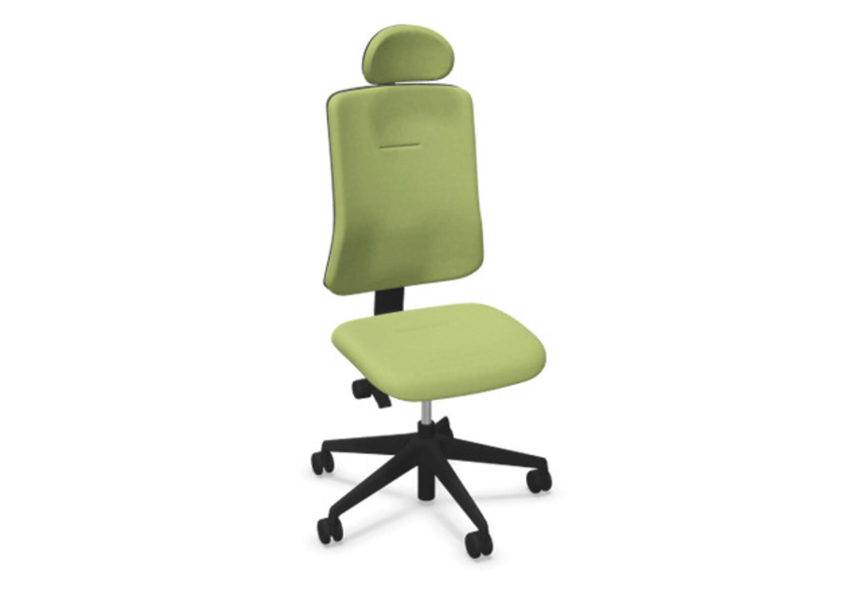 Ergonominen toimistotuoli, jossa verhoiltu selkänoja ja istuinsyvyyden säätö. Suunniteltu tukemaan aktiivista istumista koko työpäivän ajan. Verhoiltu polyesterikankaalla. Synkronoitu selkänojan ja istuimen kallistus mahdollistaa aktiivisen ja mukavan istuma-asennon. Selkänojan kallistuskulma 21° synkronoitu istuimen 7° kallistuskulman kanssa. Selkänoja lukittavissa neljään asentoon. Varustettu automaattisella vastussäädöllä käyttäjän painon mukaan sekä lisäsäätömahdollisuudella 3 kohtaan. Selkänoja on korkeussäädettävä 70 mm ja lukittavissa 5 eri asentoon. Istuinsyvyyden säätö 50 mm. Selkänojassa on Anti-Shock-toiminto, joka estää selkänojaa palautumasta äkillisesti, kun kallistus vapautetaan. Verhoiltu niskatuki, säädettävä: syvyys 20 mm, kulma 70° ja korkeus 100 mm. Valitse ristikko mustasta polyamidista tai kiillotetusta alumiinista sekä itsestään jarruttavat pyörät pehmeille tai koville lattioille. Lisävarusteena saatavilla lannerangan tuki, manuaalisesti säädettävä syvyyssuunnassa (15 mm) ja korkeussuunnassa (20 mm). Käsinojat (2D, 3D tai 4D) myydään erikseen.