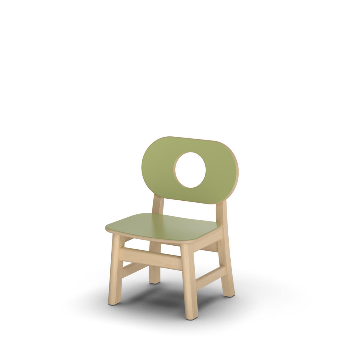 Tuolin runko on kirkaslakattua massiivikoivua. Istuimessa ja selkänojassa on pyöristetyt reunat ja kulutusta kestävä korkeapainelaminaattipinta.