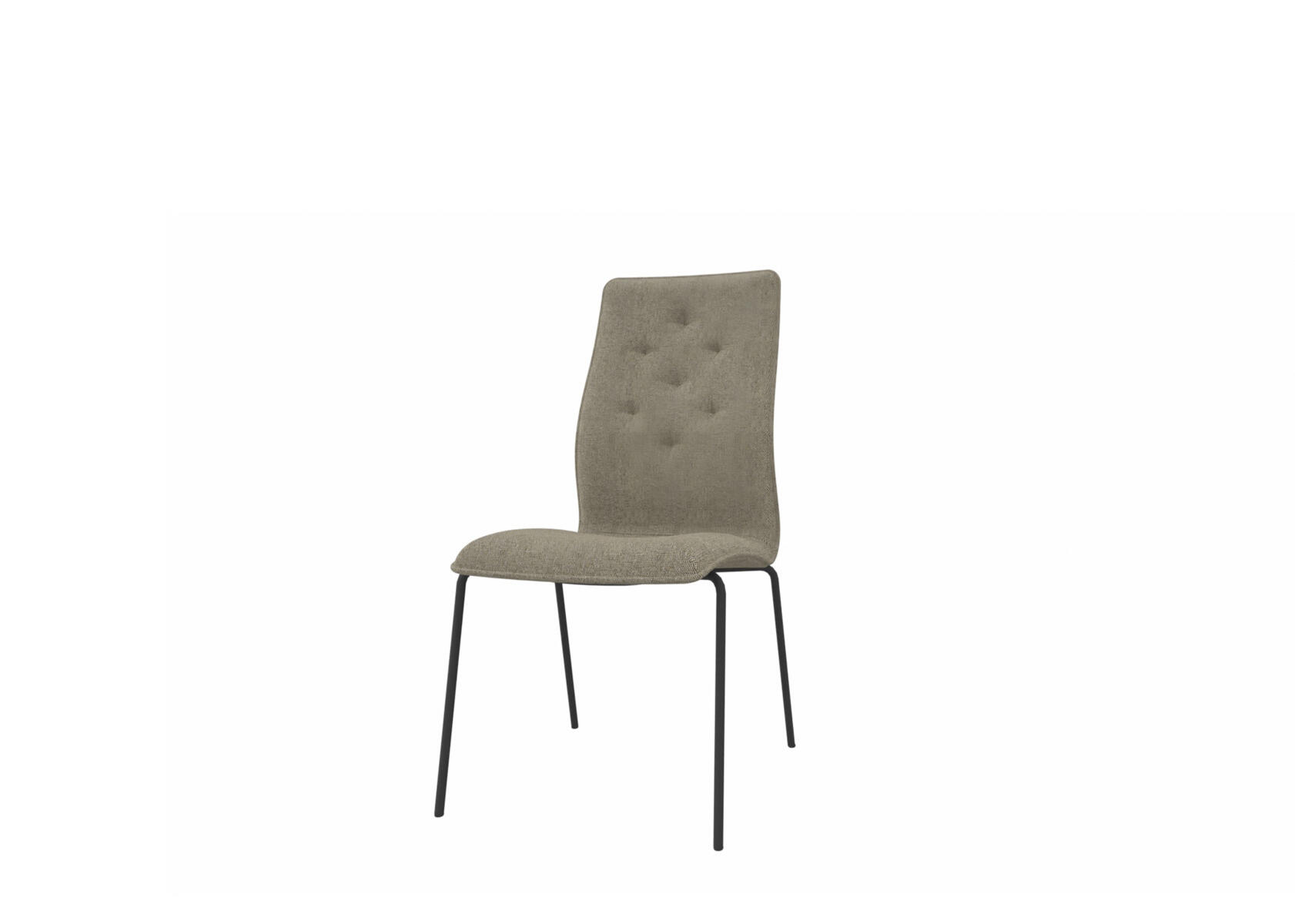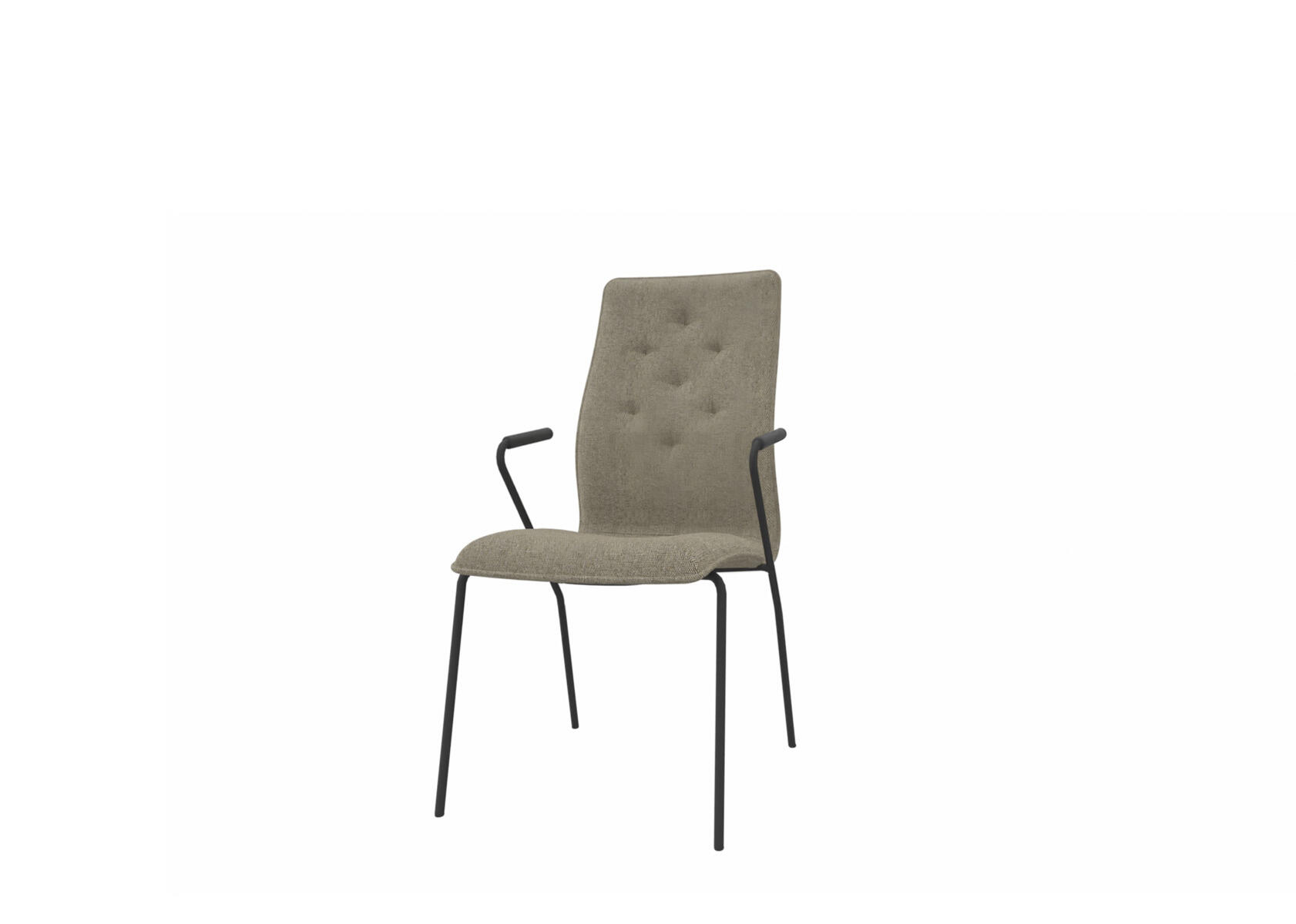 Ajaton, ergonominen ja mukava tuoli, jossa on napitettu korkea selkänoja. Muotoonpuristetusta vanerista valmistettu istuinosa kylmävaahtopehmusteella tarjoaa hyvän tuen ja istumamukavuuden. Vankka pulverimaalattu teräsputkirunko ø 19 mm, huopatassut suojaavat lattiaa. Pinottavissa, enintään 5 tuolia. Käsinojat saatavana lisävarusteena.