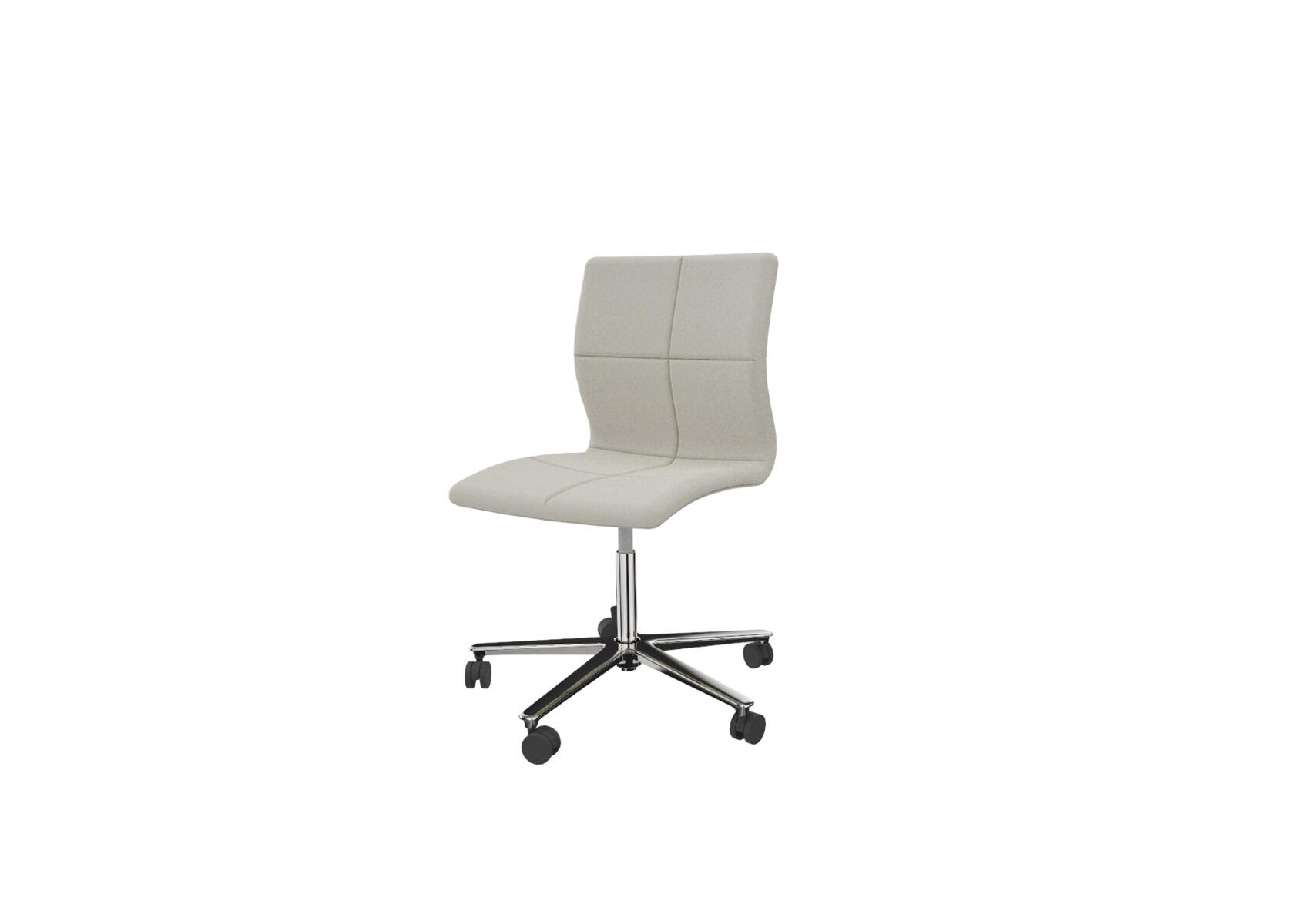 Ajaton, ergonominen ja mukava neuvottelutuoli kokoushuoneisiin ja toimistoympäristöihin. Uritettu selkänoja. Muotoon puristetusta vanerista valmistettu istuinosa, joka on pehmustettu vaahtomuovilla, tarjoten sekä mukavuutta että tukea. Kallistusmekanismi 7° taaksepäin, 4° eteenpäin. Korkeussäädettävä. Metalliristikko neljällä kovalla pyörällä, jotka sopivat myös pehmeille lattioille. Lisämukavuutta varten tarjolla on myös käsinojat lisävarusteena.