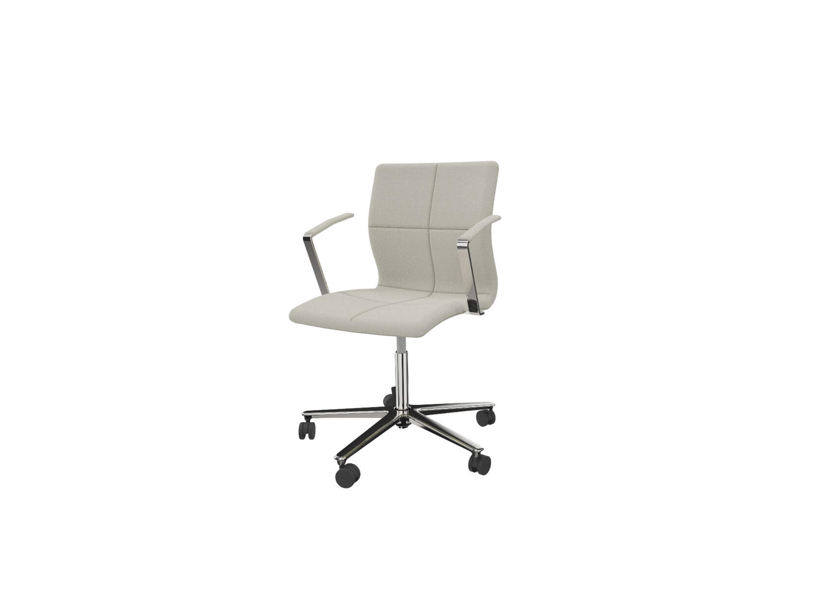 Ajaton, ergonominen ja mukava neuvottelutuoli kokoushuoneisiin ja toimistoympäristöihin. Uritettu selkänoja. Muotoon puristetusta vanerista valmistettu istuinosa, joka on pehmustettu vaahtomuovilla, tarjoten sekä mukavuutta että tukea. Kallistusmekanismi 7° taaksepäin, 4° eteenpäin. Korkeussäädettävä. Metalliristikko viidellä kovalla pyörällä, jotka sopivat myös pehmeille lattioille. Lisämukavuutta varten tarjolla on myös käsinojat lisävarusteena.