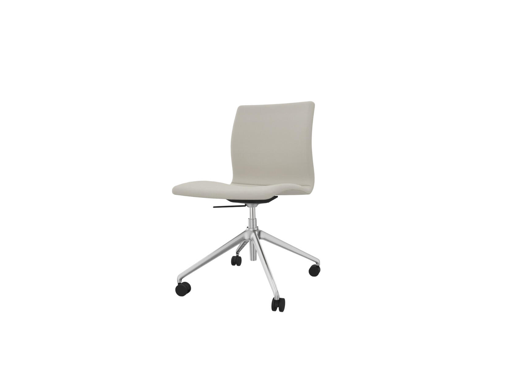 Ajaton, ergonominen ja mukava neuvottelutuoli kokoushuoneisiin ja toimistoympäristöihin. Sileä selkänoja. Muotoon puristetusta vanerista valmistettu istuinosa, joka on pehmustettu vaahtomuovilla, tarjoten sekä mukavuutta että tukea. Kallistusmekanismi 7° taaksepäin, 4° eteenpäin. Korkeussäädettävä. Metalliristikko neljällä kovalla pyörällä, jotka sopivat myös pehmeille lattioille. Lisämukavuutta varten tarjolla on myös käsinojat lisävarusteena.