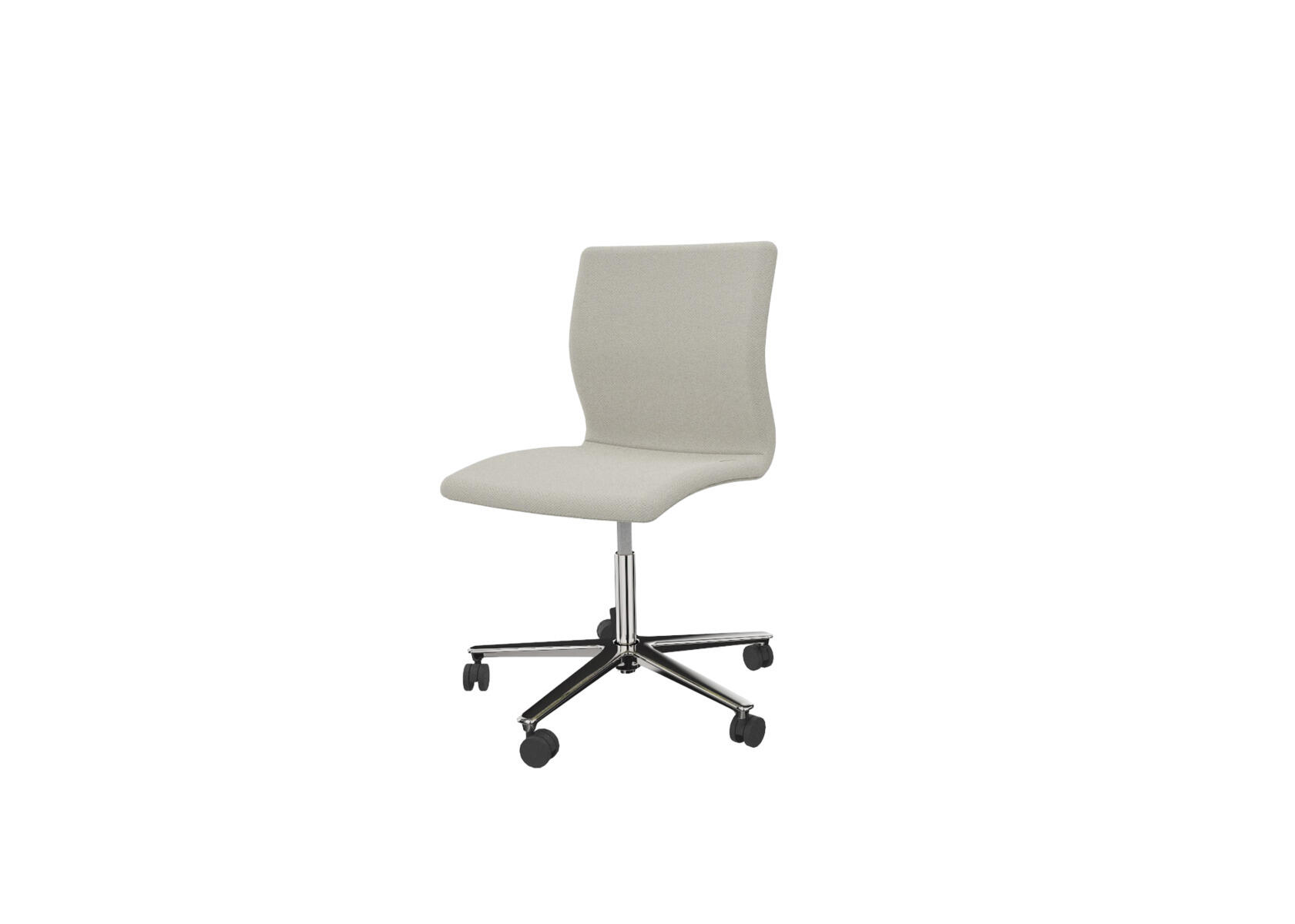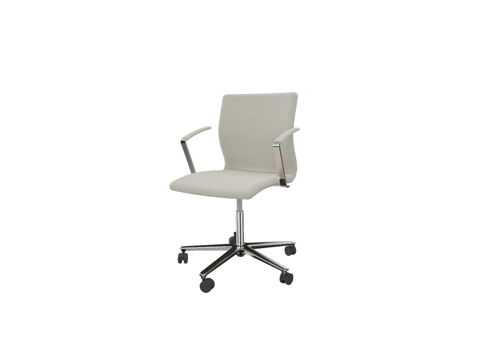 Ajaton, ergonominen ja mukava neuvottelutuoli kokoushuoneisiin ja toimistoympäristöihin. Sileä selkänoja. Muotoon puristetusta vanerista valmistettu istuinosa, joka on pehmustettu vaahtomuovilla, tarjoten sekä mukavuutta että tukea. Kallistusmekanismi 7° taaksepäin, 4° eteenpäin. Korkeussäädettävä. Metalliristikko viidellä kovalla pyörällä, jotka sopivat myös pehmeille lattioille. Lisämukavuutta varten tarjolla on myös käsinojat lisävarusteena.