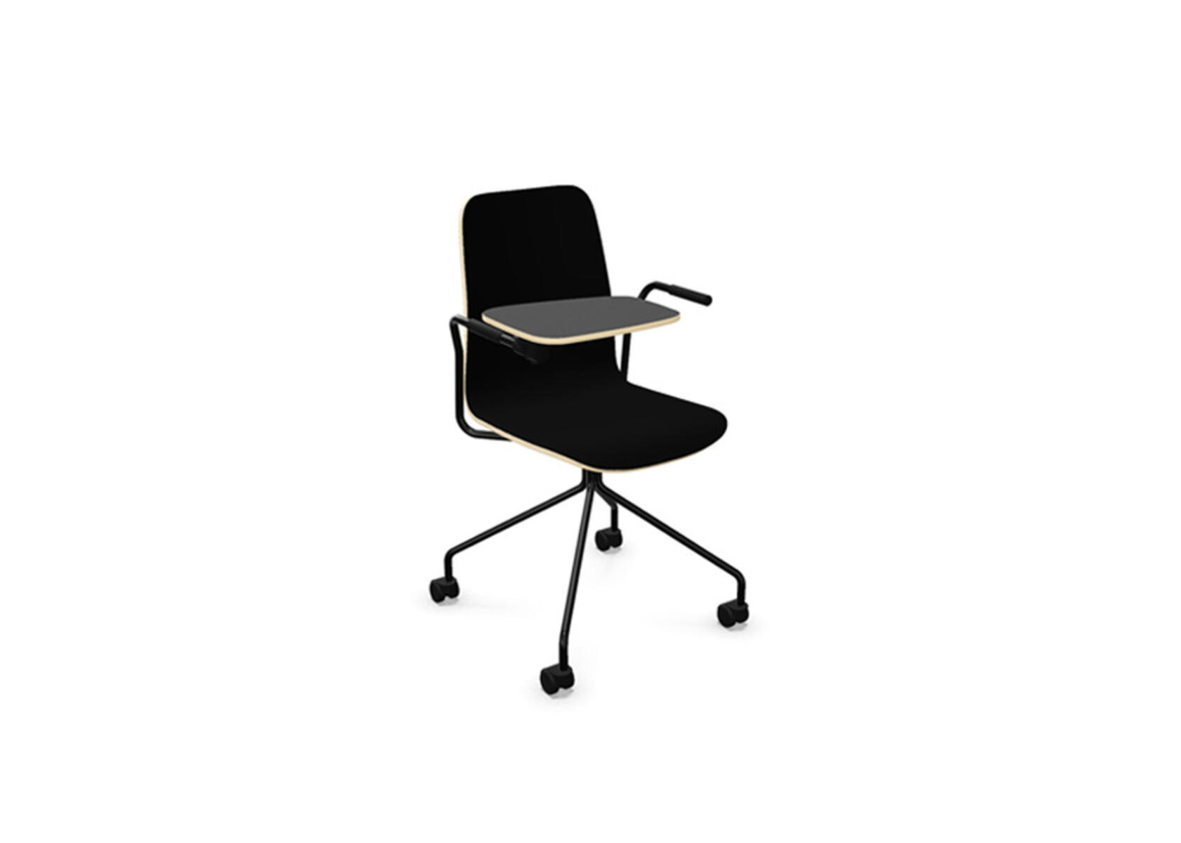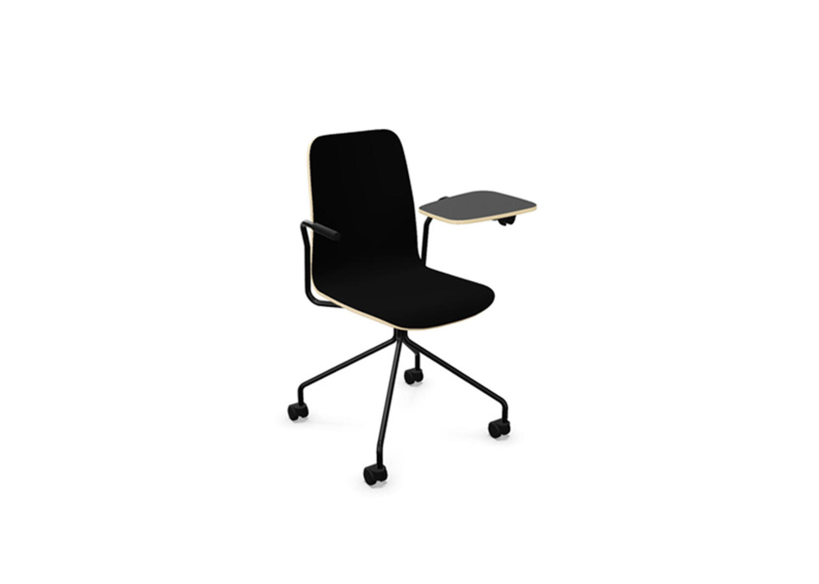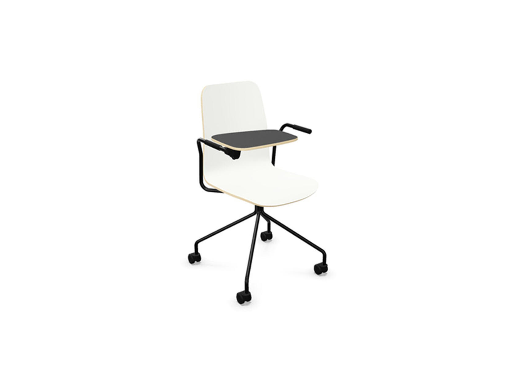 Vapaa tuoli, korkea selkä, kirjoitustaso, musta ristikko pyörillä