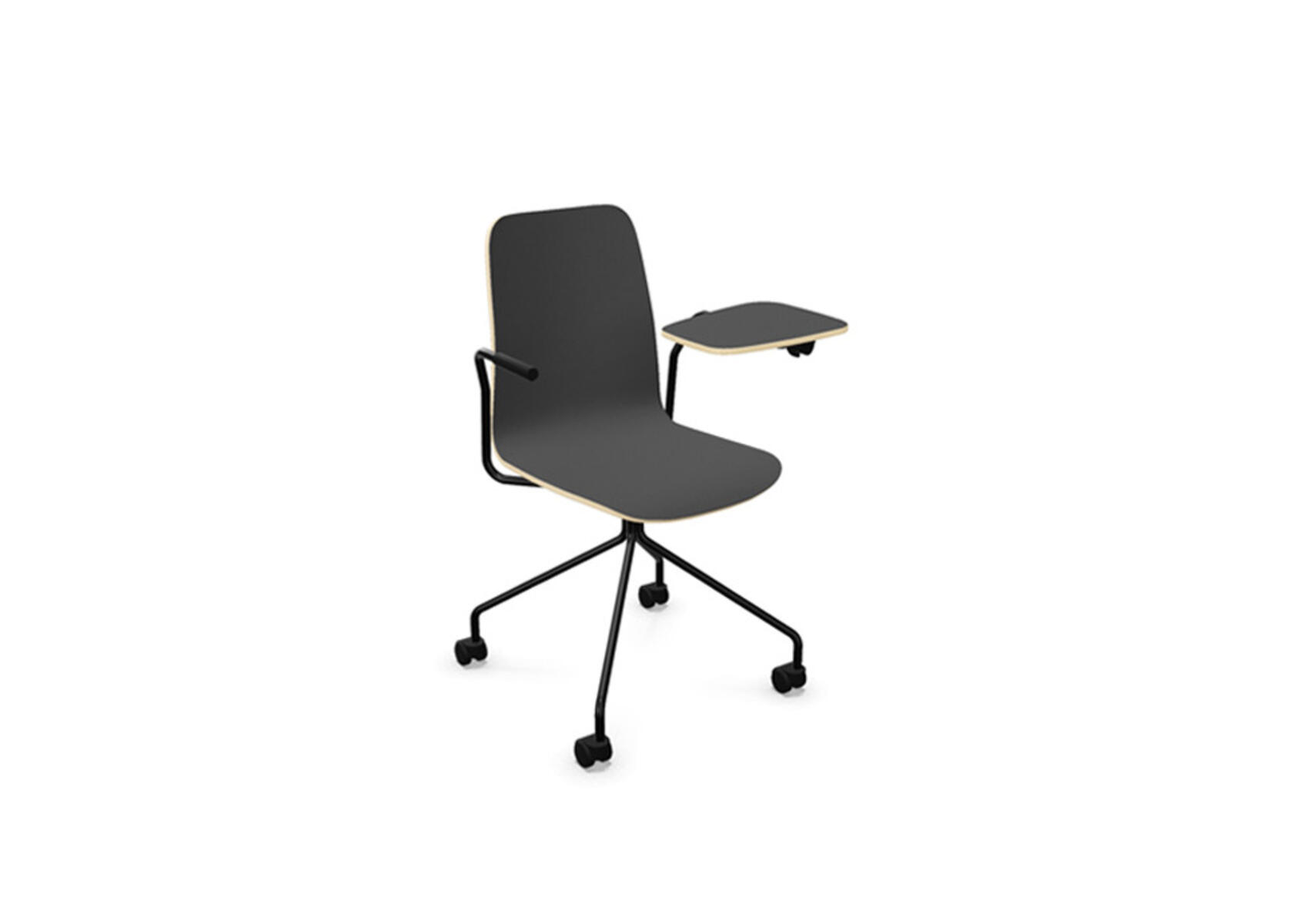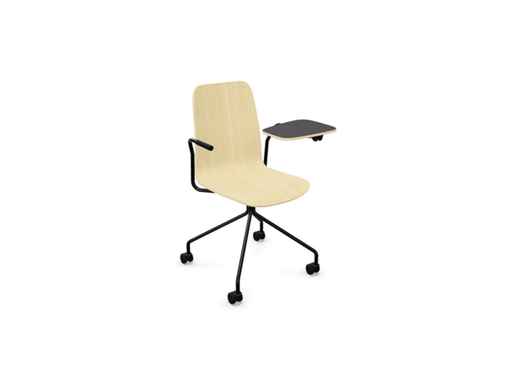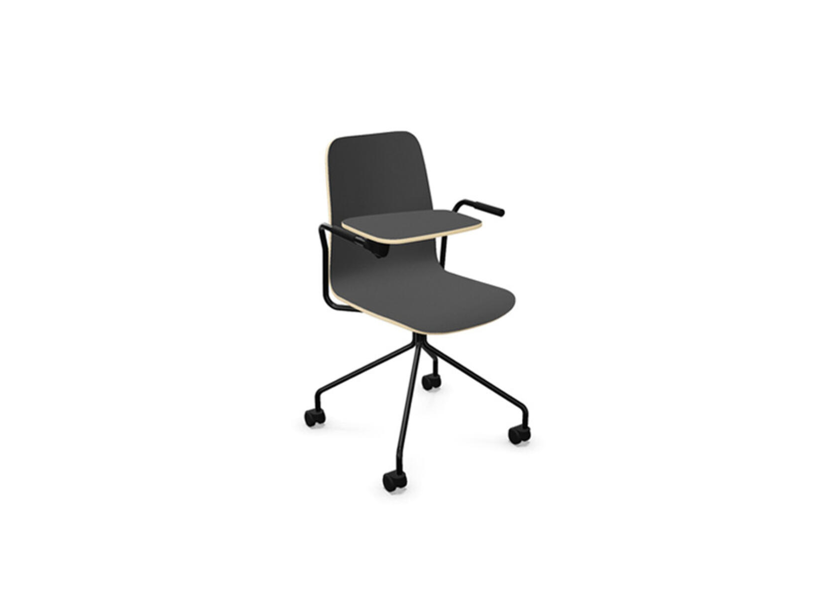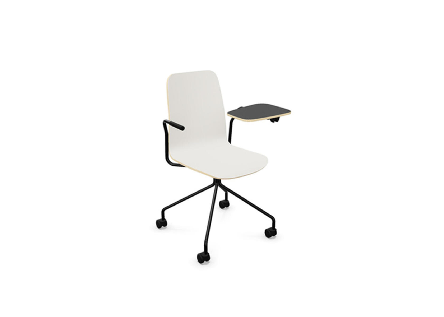 Vapaa tuoli, korkea selkä, kirjoitustaso, musta ristikko pyörillä