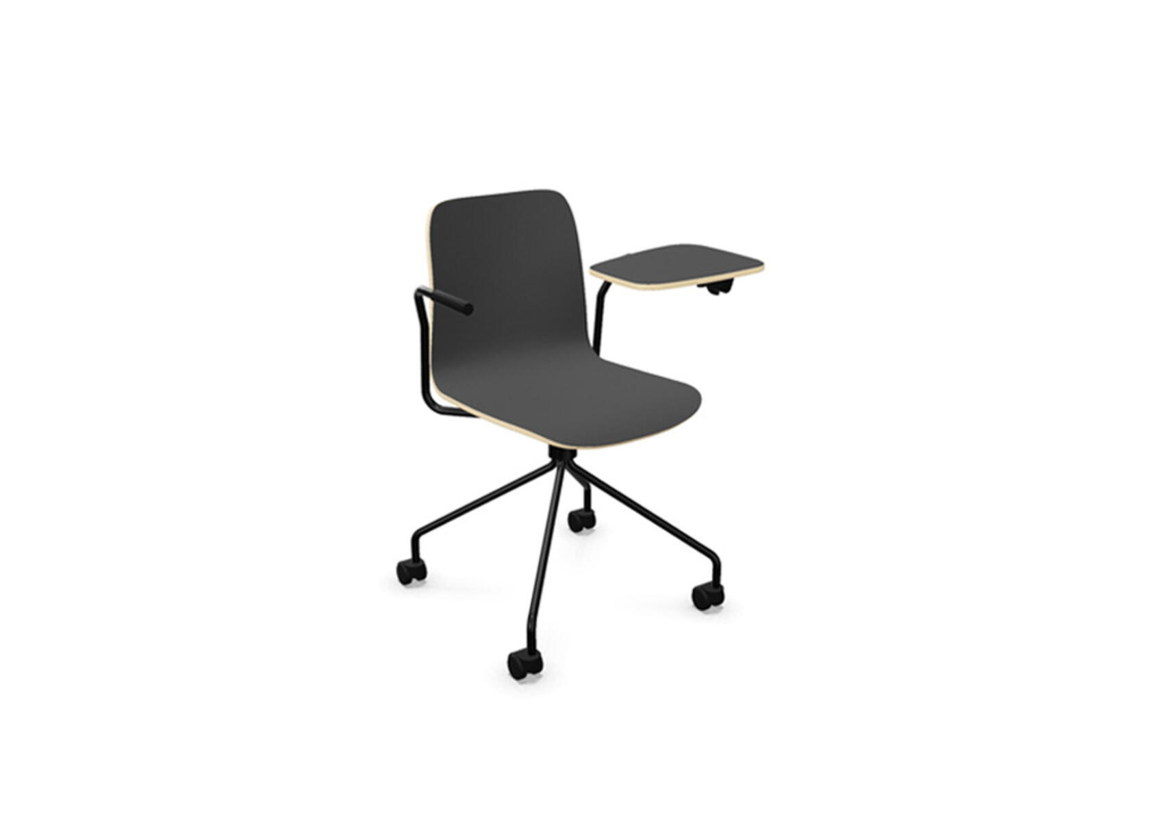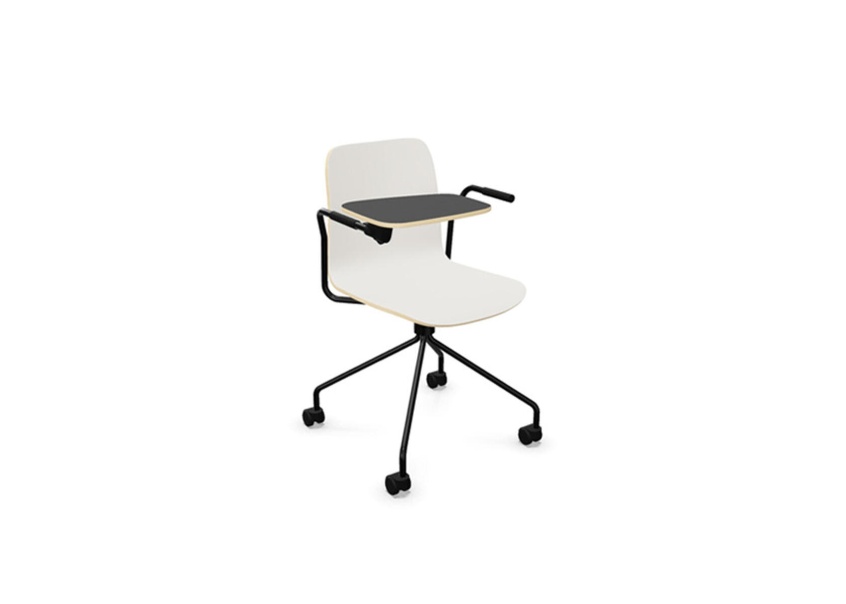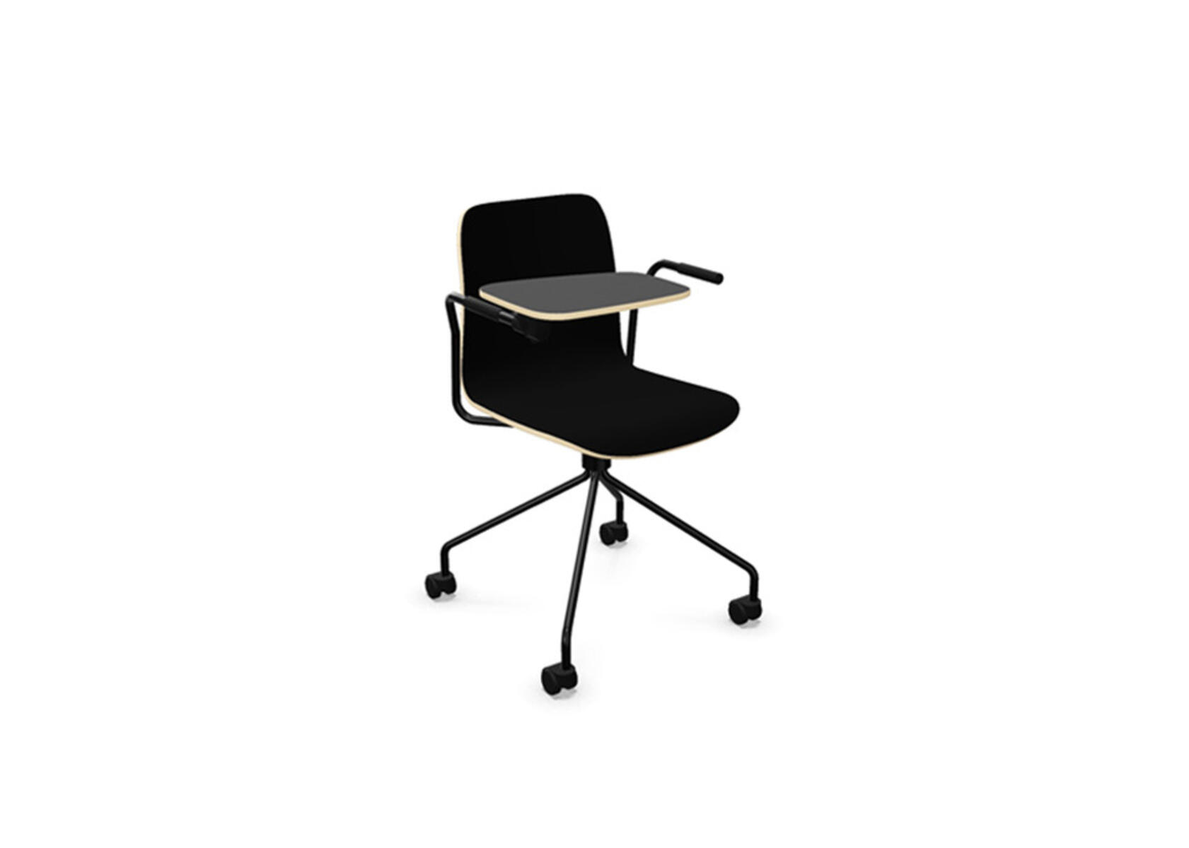 Vapaa tuoli, matala selkä, kirjoitustaso, musta ristikko pyörillä