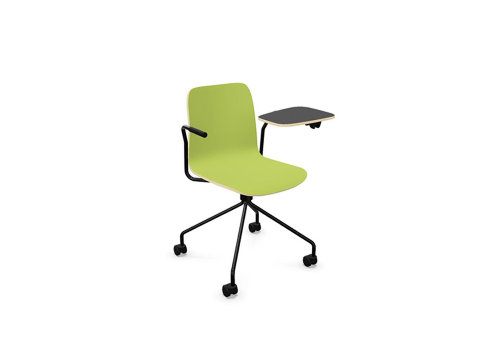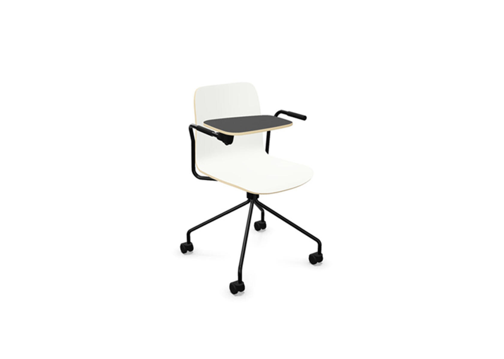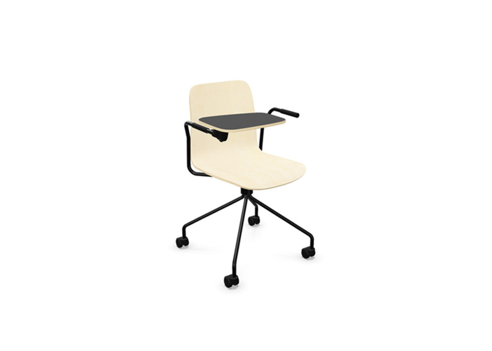 Vapaa tuoli, matala selkä, kirjoitustaso, musta ristikko pyörillä