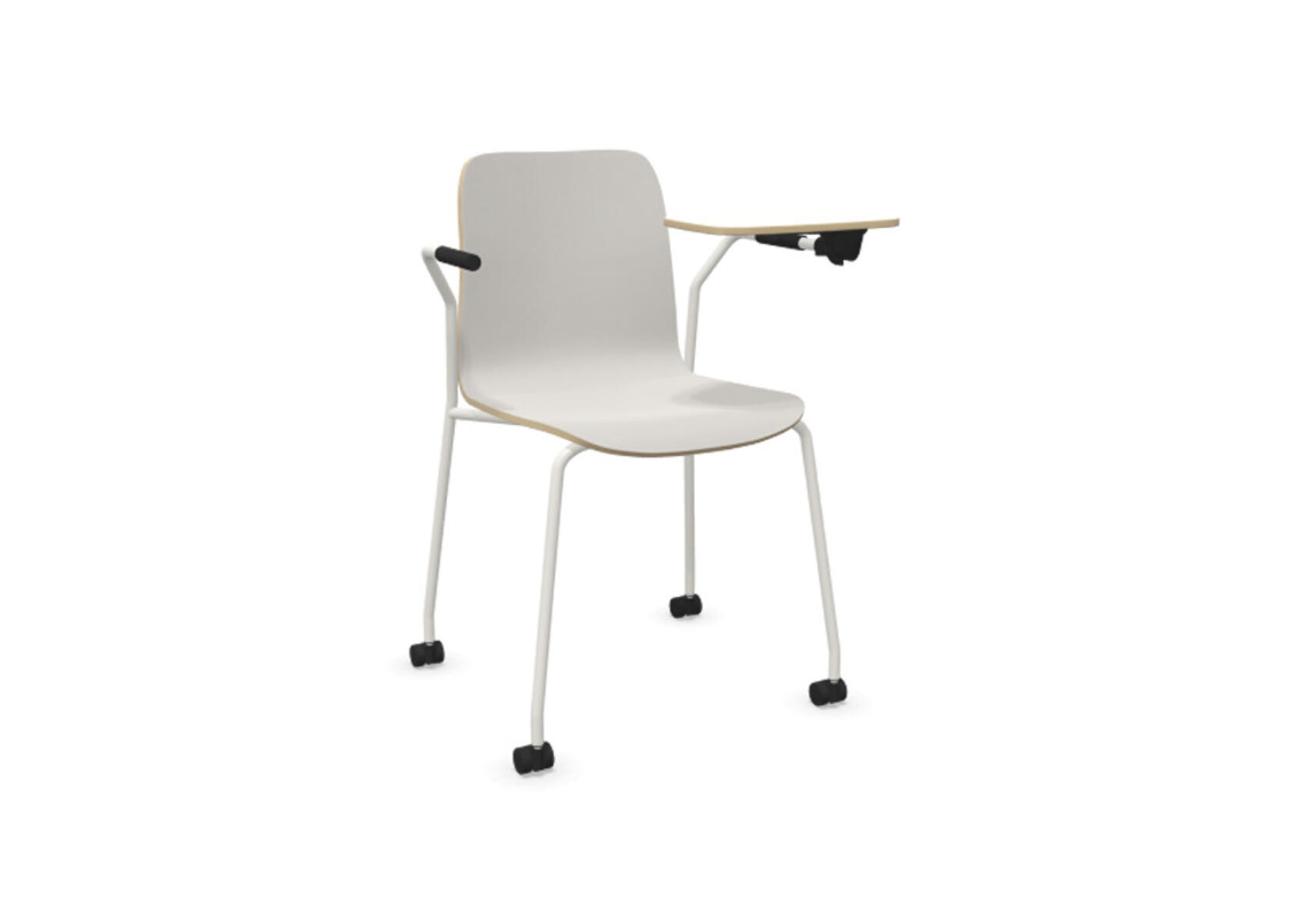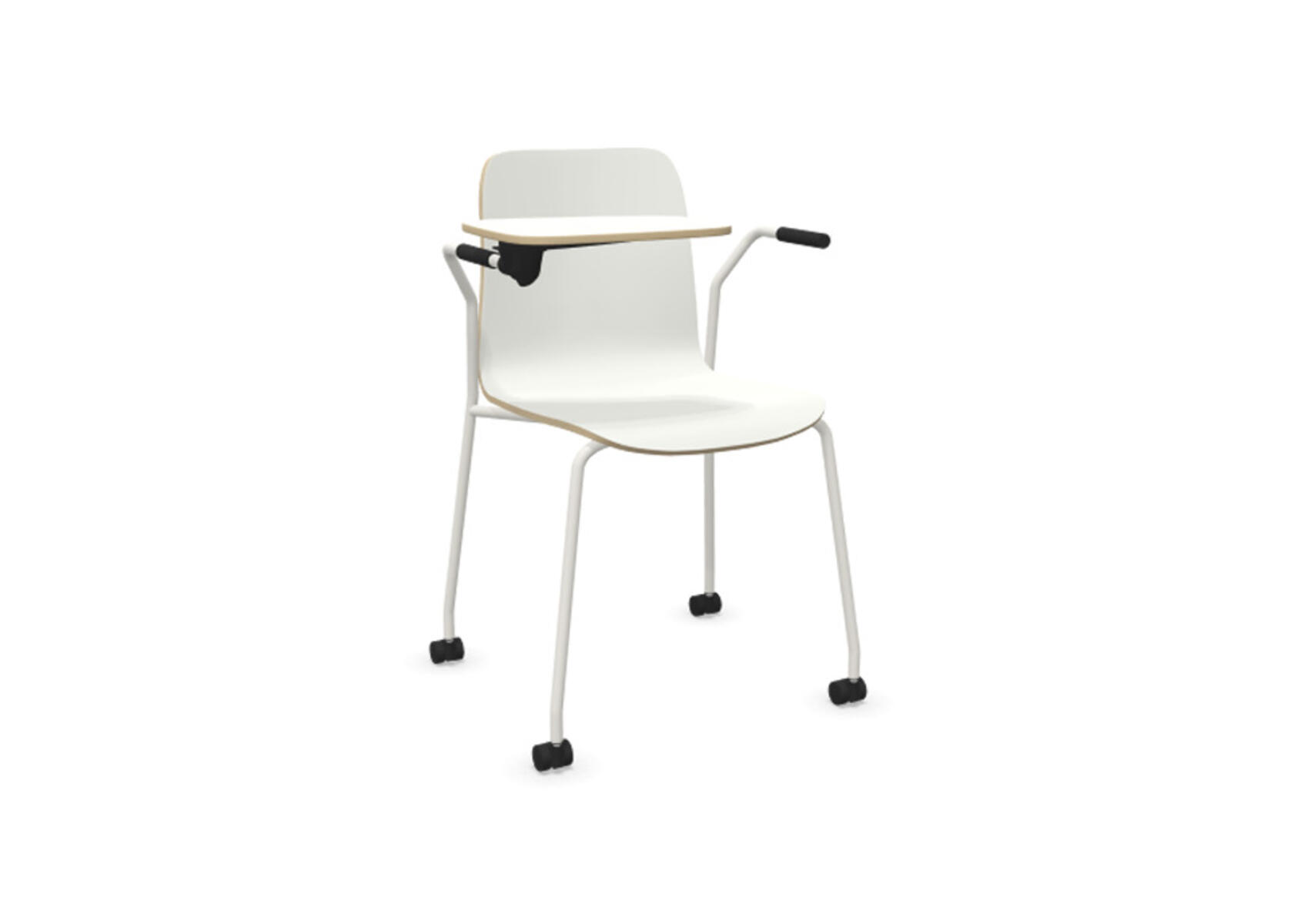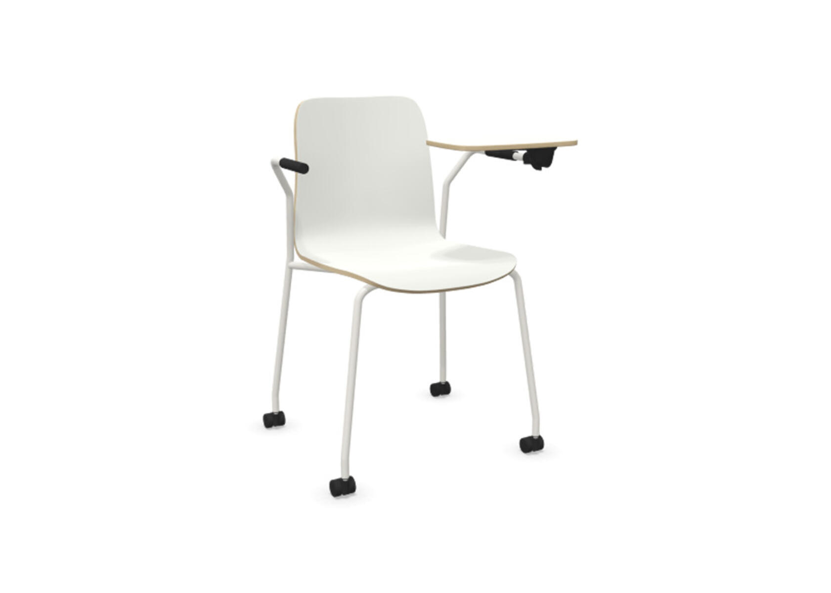 Vapaa tuoli, matala selkä, kirjoitustaso, valkoinen 4-pistejalusta pyörillä