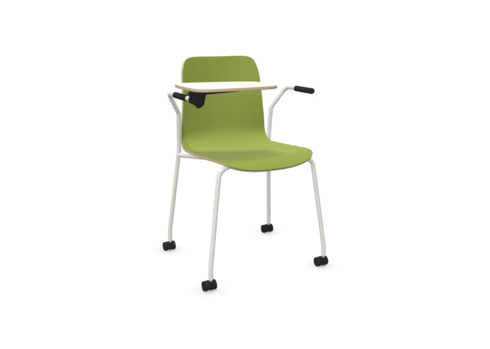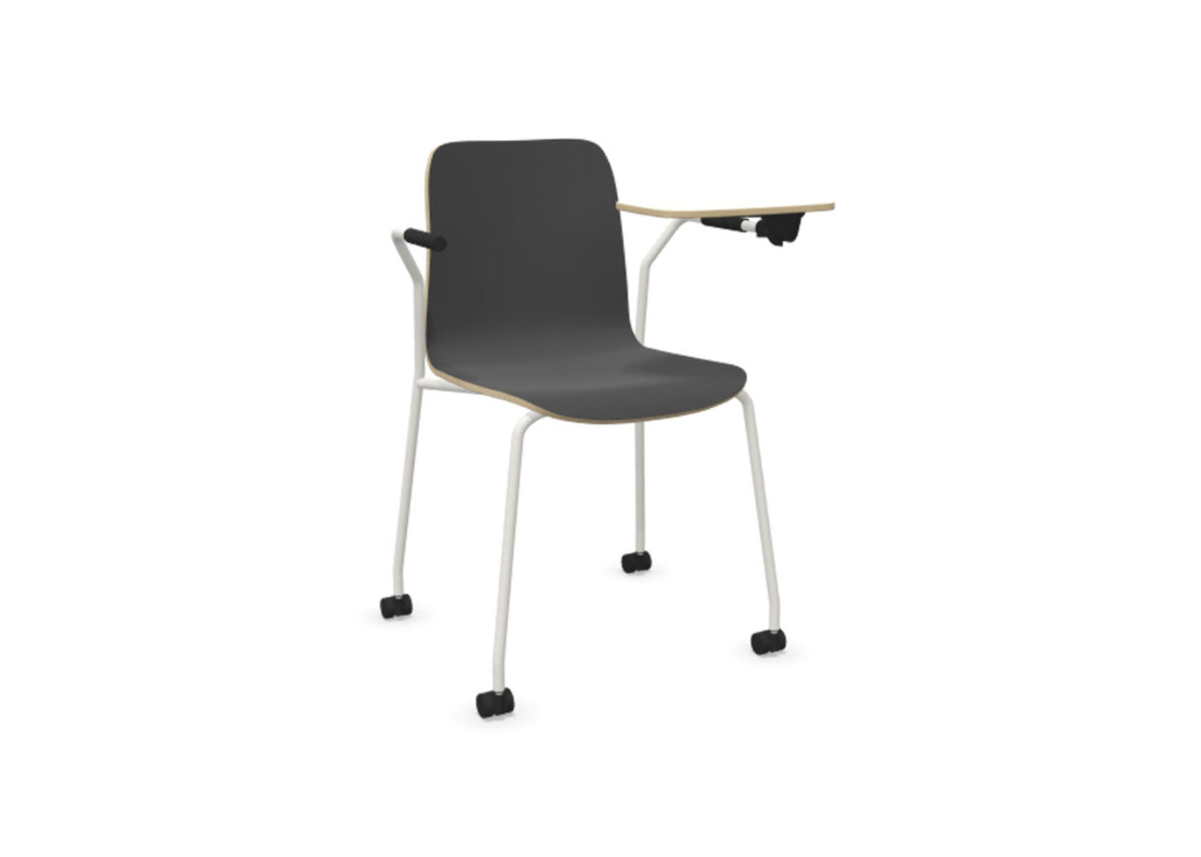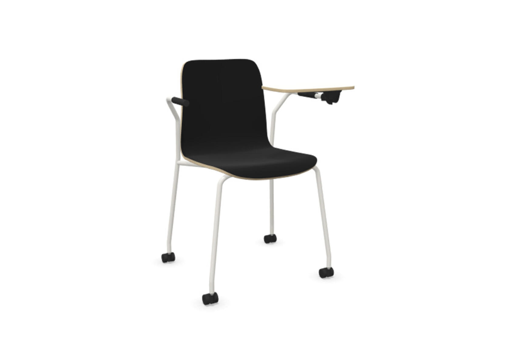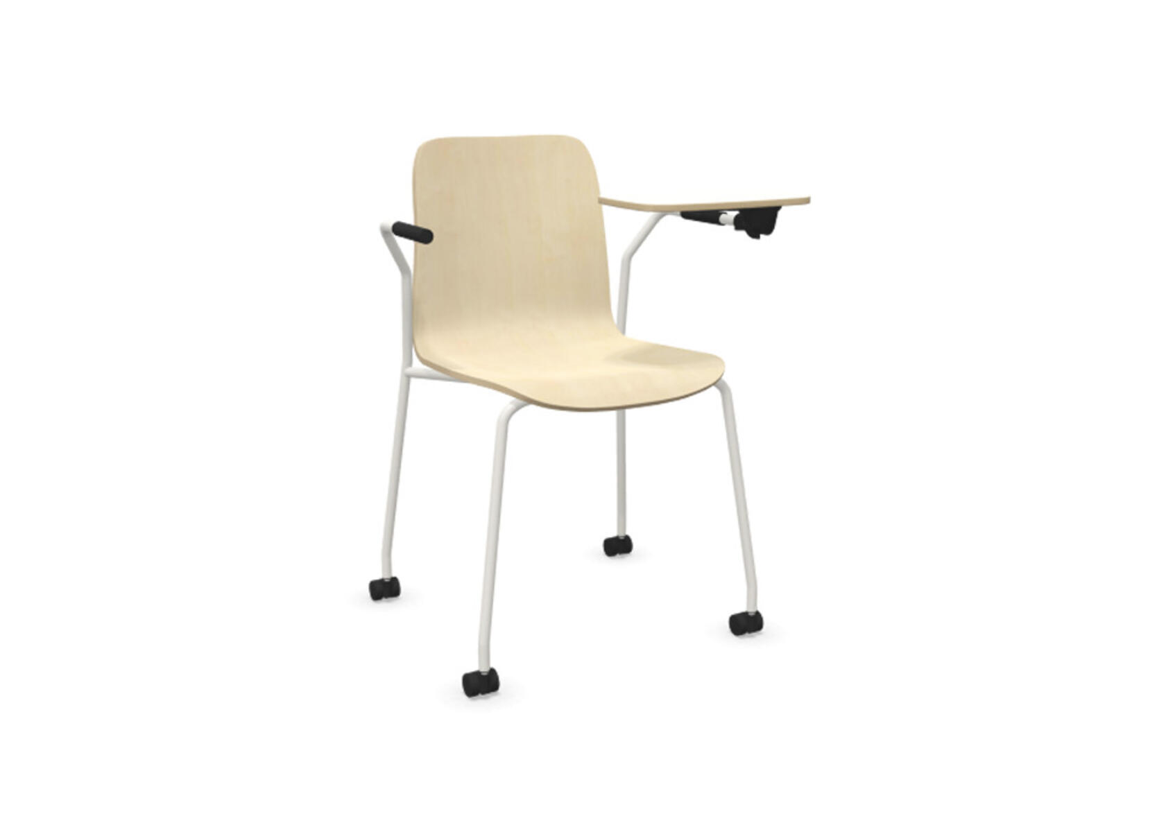 Vapaa tuoli, matala selkä, kirjoitustaso, valkoinen 4-pistejalusta pyörillä