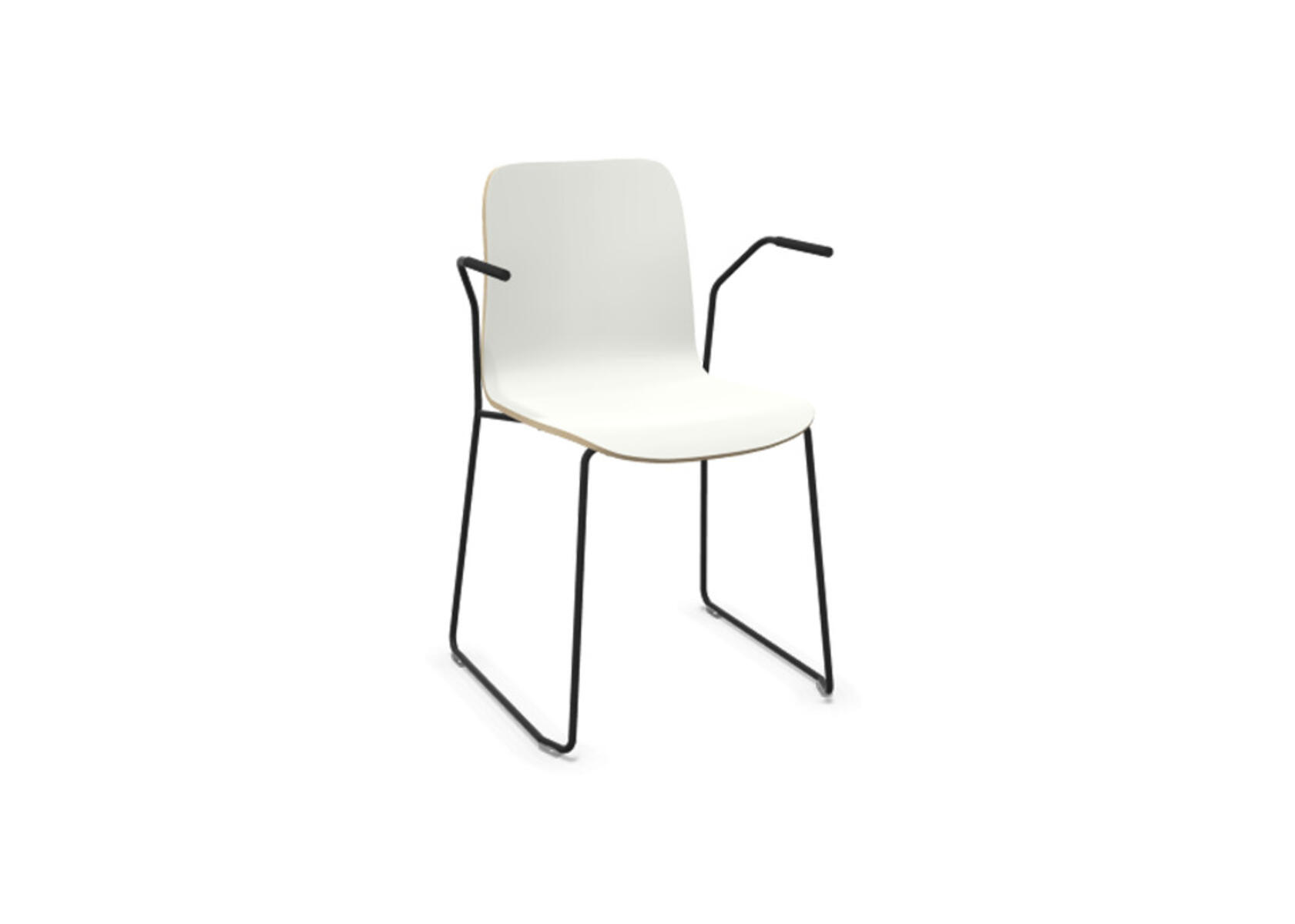Ympäriverhoiltu, vaahtomuovilla pehmustettu istuinosa on valmistettu muotoonpuristetusta vanerista. Vakaa, jauhemaalattu jalusta ø 18 mm teräsputkesta, varustettu kalustetassuilla lattian suojaamiseksi. Valittavana käsinojat. Erikseen myytävillä liitosheloilla tuoleista voidaan muodostaa rivejä tai istuinryhmiä. Enimmäiskuormitus 110 kg. Tuoli on pinottavissa enintään 6 kpl pinoon.