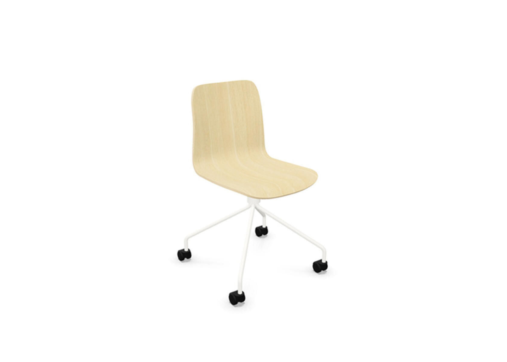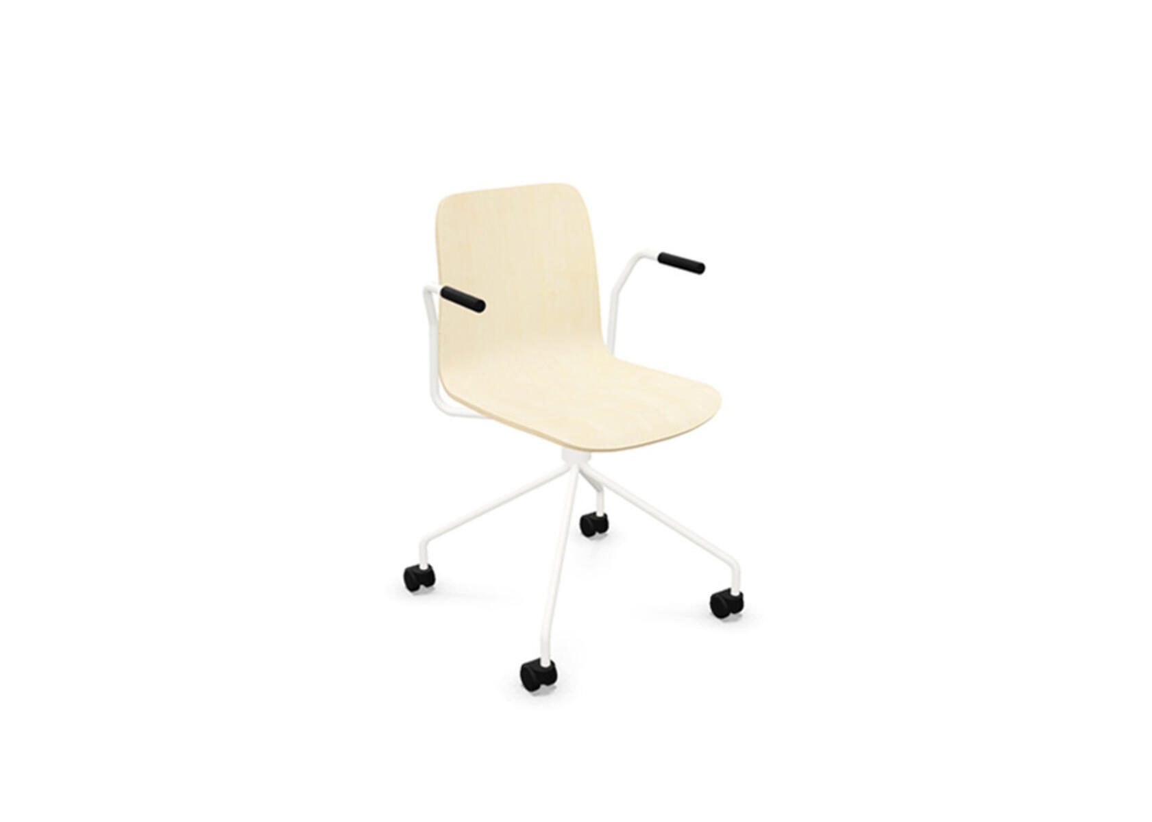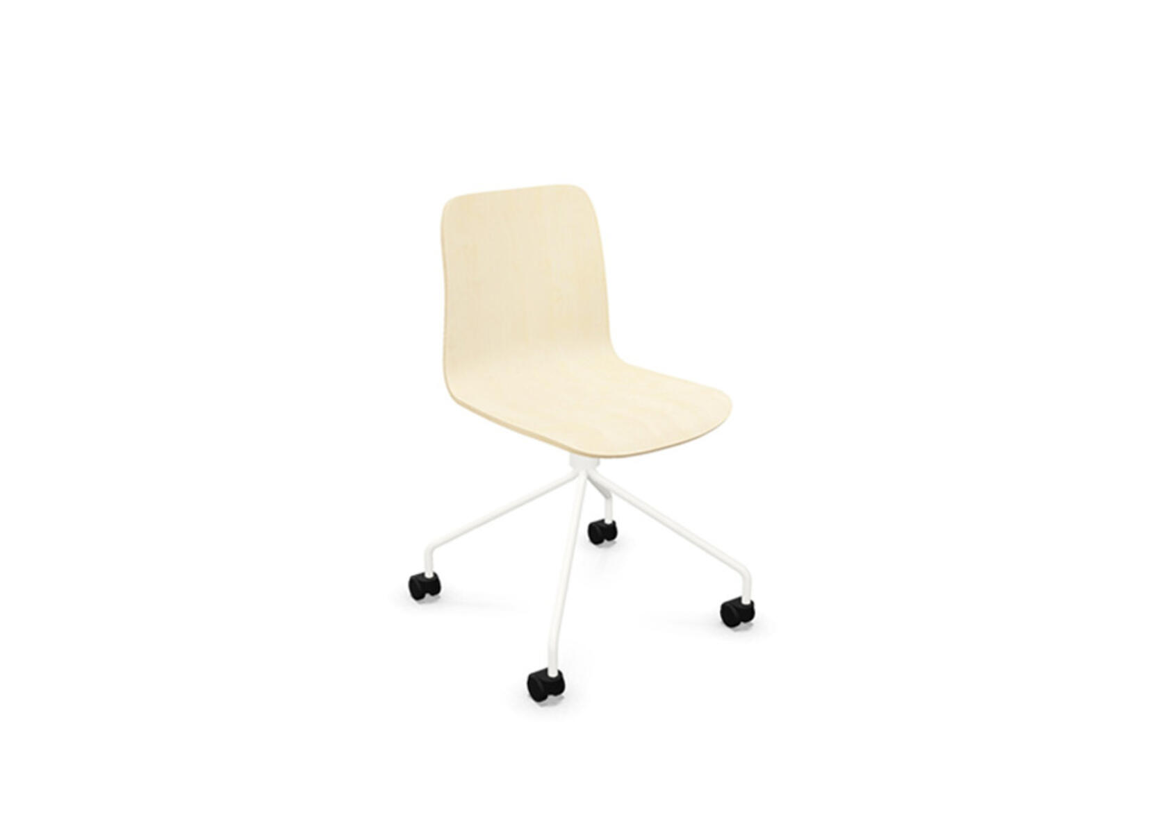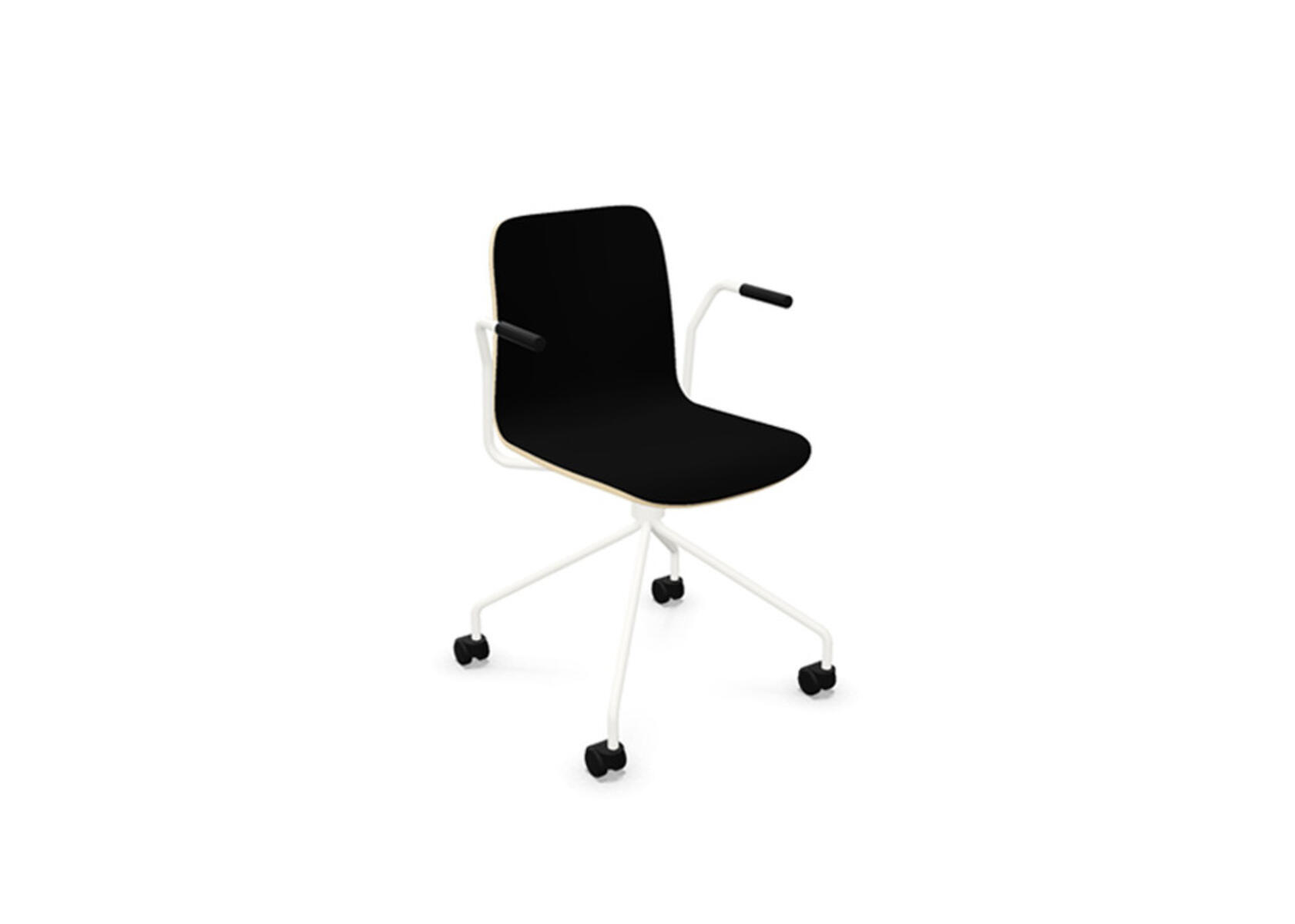 Ympäriverhoiltu, vaahtomuovilla pehmustettu istuinosa on valmistettu muotoonpuristetusta vanerista. Vakaa, jauhemaalattu jalusta ø 18 mm teräsputkesta. Korkea 4-sakarainen ristikko kovalle lattialle sopivilla pyörillä. Valittavana käsinojat. Vapaasti pyörivä, ei korkeussäädettävä.