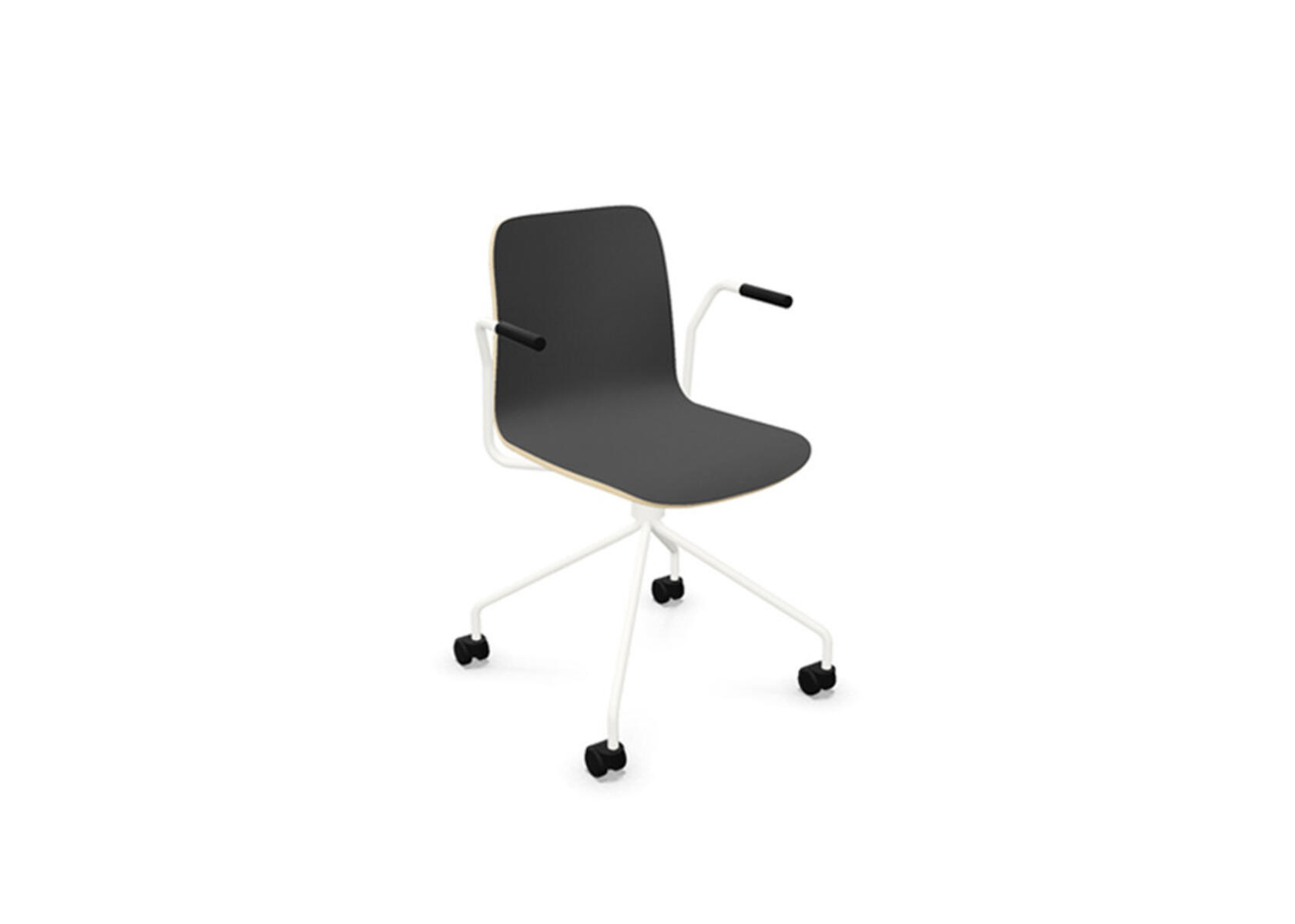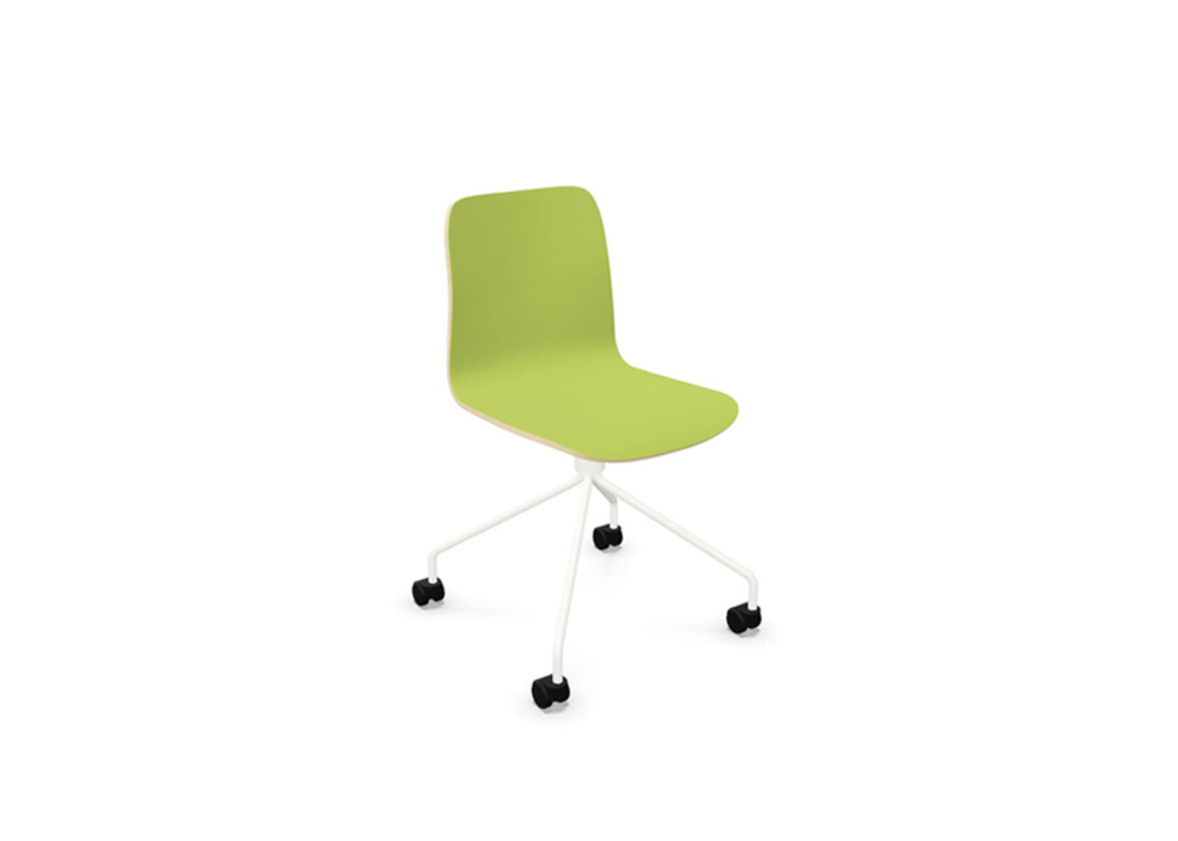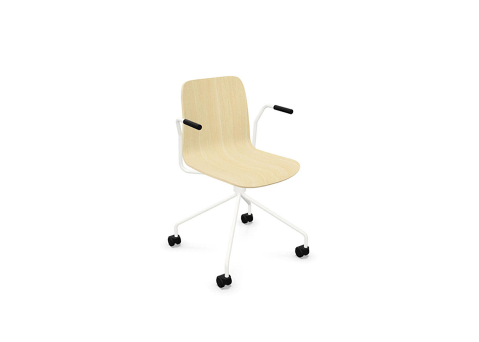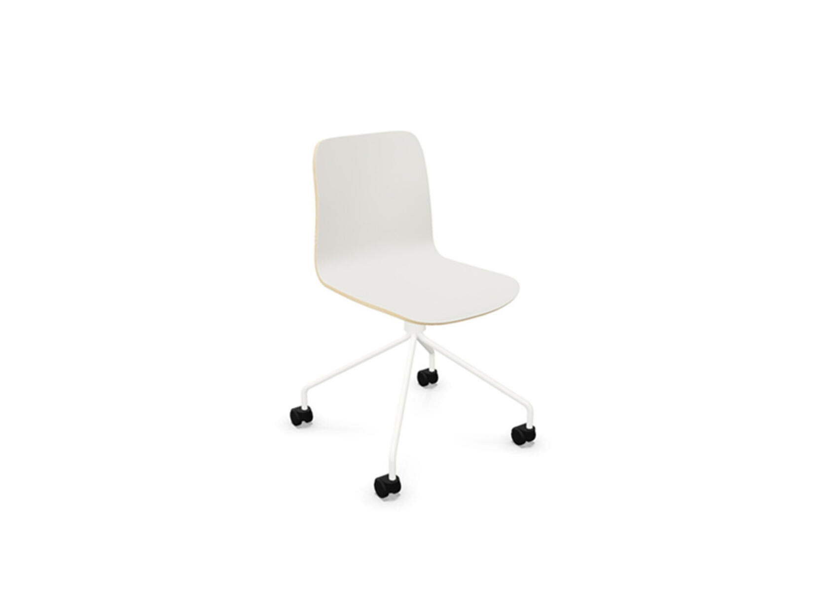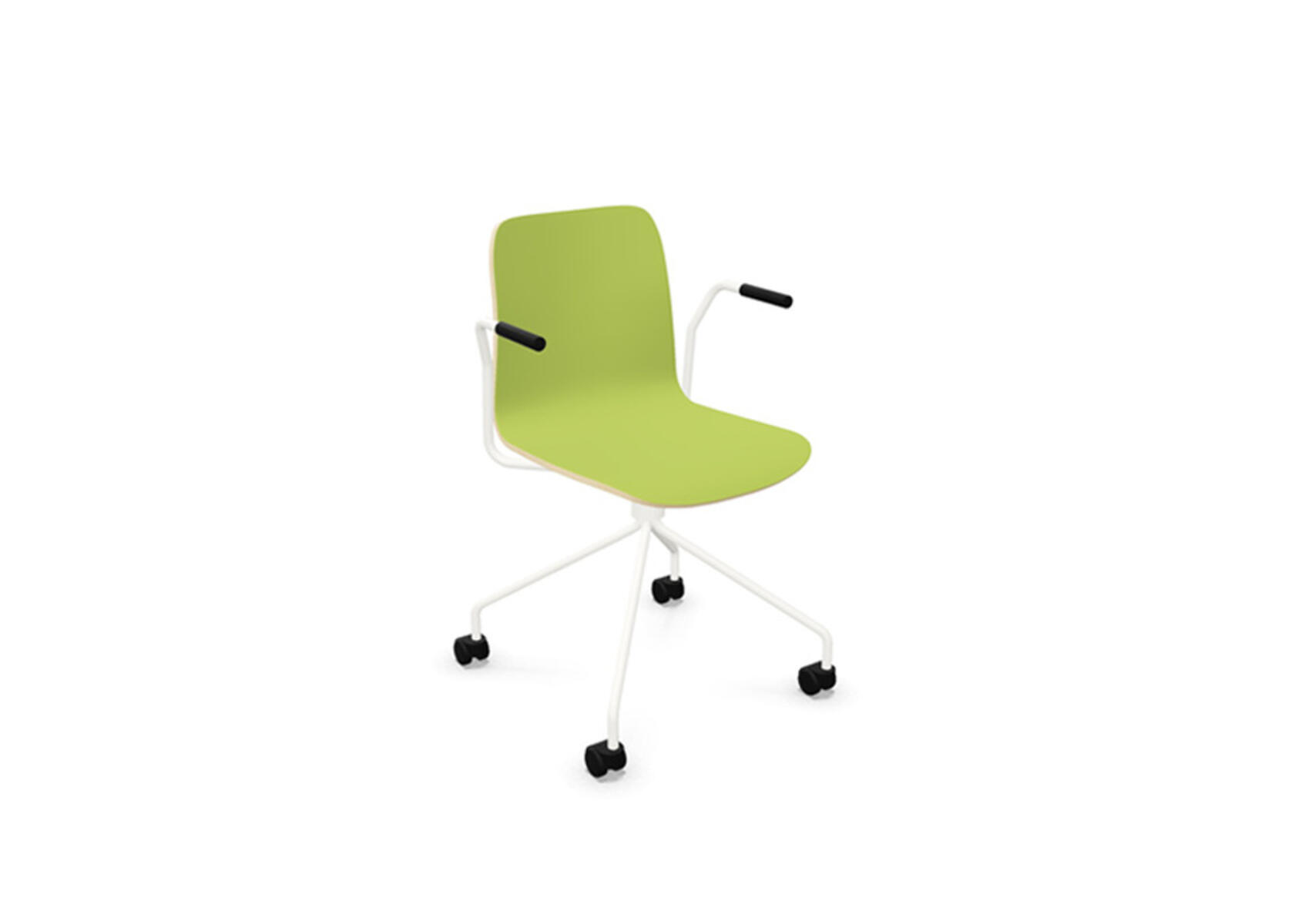 Ympäriverhoiltu, vaahtomuovilla pehmustettu istuinosa on valmistettu muotoonpuristetusta vanerista. Vakaa, jauhemaalattu jalusta ø 18 mm teräsputkesta. Korkea 4-sakarainen ristikko kovalle lattialle sopivilla pyörillä. Valittavana käsinojat. Vapaasti pyörivä, ei korkeussäädettävä.