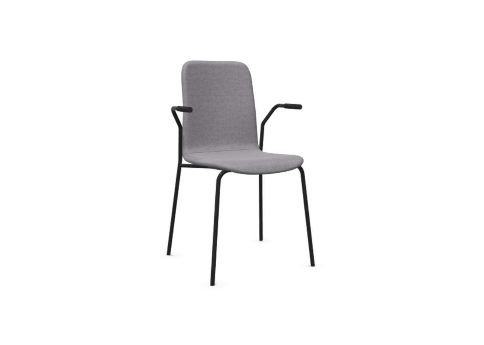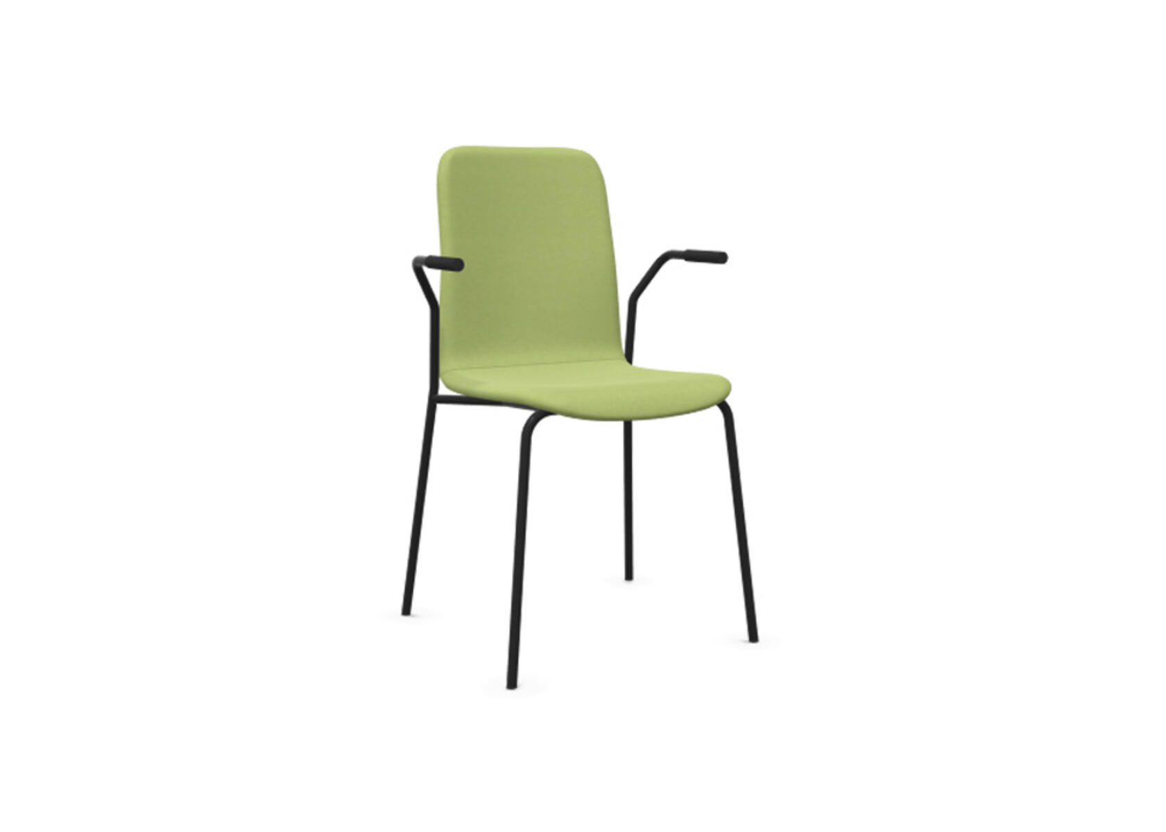 Ympäriverhoiltu, vaahtomuovilla pehmustettu istuinosa on valmistettu muotoonpuristetusta vanerista. Vakaa, jauhemaalattu jalusta ø 18 mm teräsputkesta, varustettu kalustetassuilla lattian suojaamiseksi. Valittavana käsinojat. Erikseen myytävillä liitosheloilla tuoleista voidaan muodostaa rivejä tai istuinryhmiä. Enimmäiskuormitus 110 kg. Tuoli on pinottavissa enintään 6 kpl pinoon.
