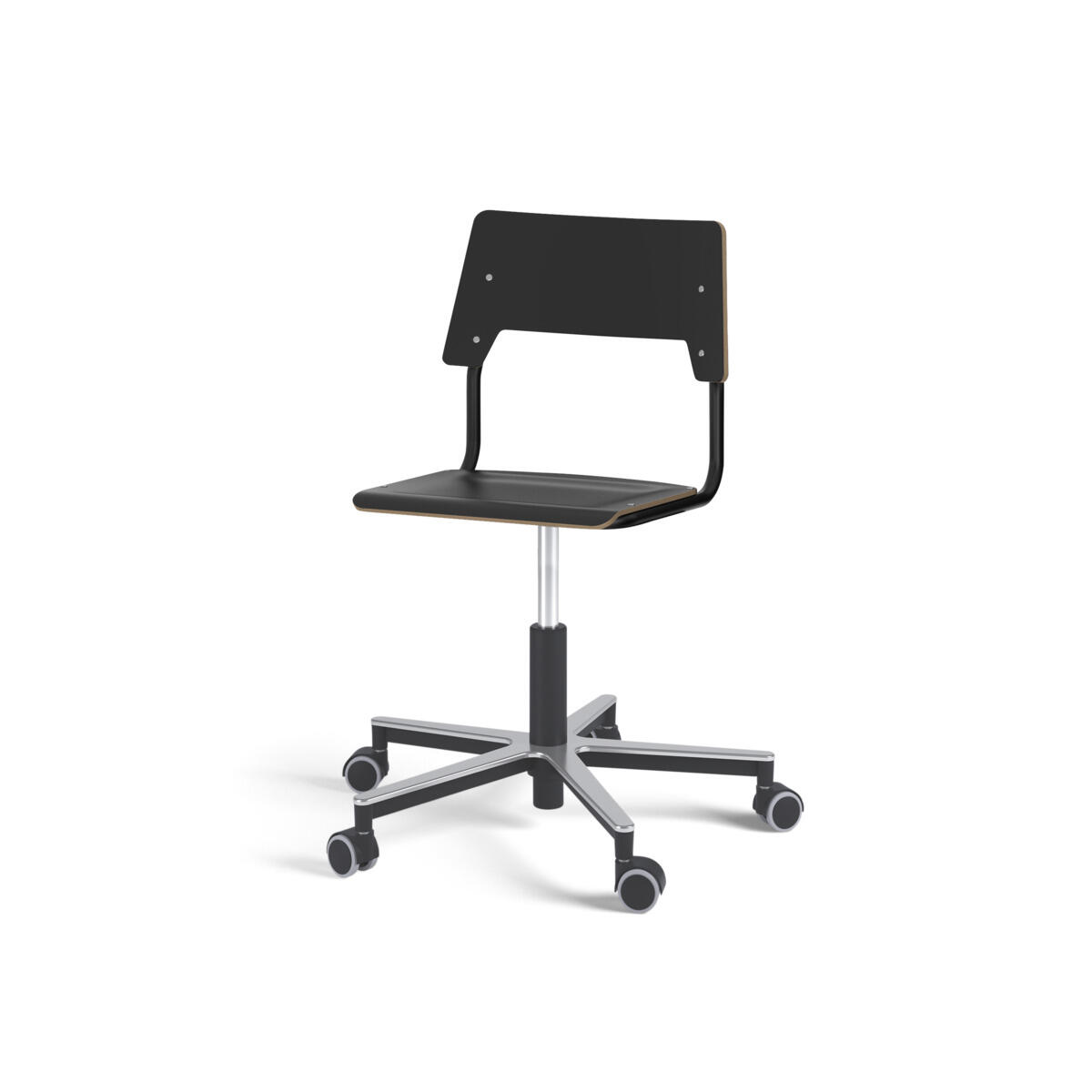 Istuin ja selkänoja on valmistettu vanerista, pinnassa korkeapainelaminaattia. Muotoiltu istuin lisää istuinmukavuutta. Korkeutta säädetään kaasujousella helposti yhdestä vivusta. Tuoli on ripustettavissa pöytään selkänojasta. Selkänojan alapinnassa on naarmuttamista estävät pehmikkeet. Selkänojan takana oleva rungon yläpää toimii laukkukoukkuna. Tuolissa on kestävä alumiiniristikko ja pyörät.