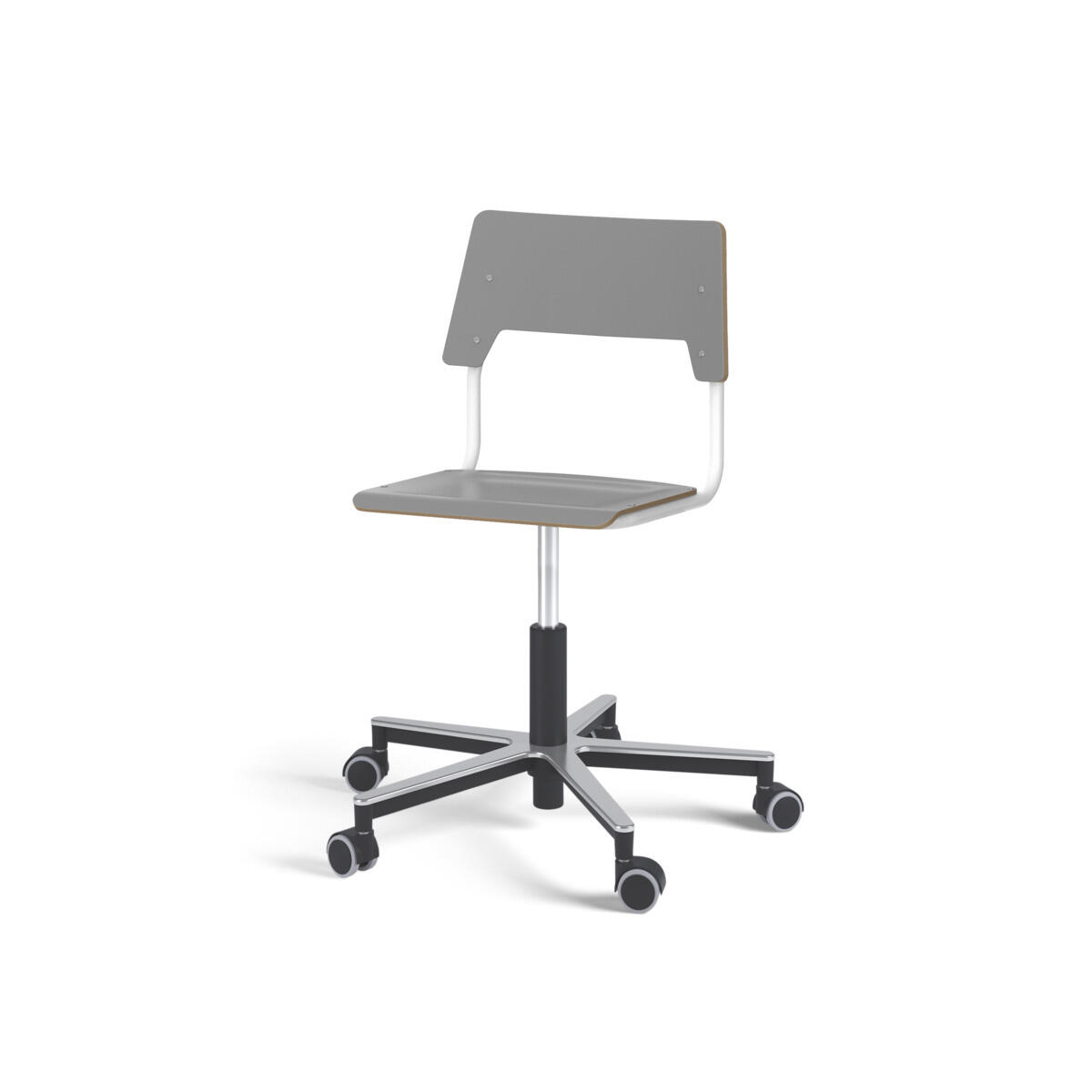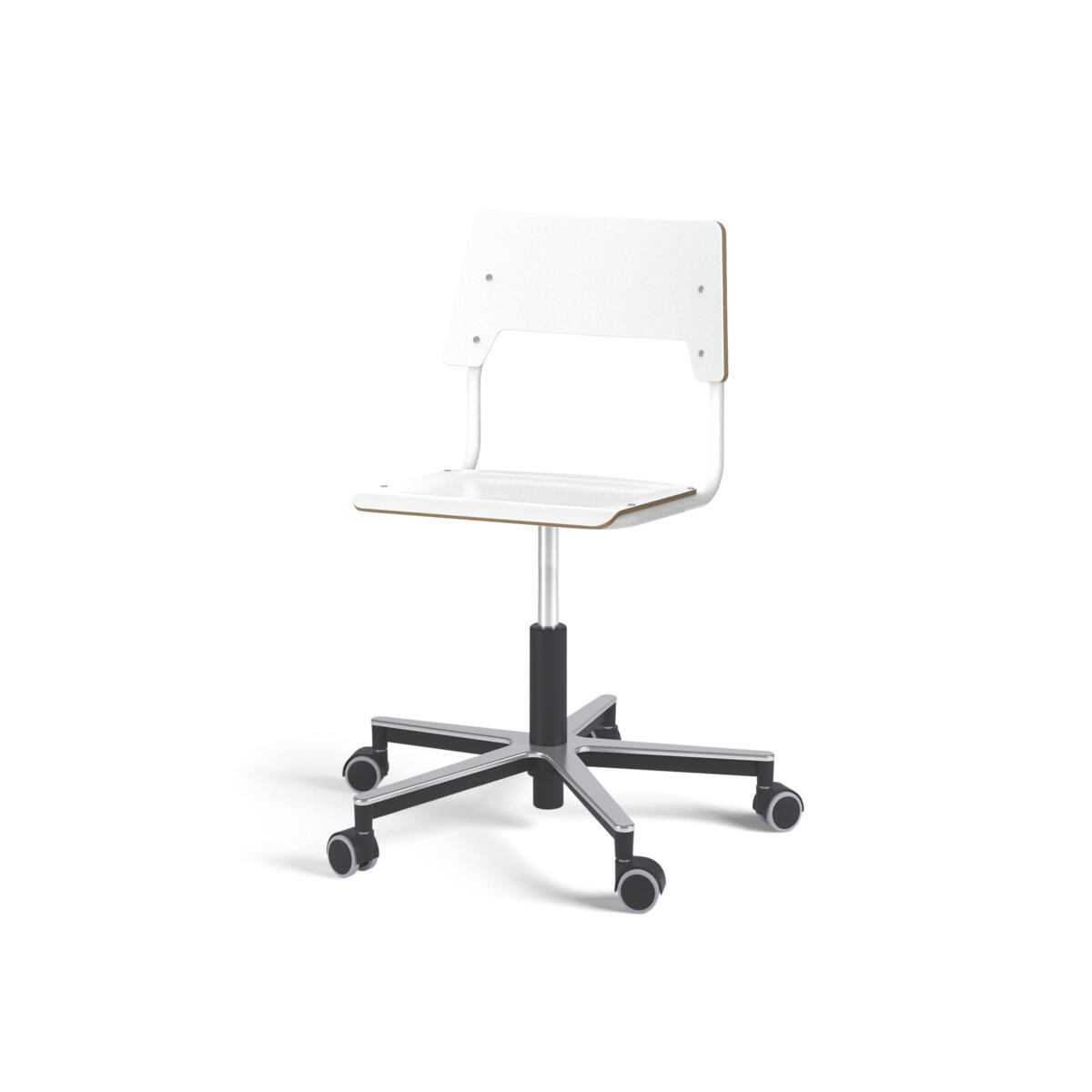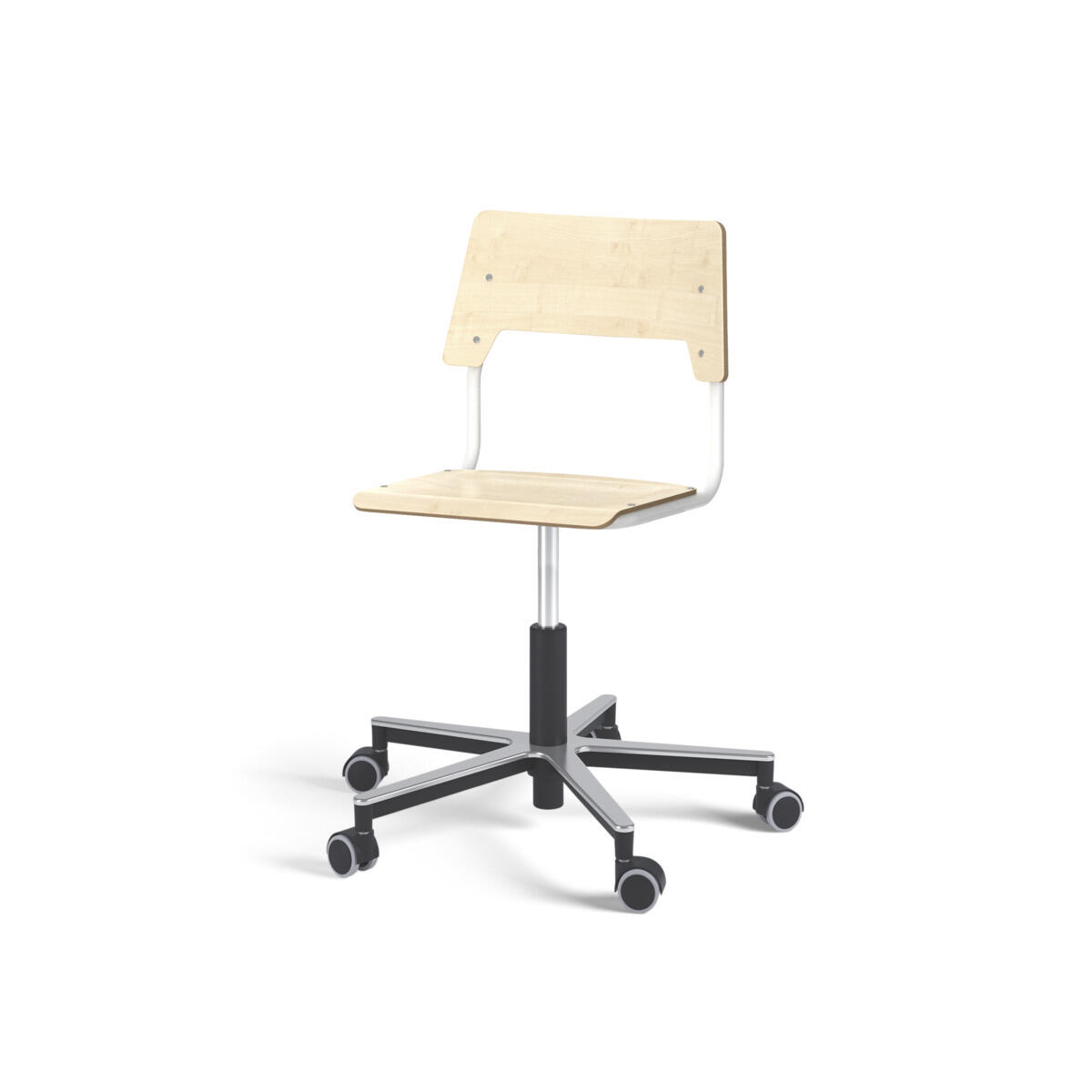 Istuin ja selkänoja on valmistettu vanerista, pinnassa korkeapainelaminaattia. Muotoiltu istuin lisää istuinmukavuutta. Korkeutta säädetään kaasujousella helposti yhdestä vivusta. Tuoli on ripustettavissa pöytään selkänojasta. Selkänojan alapinnassa on naarmuttamista estävät pehmikkeet. Selkänojan takana oleva rungon yläpää toimii laukkukoukkuna. Tuolissa on kestävä alumiiniristikko ja pyörät.