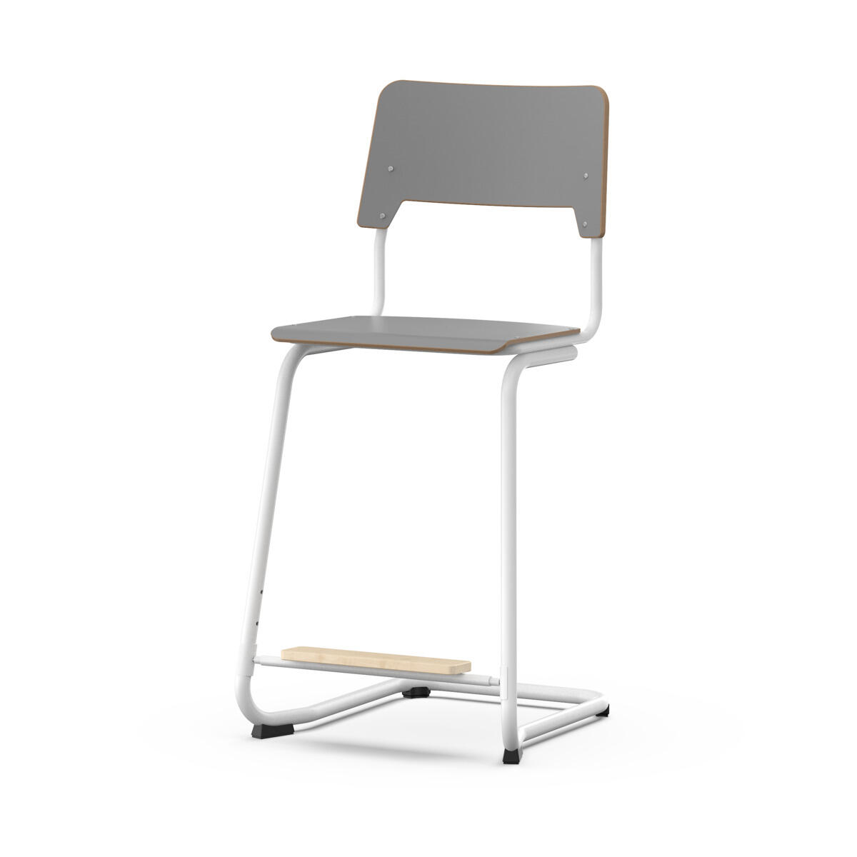 Istuin ja selkänoja on valmistettu vanerista, pinnassa korkeapainelaminaattia. Muotoiltu istuin lisää istuinmukavuutta. Tuoli on hyväksytty EN 1729-1 & 2 standardin mukaan. Runko hopea RAL 9006. Jaloissa on huopatassut. Tuoli pinoutuu ja on ripustettavissa pöytään selkänojasta. Selkänojan alapinnassa on naarmuttamista estävät pehmikkeet. Selkänojan takana oleva rungon yläpää toimii laukkukoukkuna. Jalkatuki säädettävissä kolmeen korkeuteen, 26, 31 ja 36 cm istuimesta.