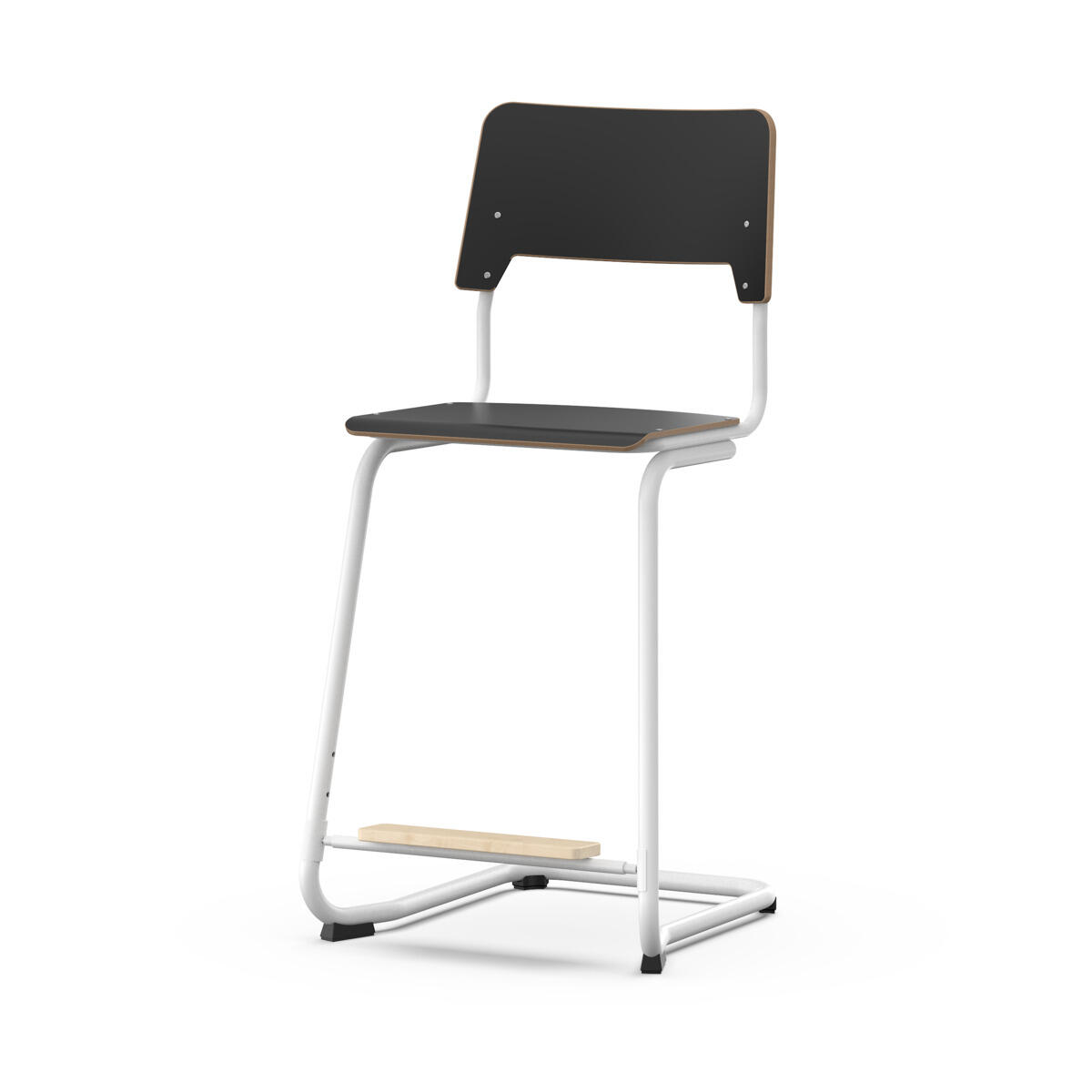 Istuin ja selkänoja on valmistettu vanerista, pinnassa korkeapainelaminaattia. Muotoiltu istuin lisää istuinmukavuutta. Tuoli on hyväksytty EN 1729-1 & 2 standardin mukaan. Runko musta RAL 9005. Jaloissa on huopatassut. Tuoli pinoutuu ja on ripustettavissa pöytään selkänojasta. Selkänojan alapinnassa on naarmuttamista estävät pehmikkeet. Selkänojan takana oleva rungon yläpää toimii laukkukoukkuna. Jalkatuki säädettävissä kolmeen korkeuteen, 26, 31 ja 36 cm istuimesta.