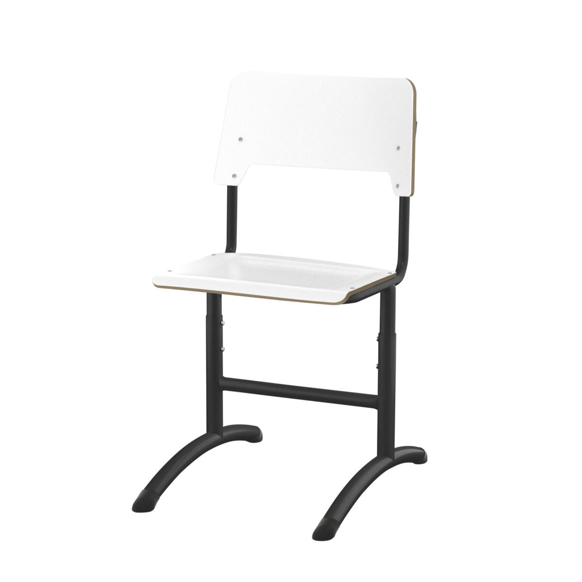 Istuin ja selkänoja on valmistettu vanerista, pinnassa korkeapainelaminaattia. Muotoiltu istuin lisää istuinmukavuutta. Korkeussäädettävissä istuinkorkeuksiin 38, 43, 46 ja 51 cm. Jaloissa on muovitassut, joista kaksi on säädettäviä. Tuoli on ripustettavissa pöytään selkänojasta. Selkänojan alapinnassa on naarmuttamista estävät pehmikkeet. Selkänojan takana oleva rungon yläpää toimii laukkukoukkuna.