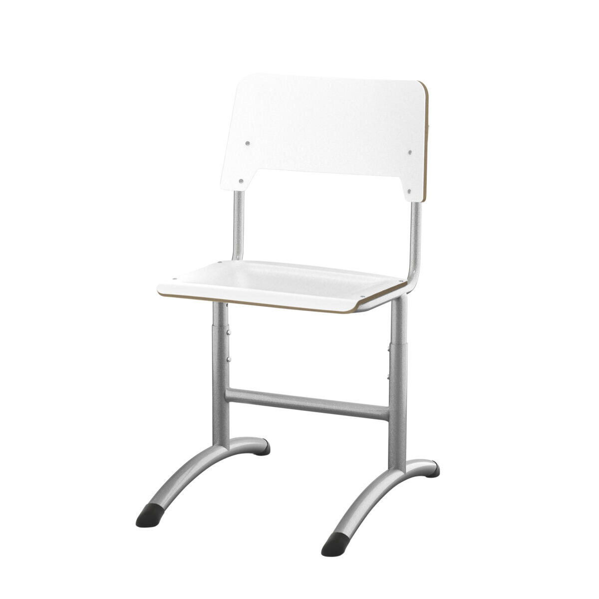 Istuin ja selkänoja on valmistettu vanerista, pinnassa korkeapainelaminaattia. Muotoiltu istuin lisää istuinmukavuutta. Korkeussäädettävissä istuinkorkeuksiin 38, 43, 46 ja 51 cm. Jaloissa on muovitassut, joista kaksi on säädettäviä. Tuoli on ripustettavissa pöytään selkänojasta. Selkänojan alapinnassa on naarmuttamista estävät pehmikkeet. Selkänojan takana oleva rungon yläpää toimii laukkukoukkuna.