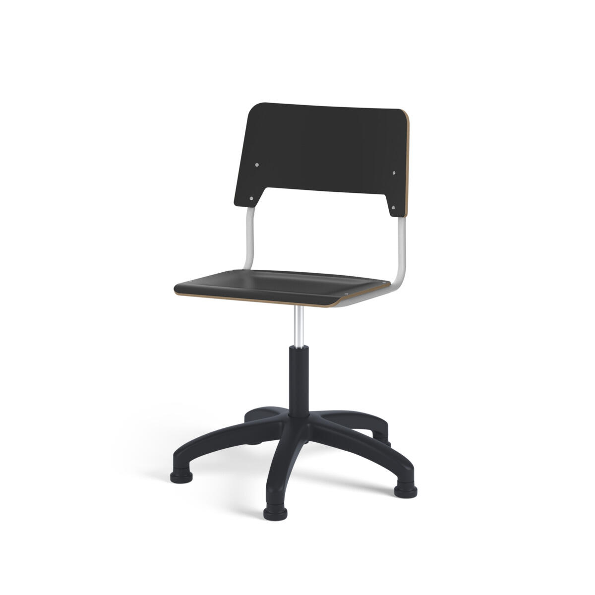 Istuin ja selkänoja on valmistettu vanerista, pinnassa korkeapainelaminaattia. Muotoiltu istuin lisää istuinmukavuutta. Korkeutta säädetään kaasujousella helposti yhdestä vivusta. Tuoli on ripustettavissa pöytään selkänojasta. Selkänojan alapinnassa on naarmuttamista estävät pehmikkeet. Selkänojan takana oleva rungon yläpää toimii laukkukoukkuna. Tuolissa on kestävä muoviristikko ja liukutassut.