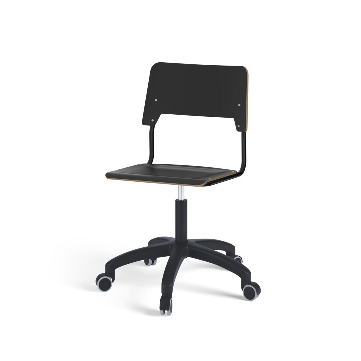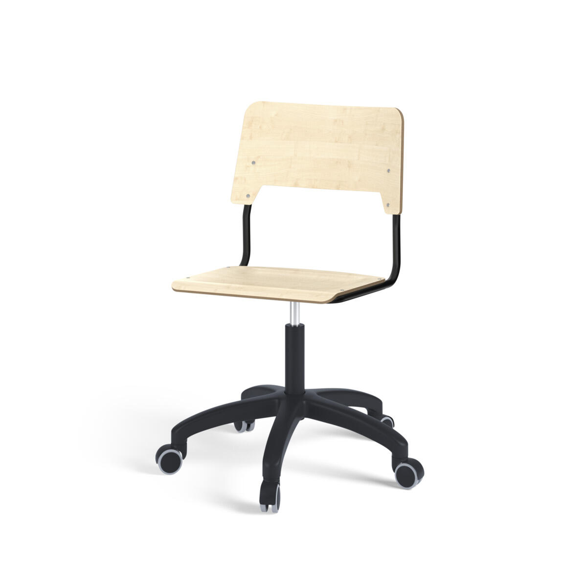 Istuin ja selkänoja on valmistettu vanerista, pinnassa korkeapainelaminaattia. Muotoiltu istuin lisää istuinmukavuutta. Korkeutta säädetään kaasujousella helposti yhdestä vivusta. Tuoli on ripustettavissa pöytään selkänojasta. Selkänojan alapinnassa on naarmuttamista estävät pehmikkeet. Selkänojan takana oleva rungon yläpää toimii laukkukoukkuna. Tuolissa on kestävä muoviristikko ja pyörät.
