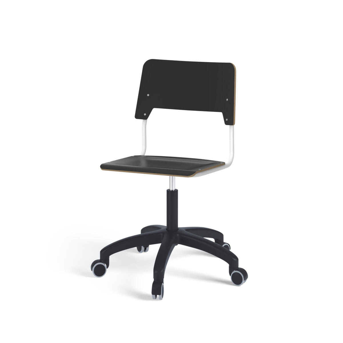 Istuin ja selkänoja on valmistettu vanerista, pinnassa korkeapainelaminaattia. Muotoiltu istuin lisää istuinmukavuutta. Korkeutta säädetään kaasujousella helposti yhdestä vivusta. Tuoli on ripustettavissa pöytään selkänojasta. Selkänojan alapinnassa on naarmuttamista estävät pehmikkeet. Selkänojan takana oleva rungon yläpää toimii laukkukoukkuna. Tuolissa on kestävä muoviristikko ja pyörät.