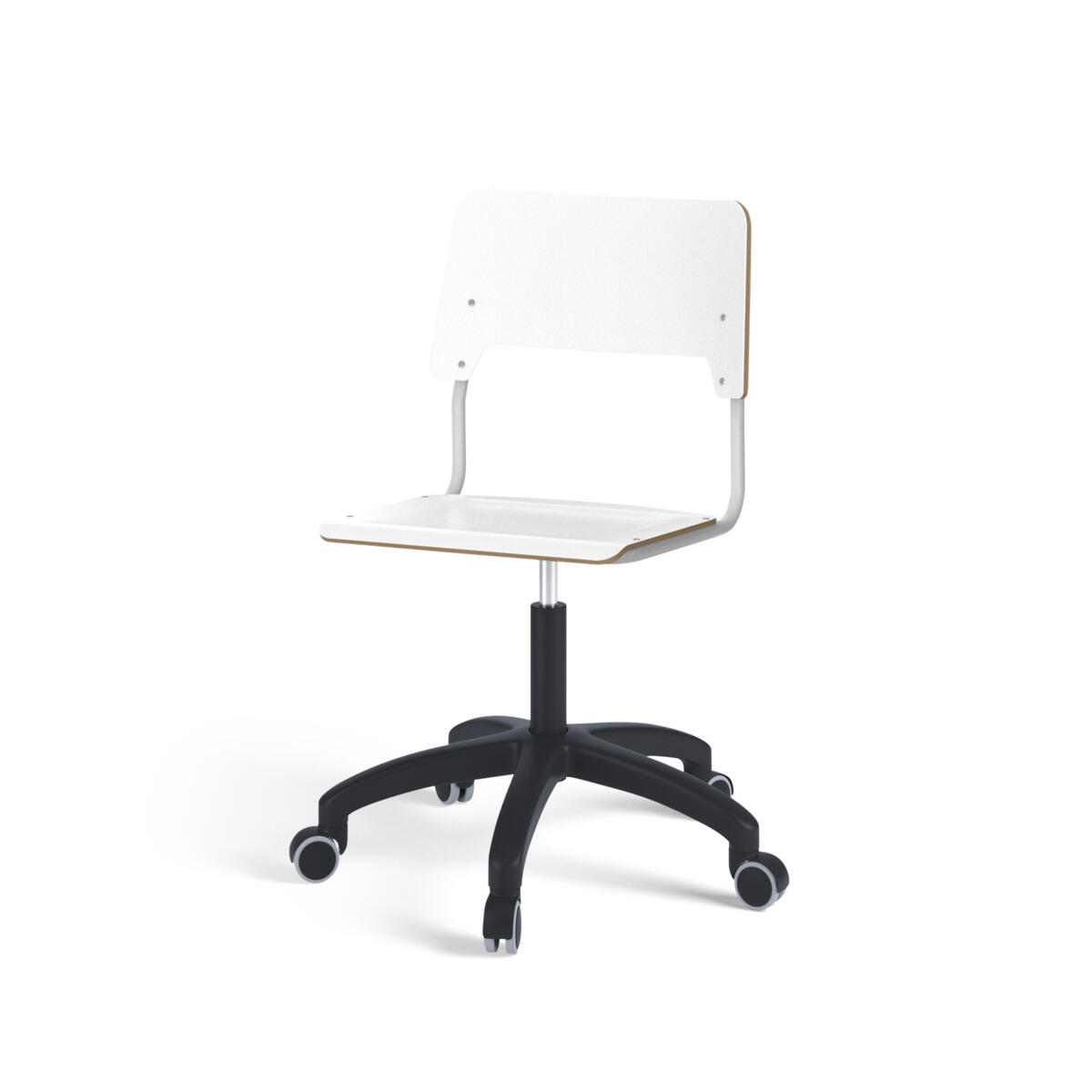 Istuin ja selkänoja on valmistettu vanerista, pinnassa korkeapainelaminaattia. Muotoiltu istuin lisää istuinmukavuutta. Korkeutta säädetään kaasujousella helposti yhdestä vivusta. Tuoli on ripustettavissa pöytään selkänojasta. Selkänojan alapinnassa on naarmuttamista estävät pehmikkeet. Selkänojan takana oleva rungon yläpää toimii laukkukoukkuna. Tuolissa on kestävä muoviristikko ja pyörät.