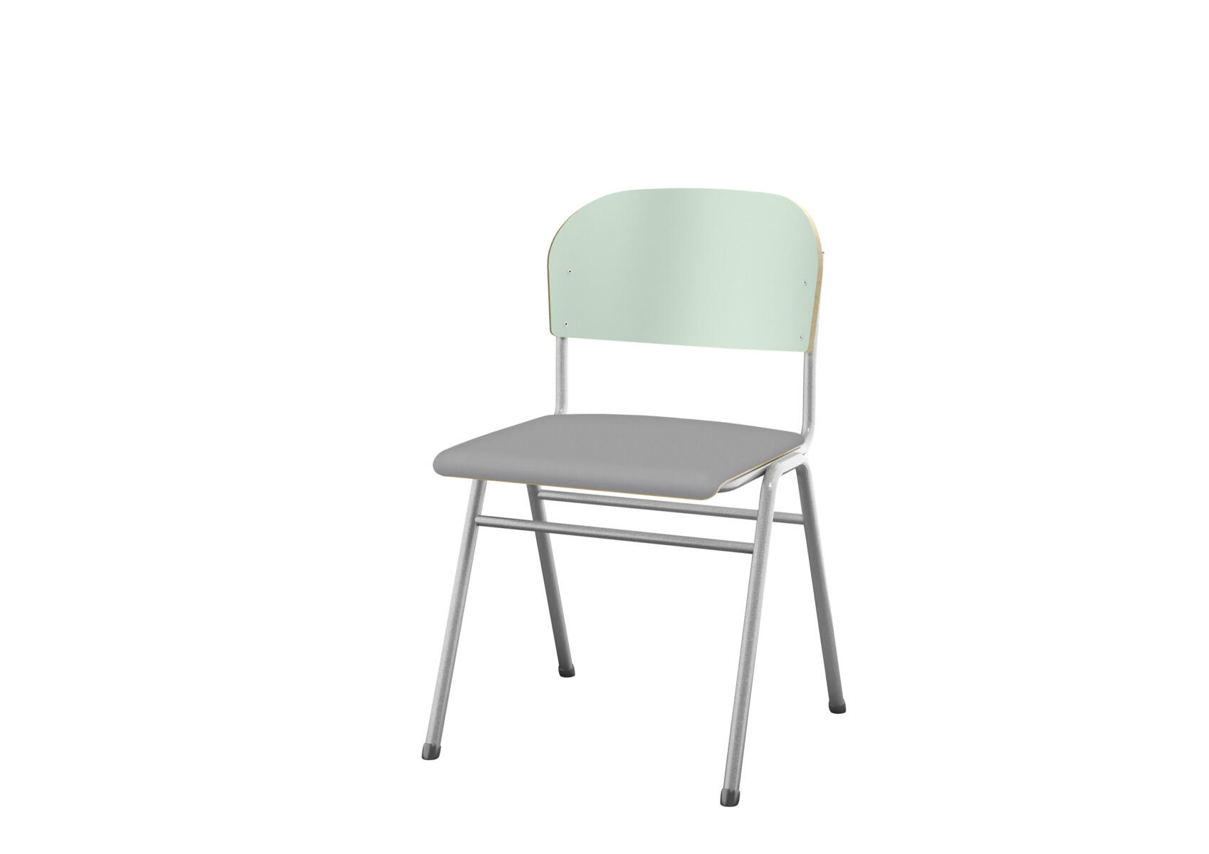 Oppilastuolin istuin ja selkänoja on valmistettu vanerista, pinnassa korkeapainelaminaattia. Istuinkorkeus säädettävissä 38, 43, 46 tai 51 cm. Metalliputkirunko hopeanharmaa RAL 9006. Säädettävät tassut. Lisävalintana istuinpehmuste.