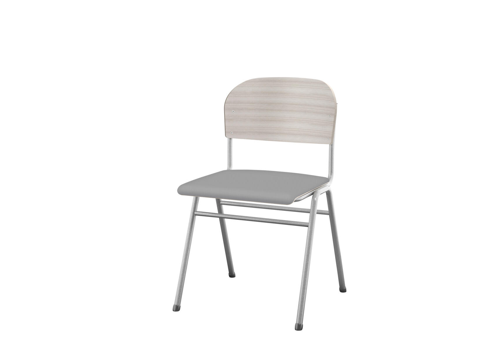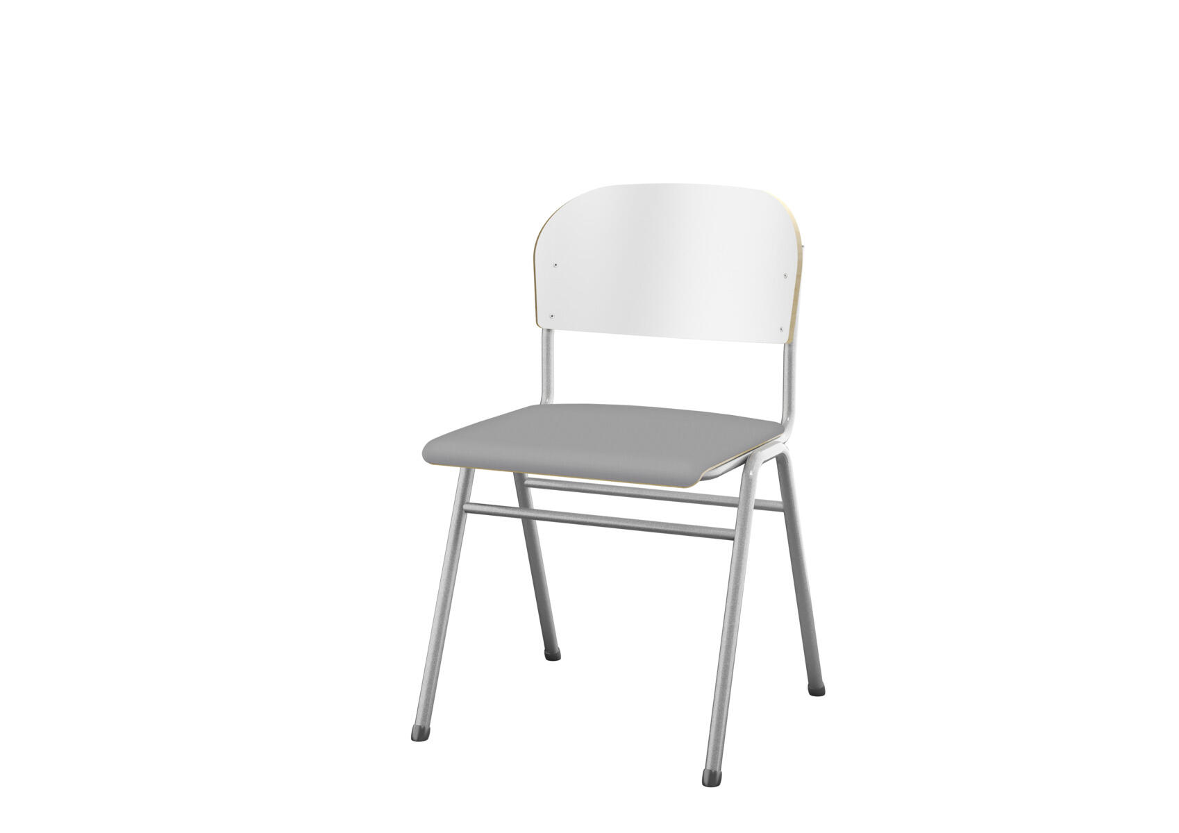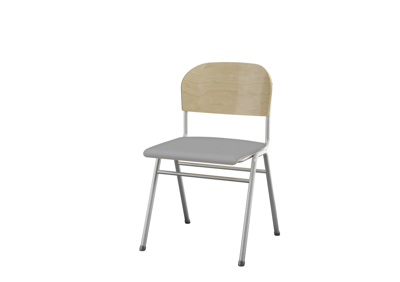 Oppilastuolin istuin ja selkänoja on valmistettu vanerista, pinnassa korkeapainelaminaattia. Metalliputkirunko hopeanharmaa RAL 9006. Ääntävaimentavat tassut, tassun halkaisija 27 mm. Pinottava. Lisävalintana istuinpehmuste.