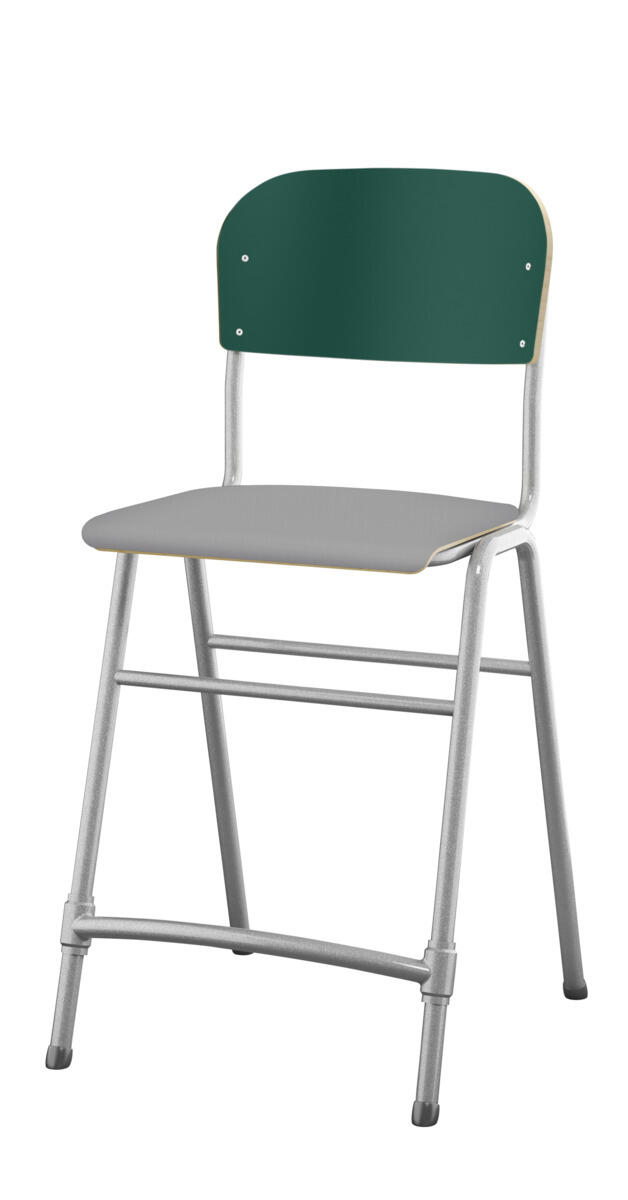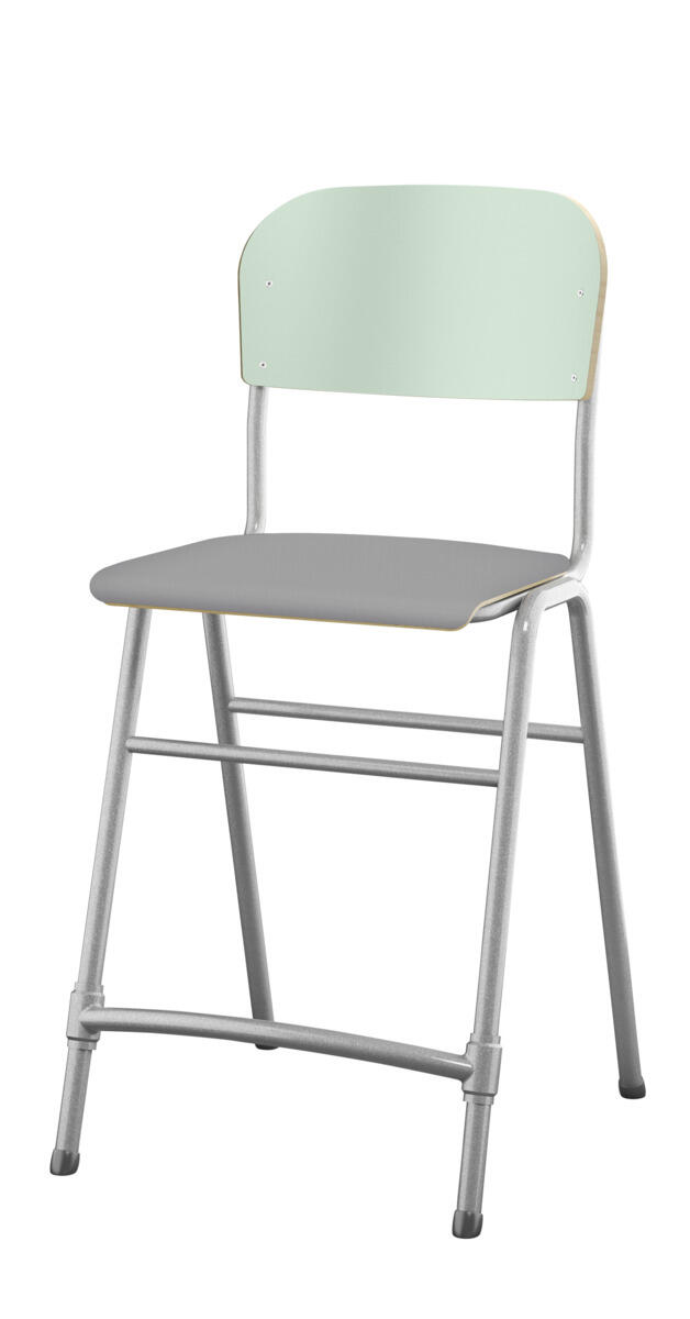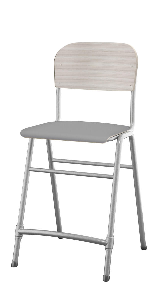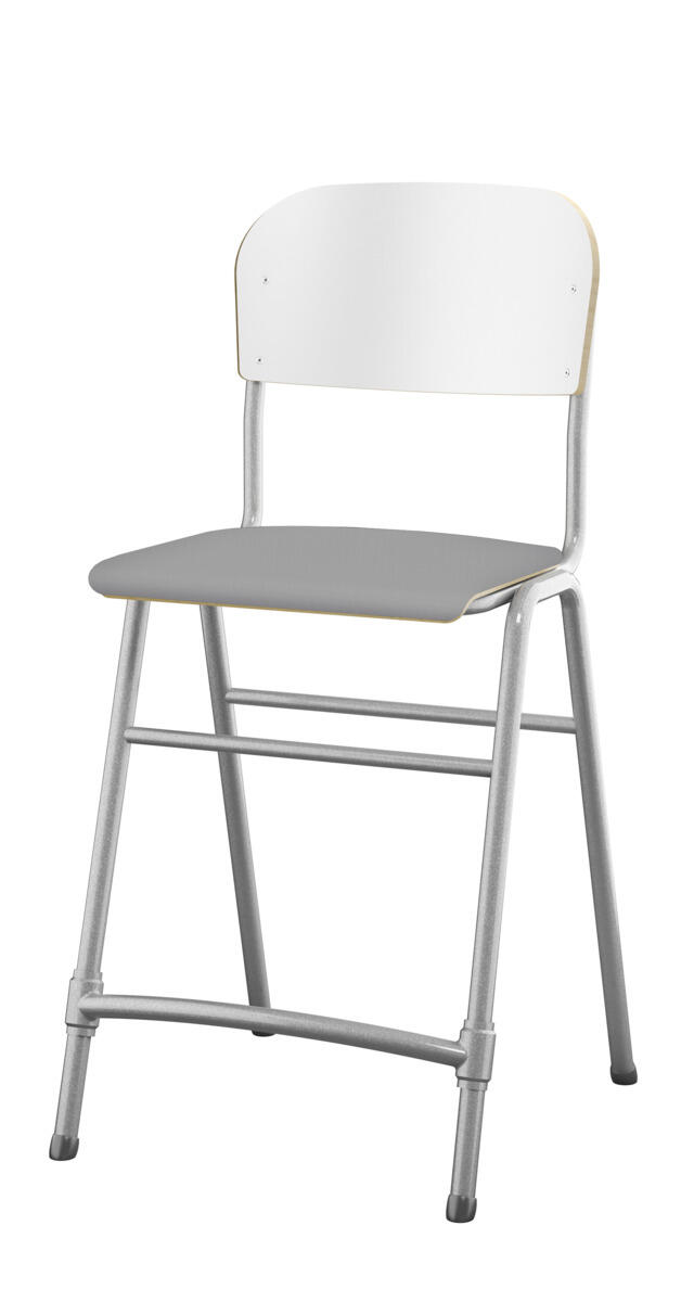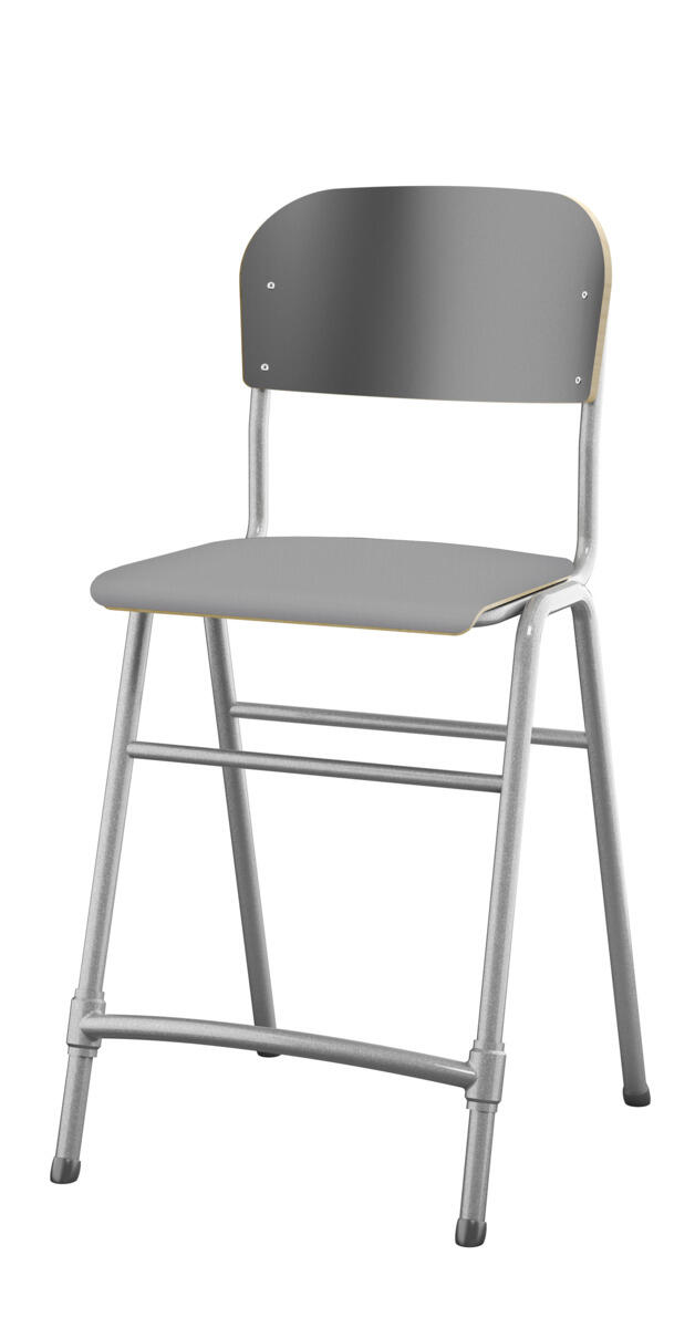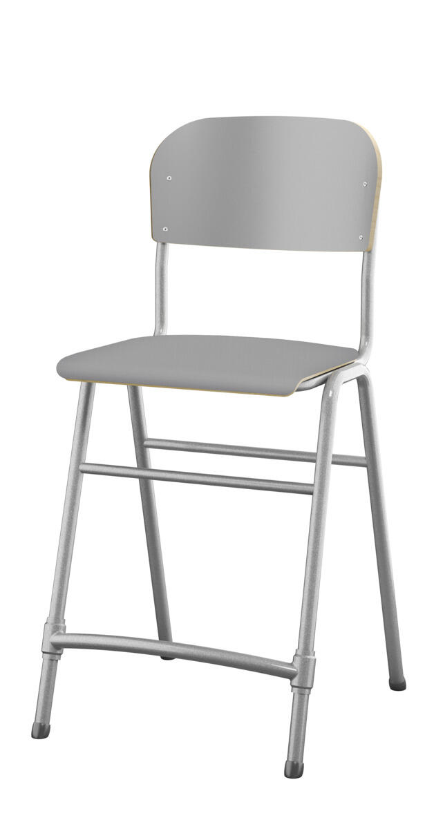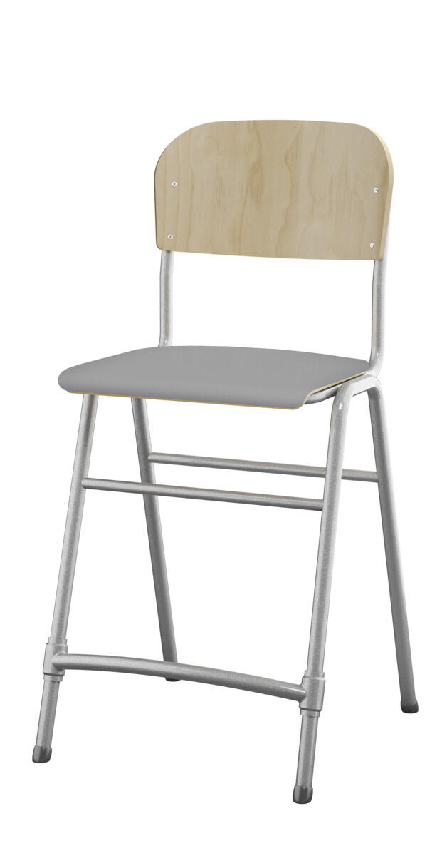 Oppilastuolin istuin ja selkänoja on valmistettu vanerista, pinnassa korkeapainelaminaattia. Istuinkorkeus säädettävissä 38, 43, 46 tai 51 cm. Metalliputkirunko hopeanharmaa RAL 9006. Säädettävät tassut. Lisävalintana istuinpehmuste.