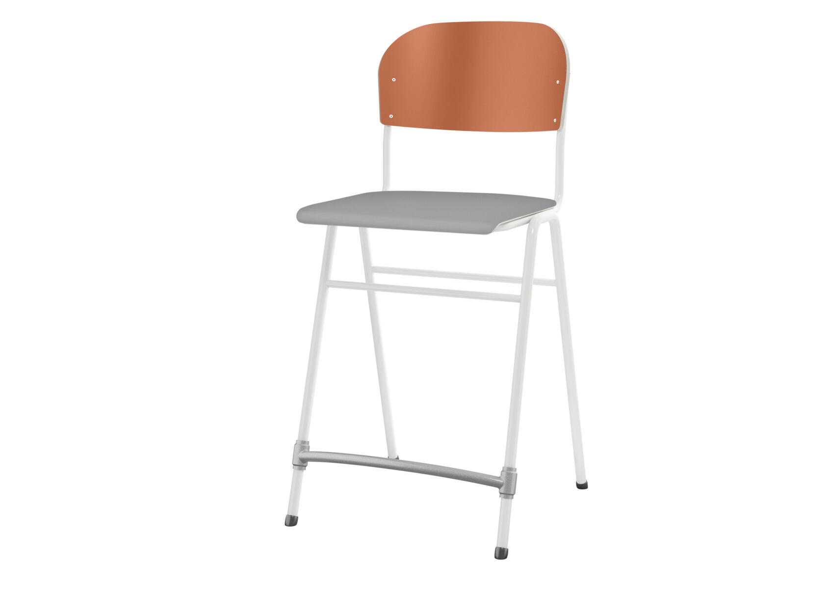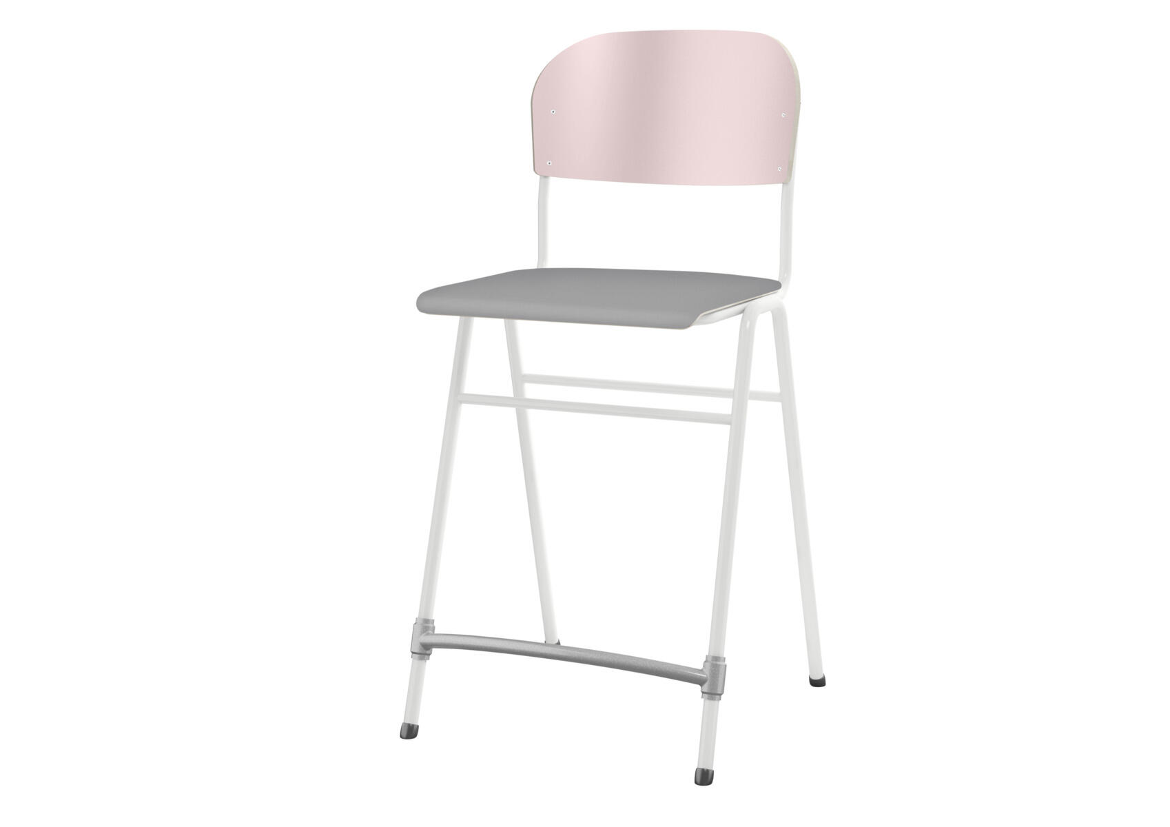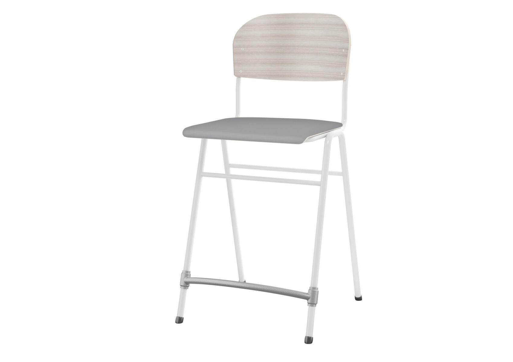 Oppilastuolin istuin ja selkänoja on valmistettu vanerista, pinnassa korkeapainelaminaattia. Metalliputkirunko valkoinen RAL 9003. Korkeussäädettävä jalkatuki. Ääntävaimentavat tassut, tassun halkaisija 27 mm. Pinottava (max 4 tuolia/pino). Lisävalintana istuinpehmuste.