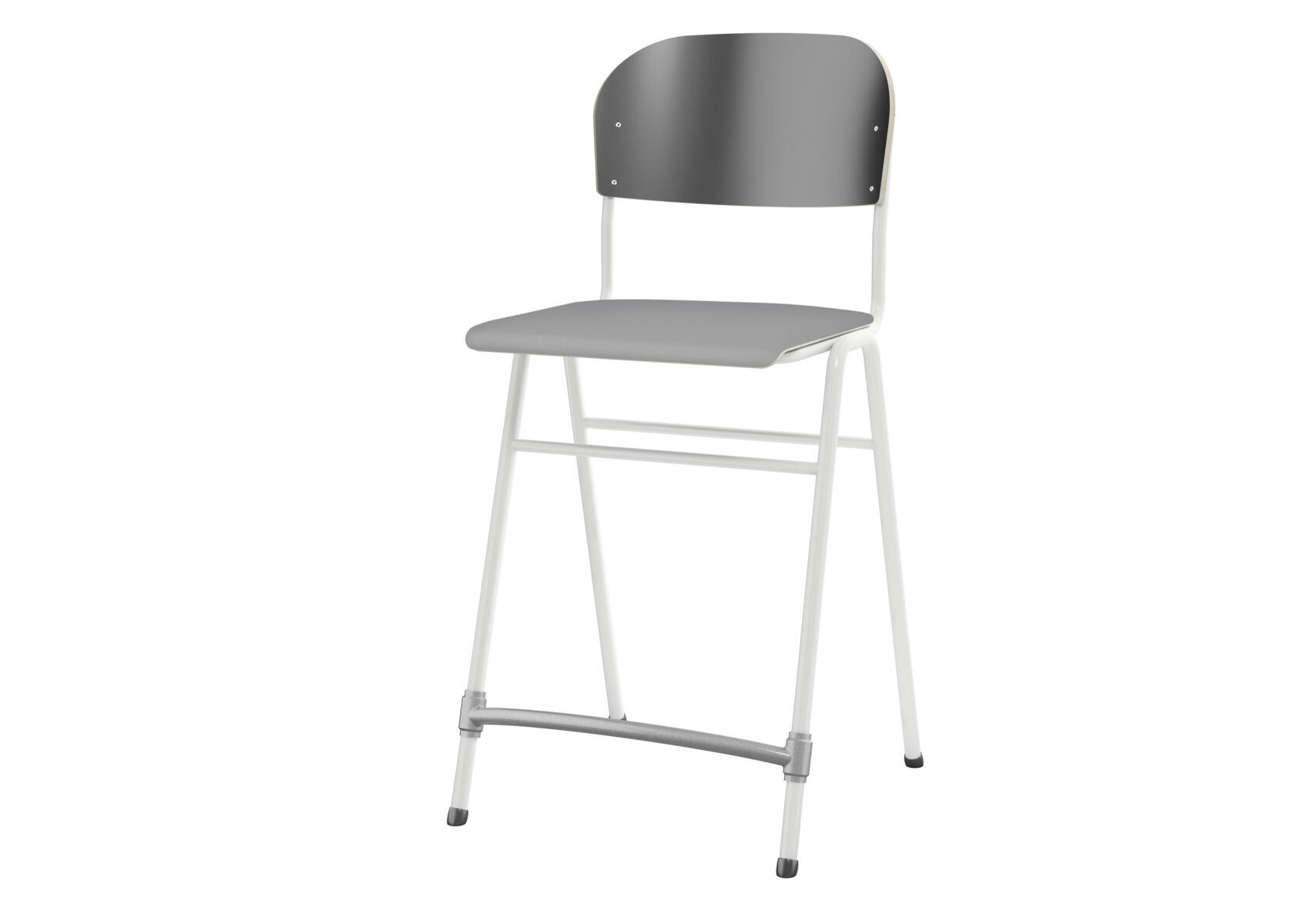 Oppilastuolin istuin ja selkänoja on valmistettu vanerista, pinnassa korkeapainelaminaattia. Metalliputkirunko hopeanharmaa RAL 9006. Korkeussäädettävä jalkatuki. Ääntävaimentavat tassut, tassun halkaisija 27 mm. Pinottava. Lisävalintana istuinpehmuste.