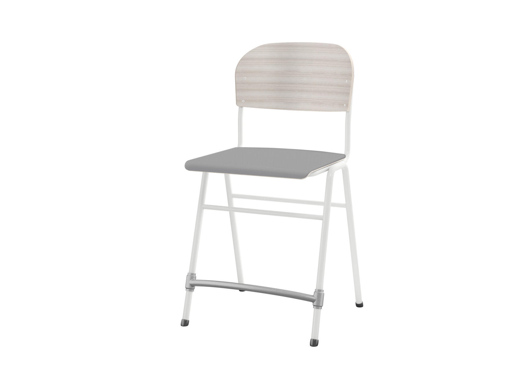 Oppilastuolin istuin ja selkänoja on valmistettu vanerista, pinnassa korkeapainelaminaattia. Metalliputkirunko valkoinen RAL 9003. Korkeussäädettävä jalkatuki, 3 eri korkeutta. Ääntävaimentavat tassut, tassun halkaisija 27 mm. Pinottava (max 4 tuolia/pino). Ripustettavissa pöytään. Lisävalintana istuinpehmuste.