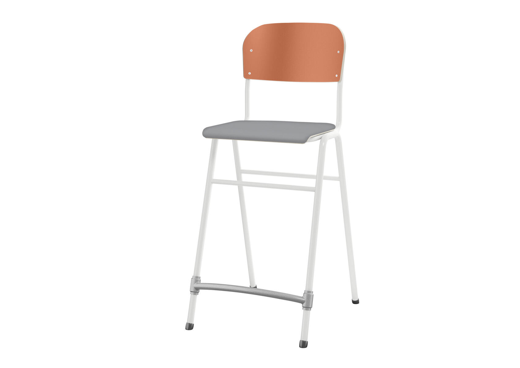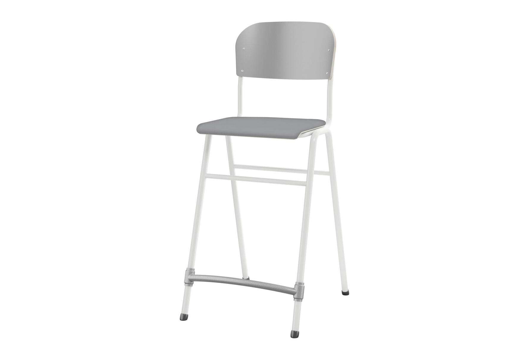 Oppilastuolin istuin ja selkänoja on valmistettu vanerista, pinnassa korkeapainelaminaattia. Metalliputkirunko valkoinen RAL 9003. Korkeussäädettävä jalkatuki, 3 eri korkeutta. Ääntävaimentavat tassut, tassun halkaisija 27 mm. Pinottava (max 4 tuolia/pino). Ripustettavissa pöytään. Lisävalintana istuinpehmuste.