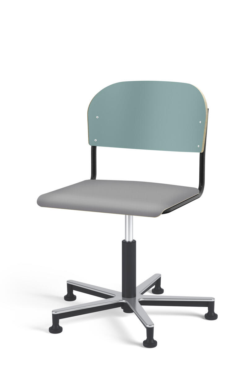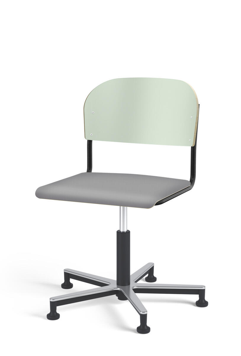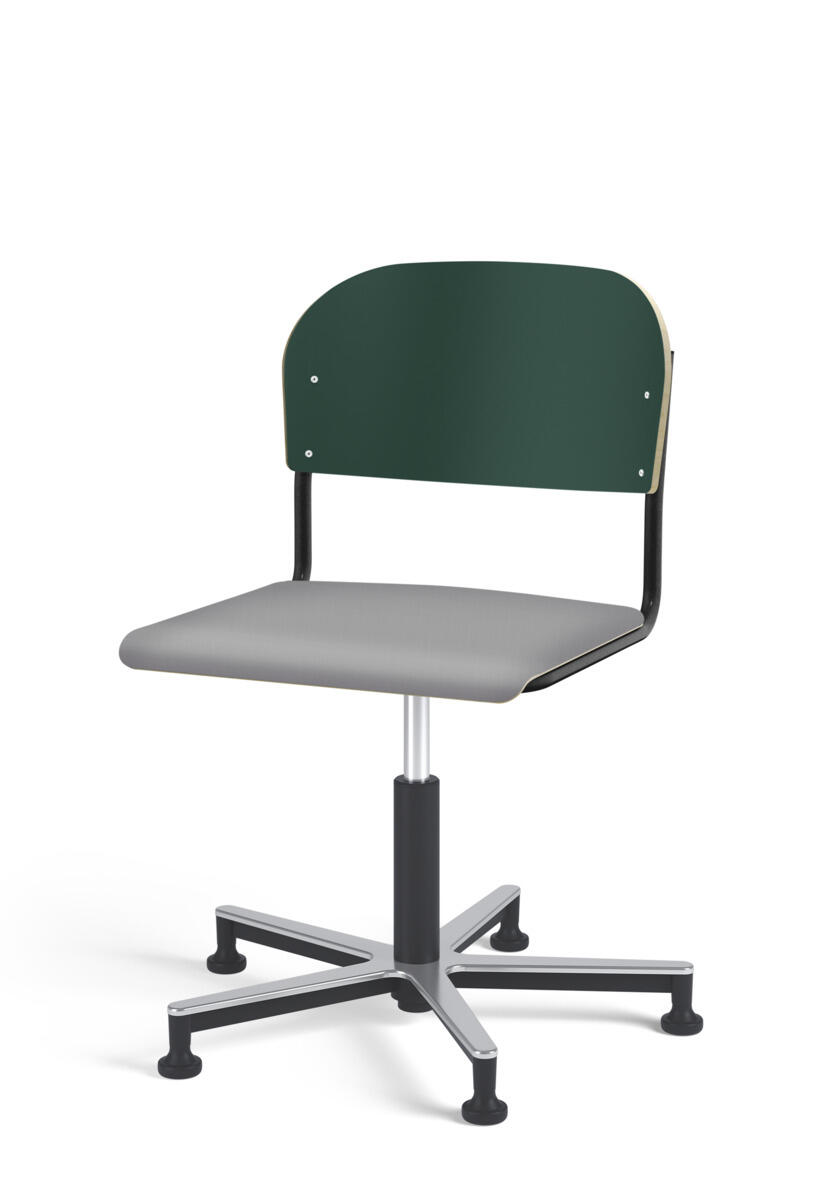 Oppilastuolin istuin ja selkänoja korkeapainelaminaattia, runko jauhemaalattua terästä. Alumiiniristikko pyörillä, korkeussäätö kaasujousella. Lisävalintana istuinpehmuste.