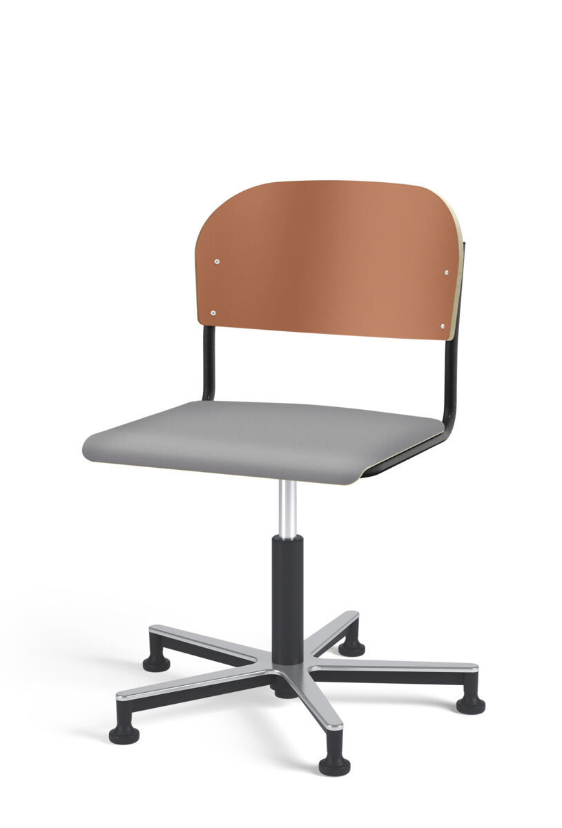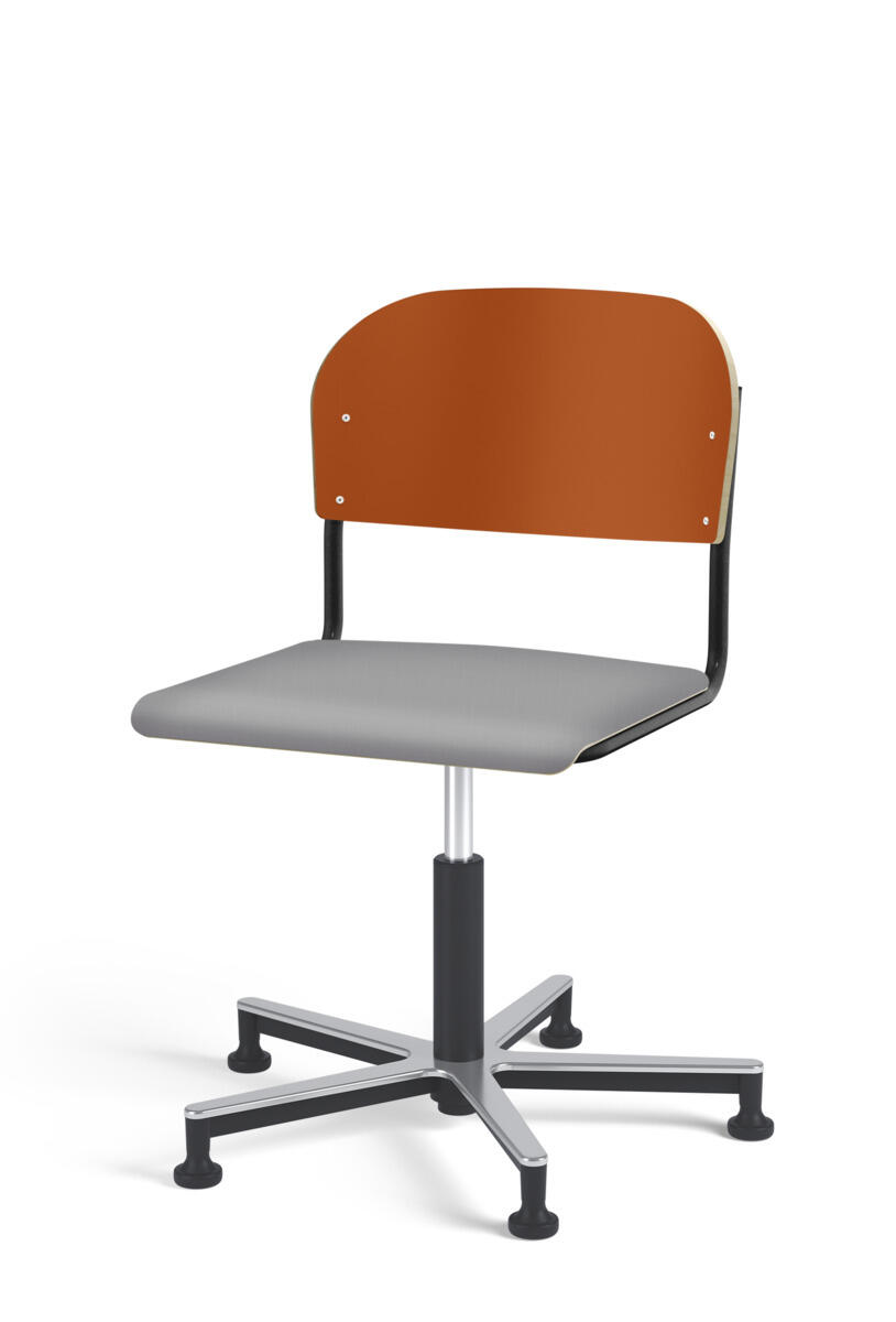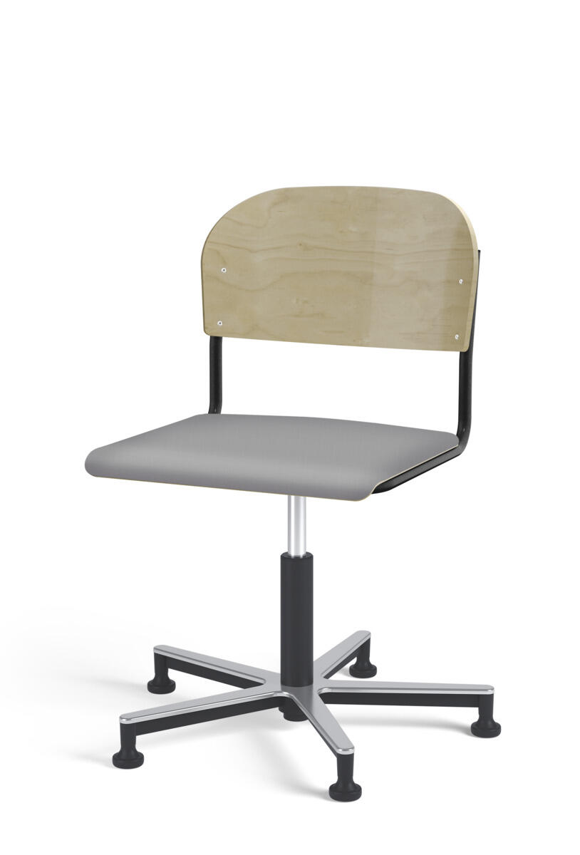 Oppilastuolin istuin ja selkänoja on valmistettu vanerista, pinnassa korkeapainelaminaattia. Kaasujousella portaattomasti säädettävä istuinkorkeus 38-51 cm. Pyörillä. Koottava. Lisävalintana istuinpehmuste.