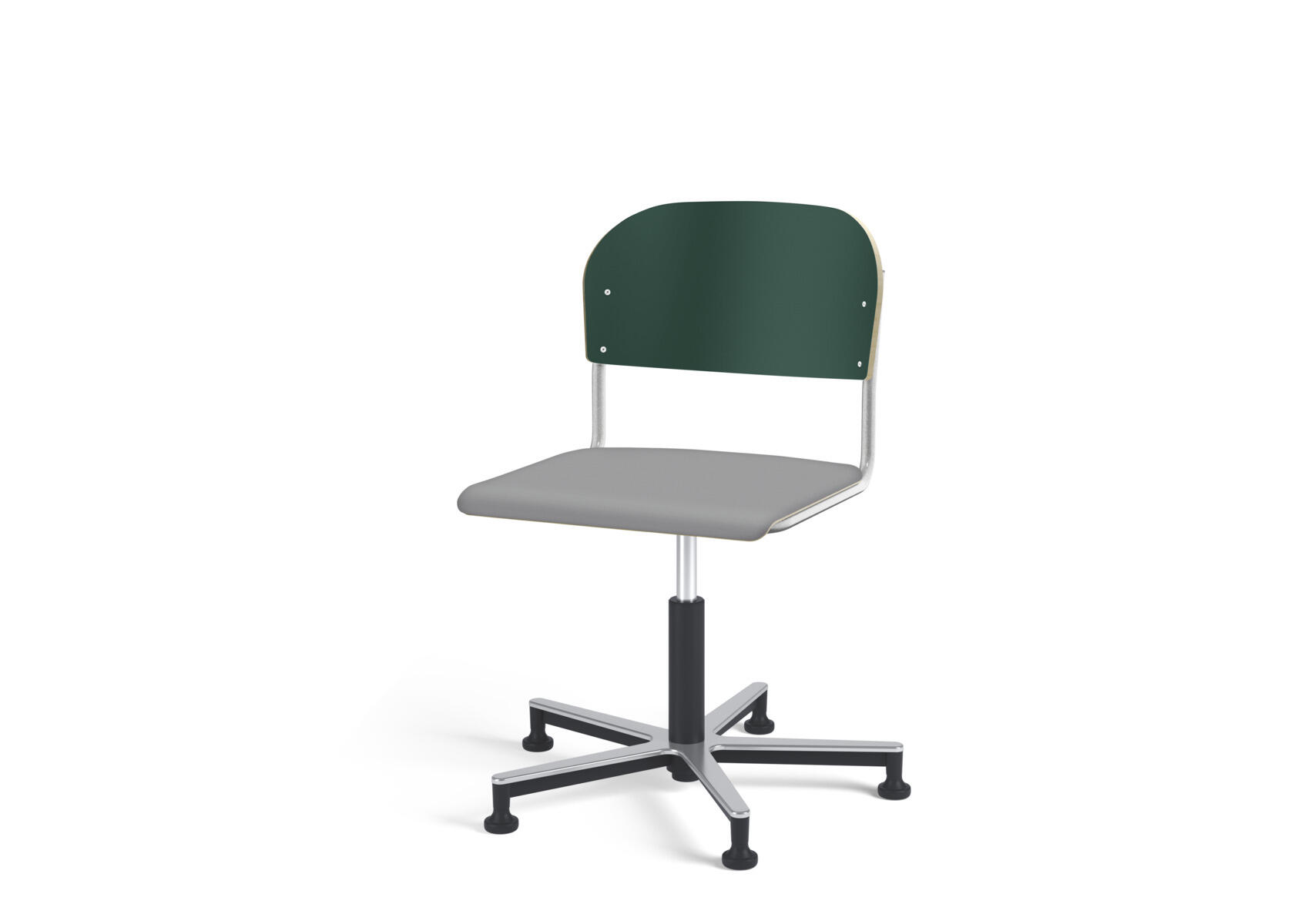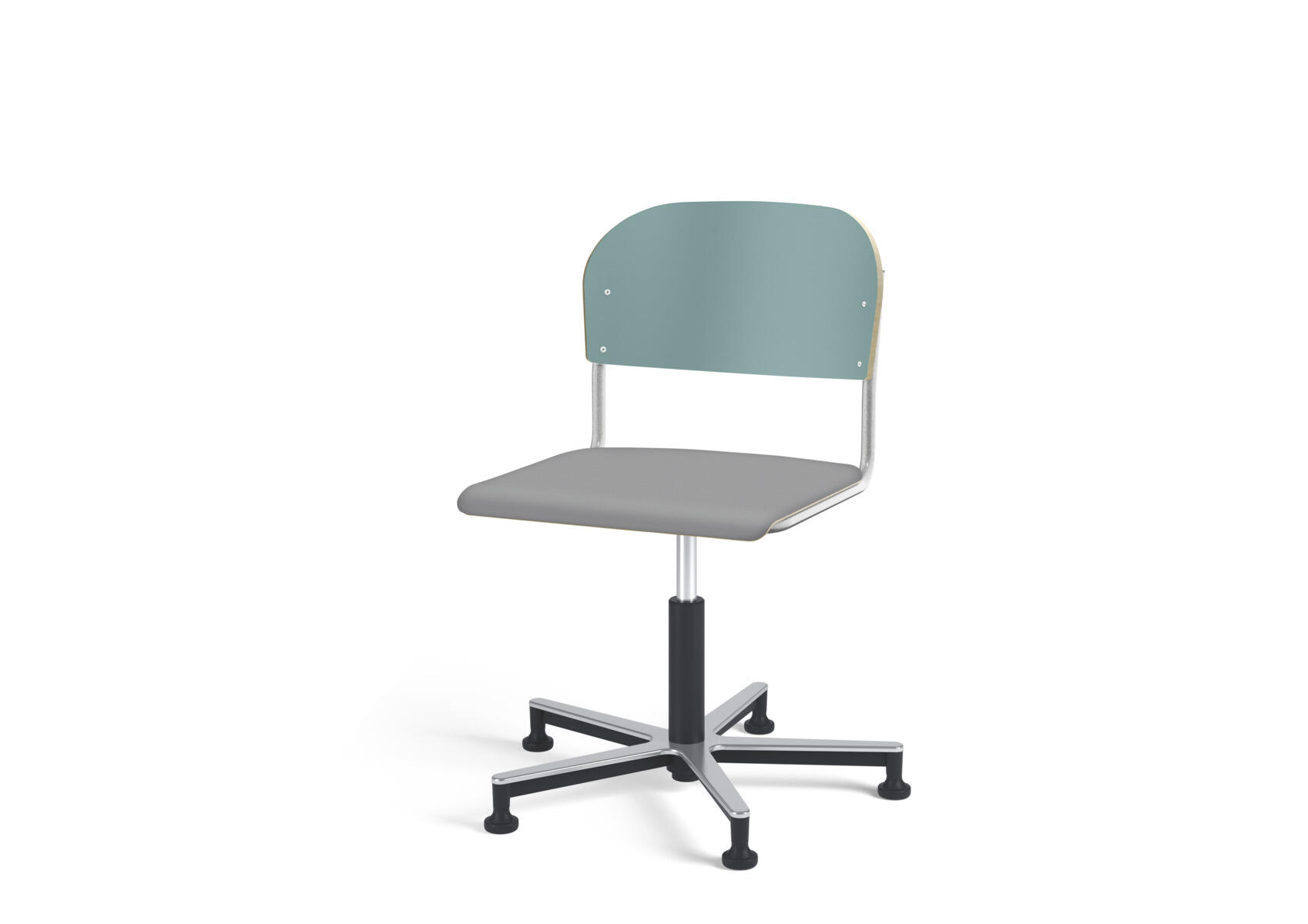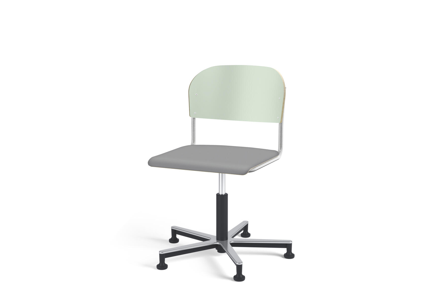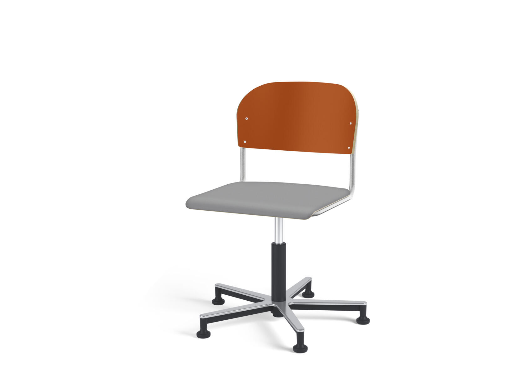 Oppilastuolin istuin ja selkänoja on valmistettu vanerista, pinnassa korkeapainelaminaattia. Kaasujousella portaattomasti säädettävä istuinkorkeus 38-51 cm. Pyörillä. Koottava. Lisävalintana istuinpehmuste.