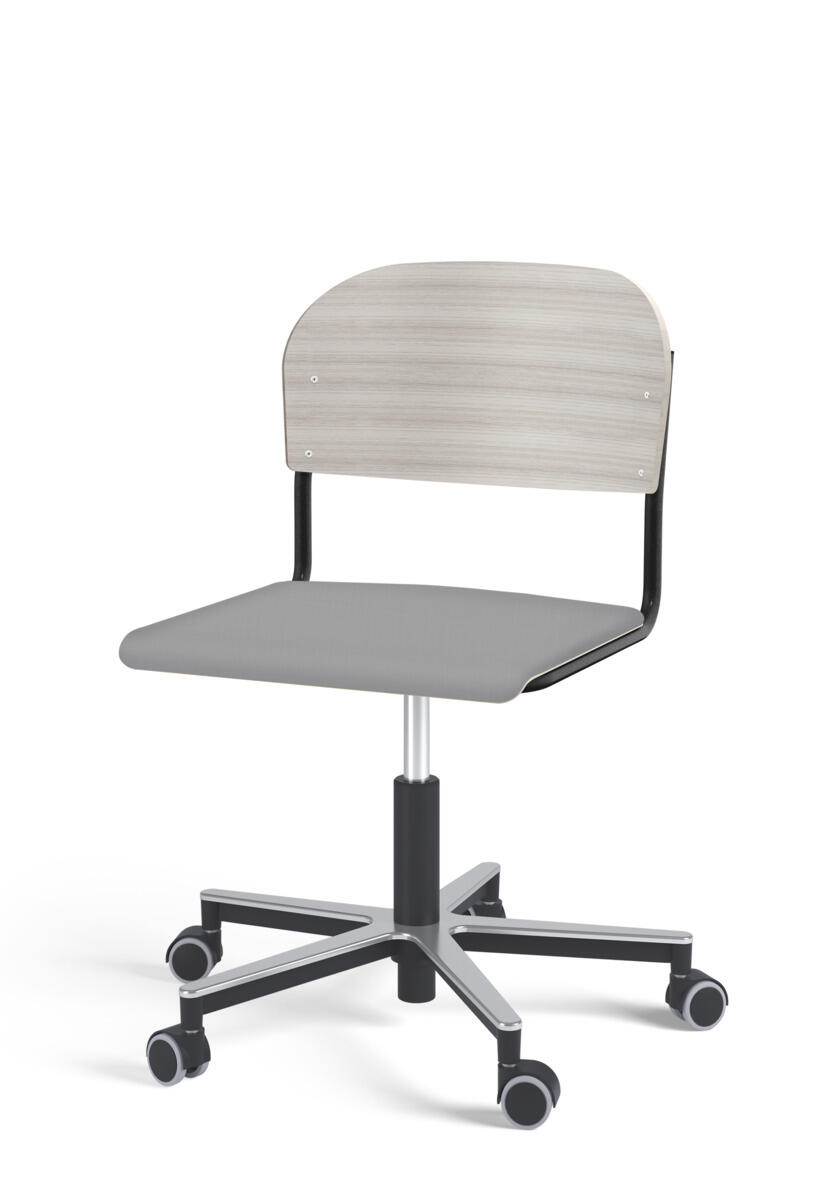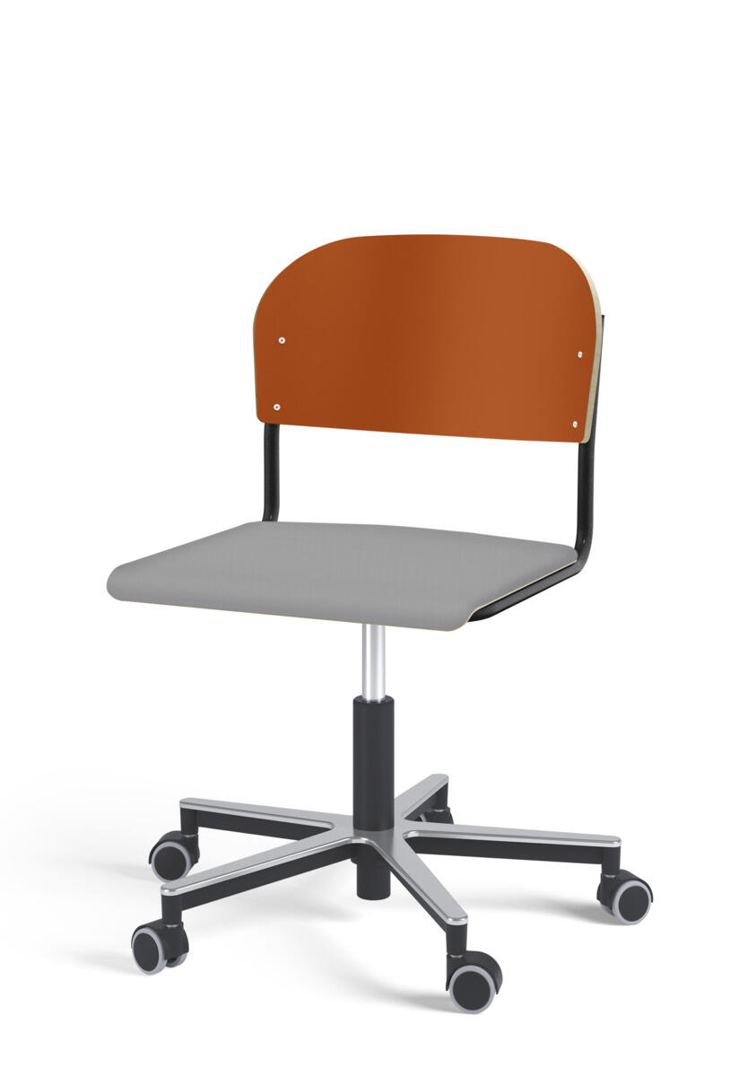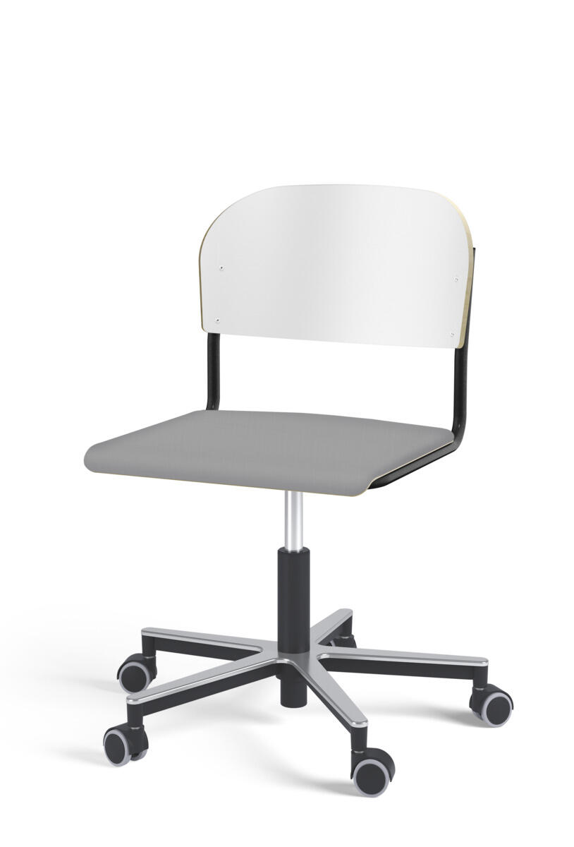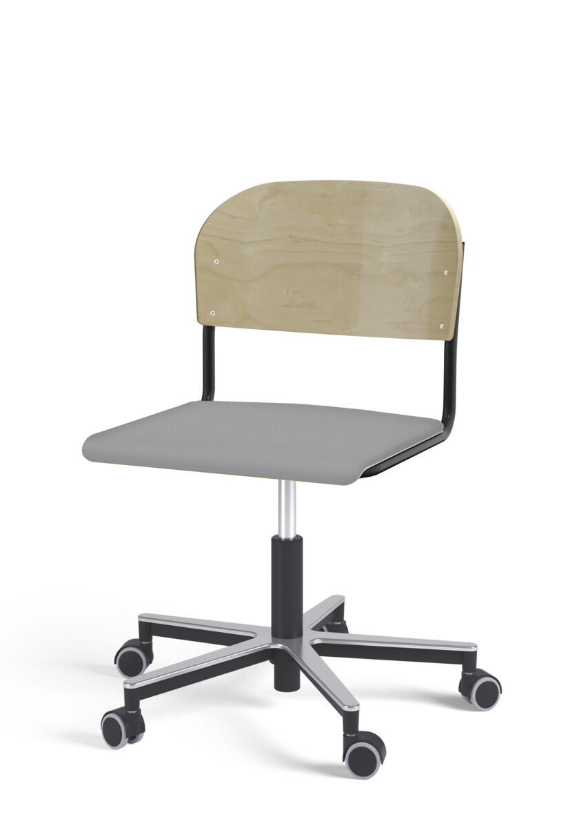 Oppilastuolin istuin ja selkänoja on valmistettu vanerista, pinnassa korkeapainelaminaattia. Kaasujousella portaattomasti säädettävä istuinkorkeus 38-51 cm. Pyörillä. Koottava. Lisävalintana istuinpehmuste.