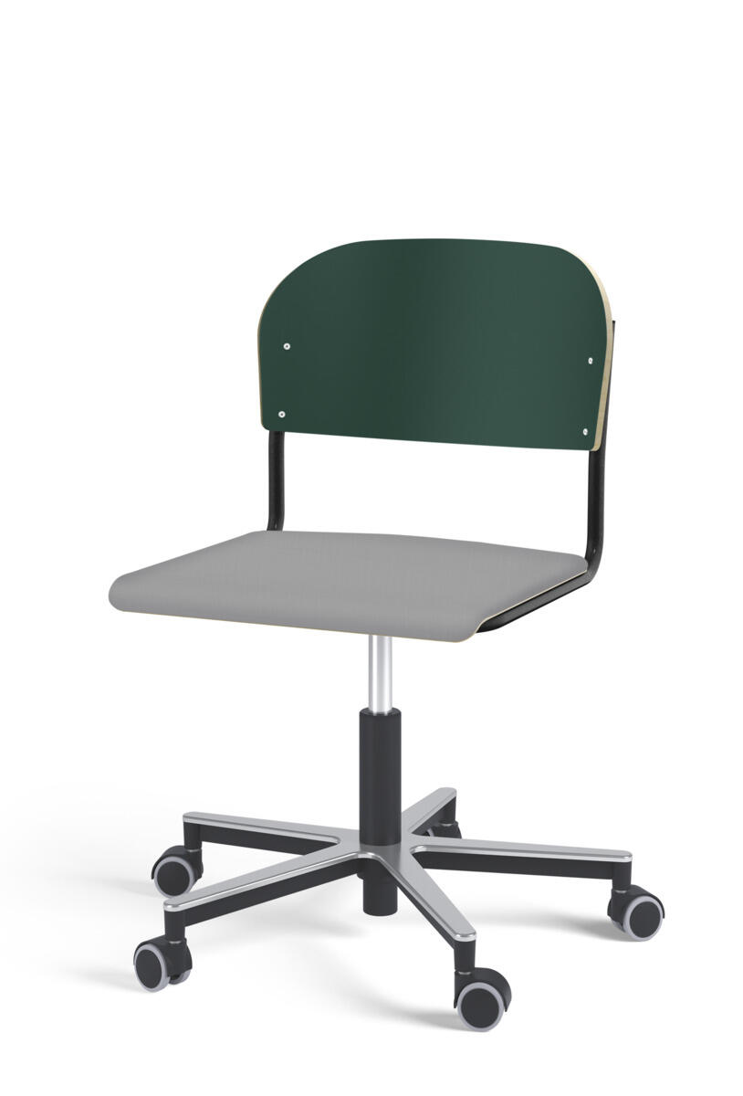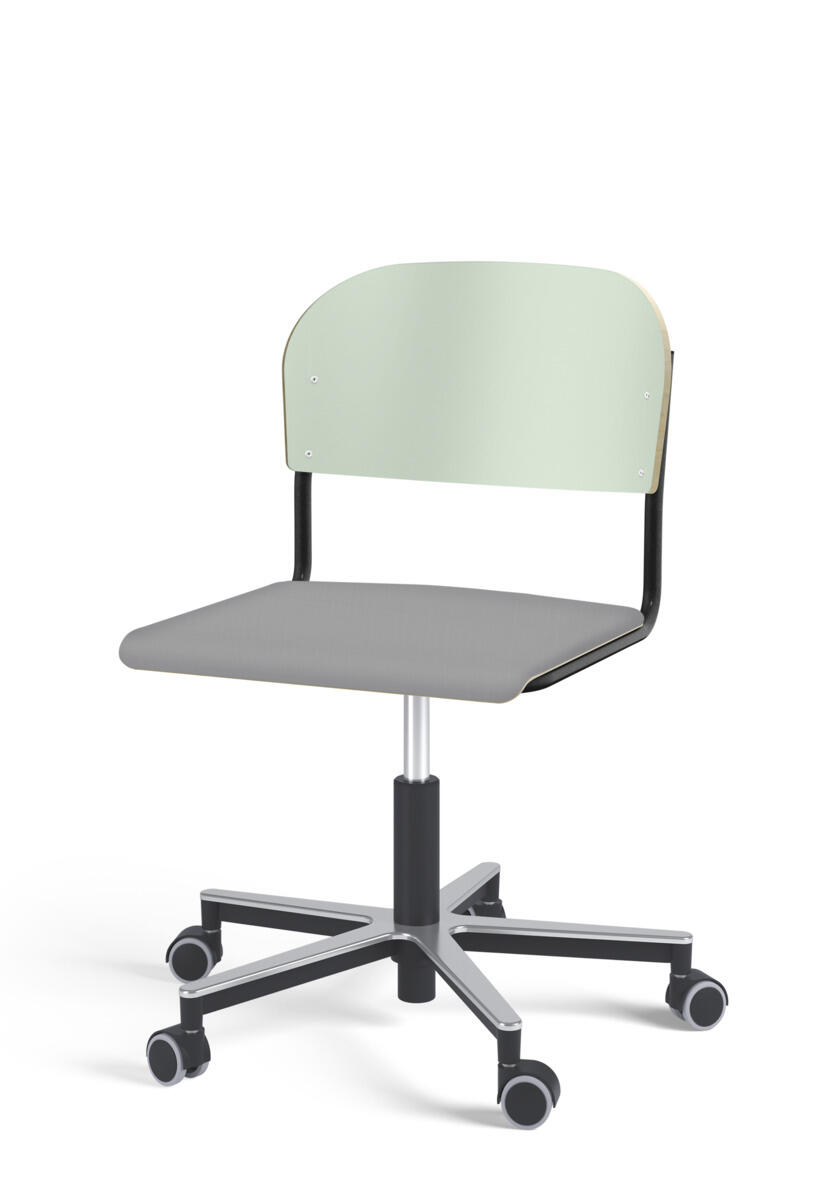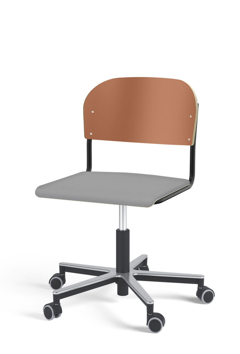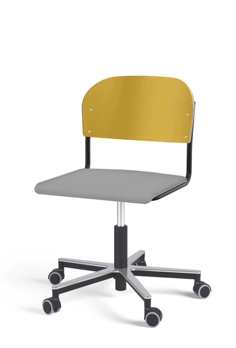 Oppilastuolin istuin ja selkänoja on valmistettu vanerista, pinnassa korkeapainelaminaattia. Kaasujousella portaattomasti säädettävä istuinkorkeus 38-51 cm. Pyörillä. Koottava. Lisävalintana istuinpehmuste.