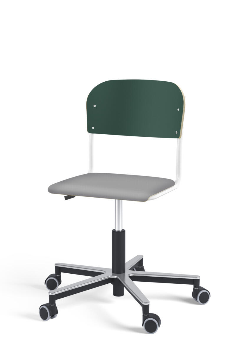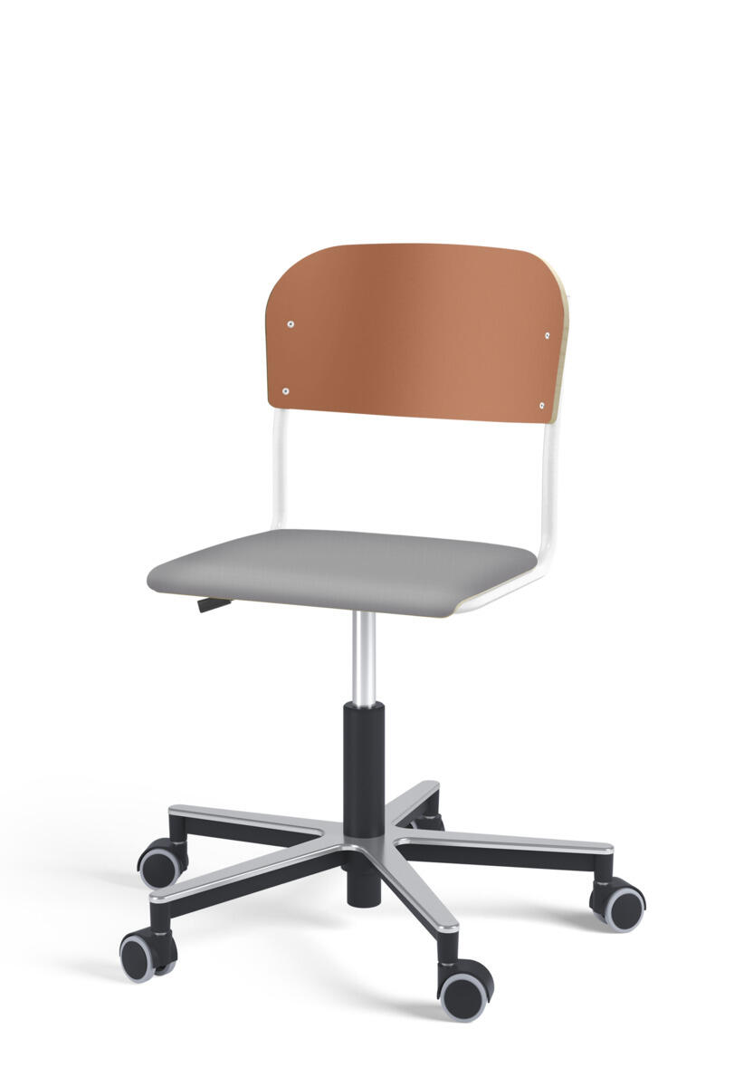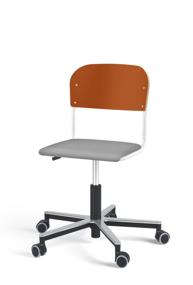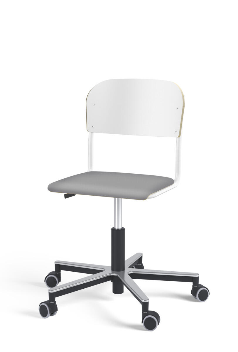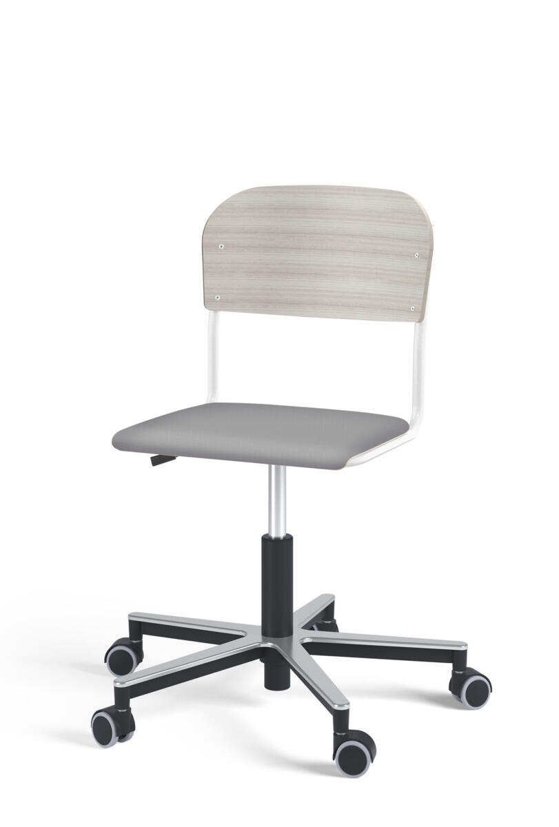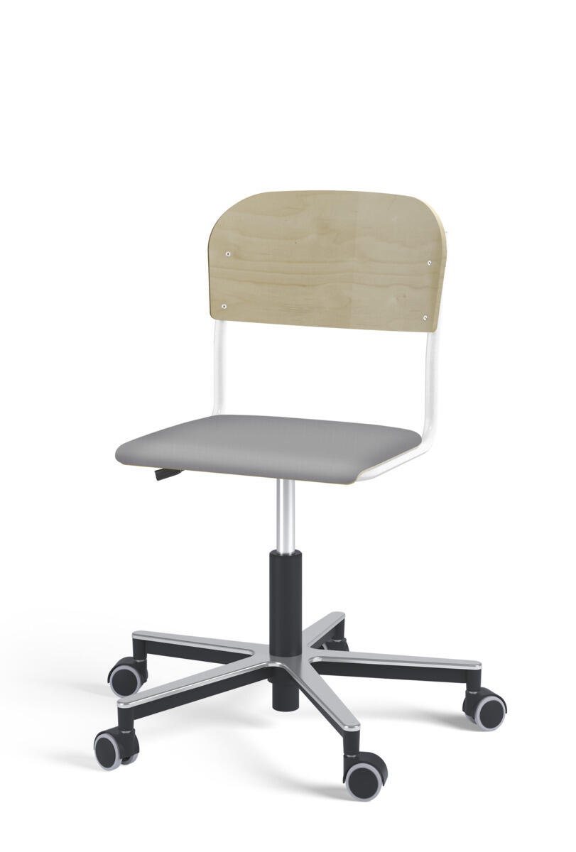 Oppilastuolin istuin ja selkänoja on valmistettu vanerista, pinnassa korkeapainelaminaattia. Kaasujousella portaattomasti säädettävä istuinkorkeus 38-51 cm. Toimitetaan osissa. Pyörillä. Lisävalintana istuinpehmuste.