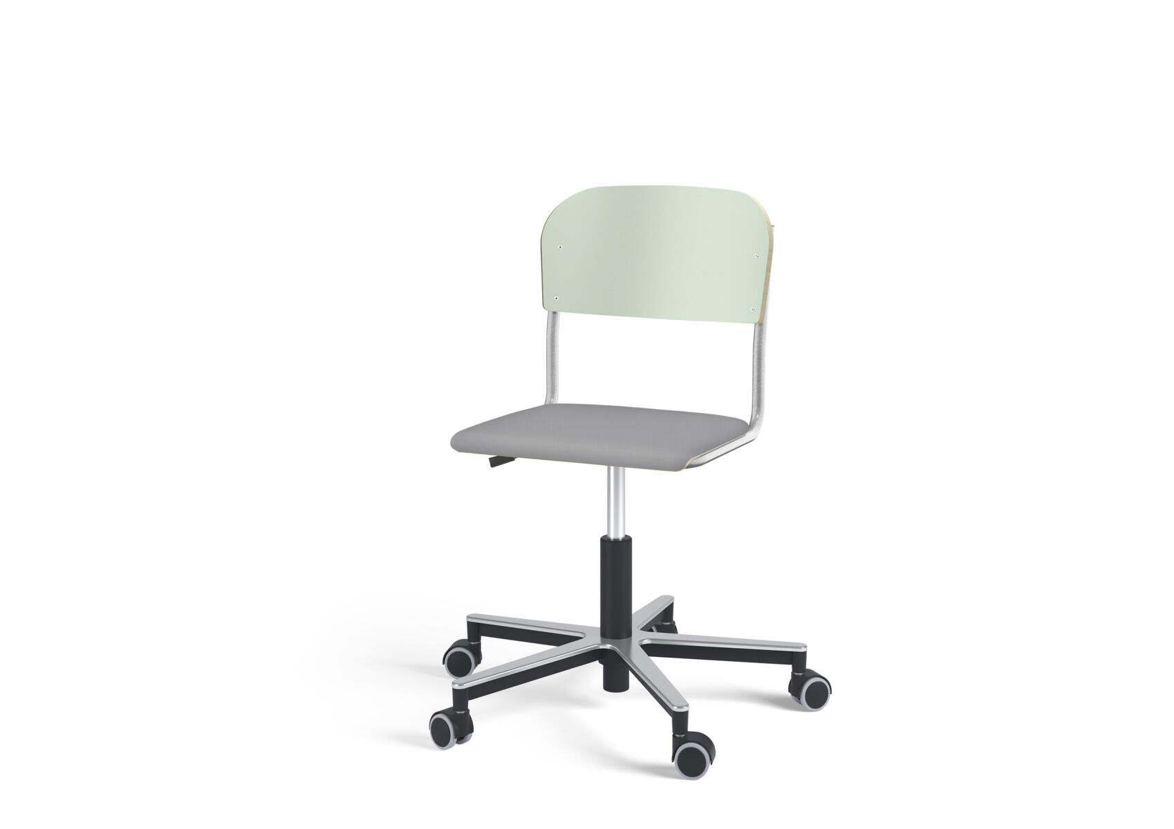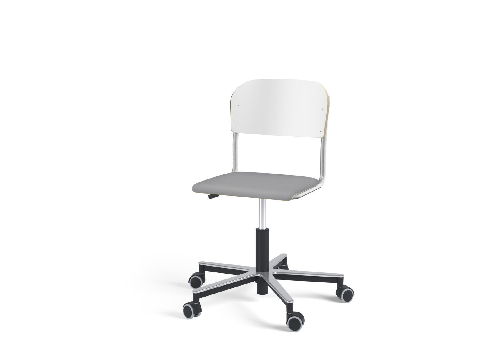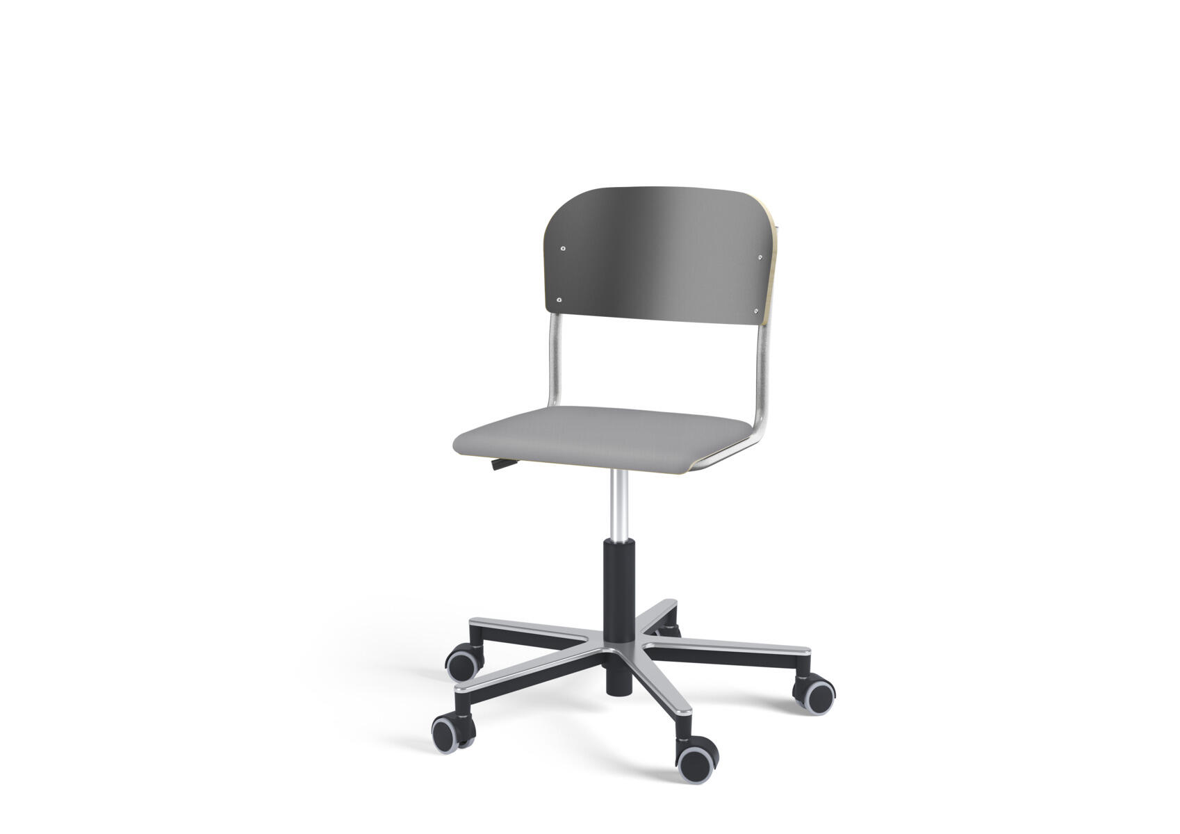 Oppilastuolin istuin ja selkänoja on valmistettu vanerista, pinnassa korkeapainelaminaattia. Kaasujousella portaattomasti säädettävä istuinkorkeus 38-51 cm. Pyörillä. Koottava. Lisävalintana istuinpehmuste.