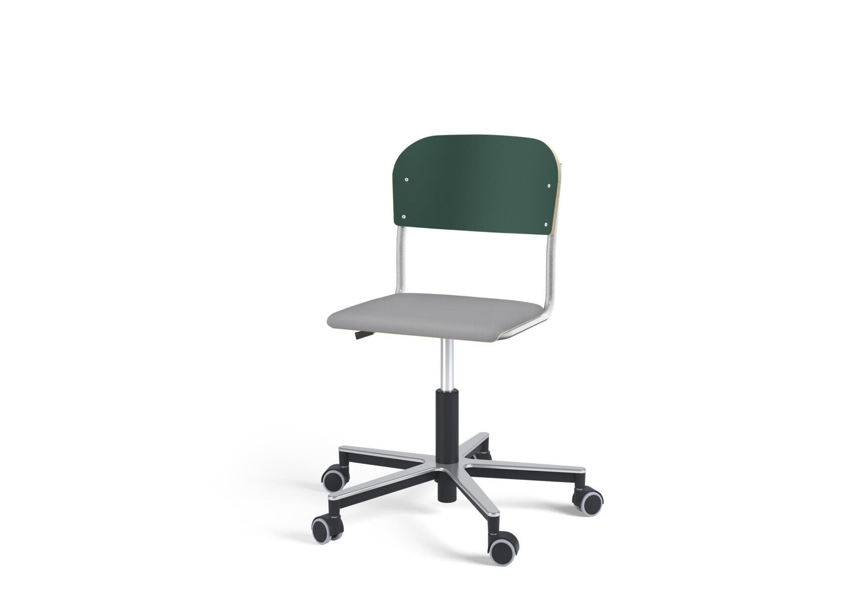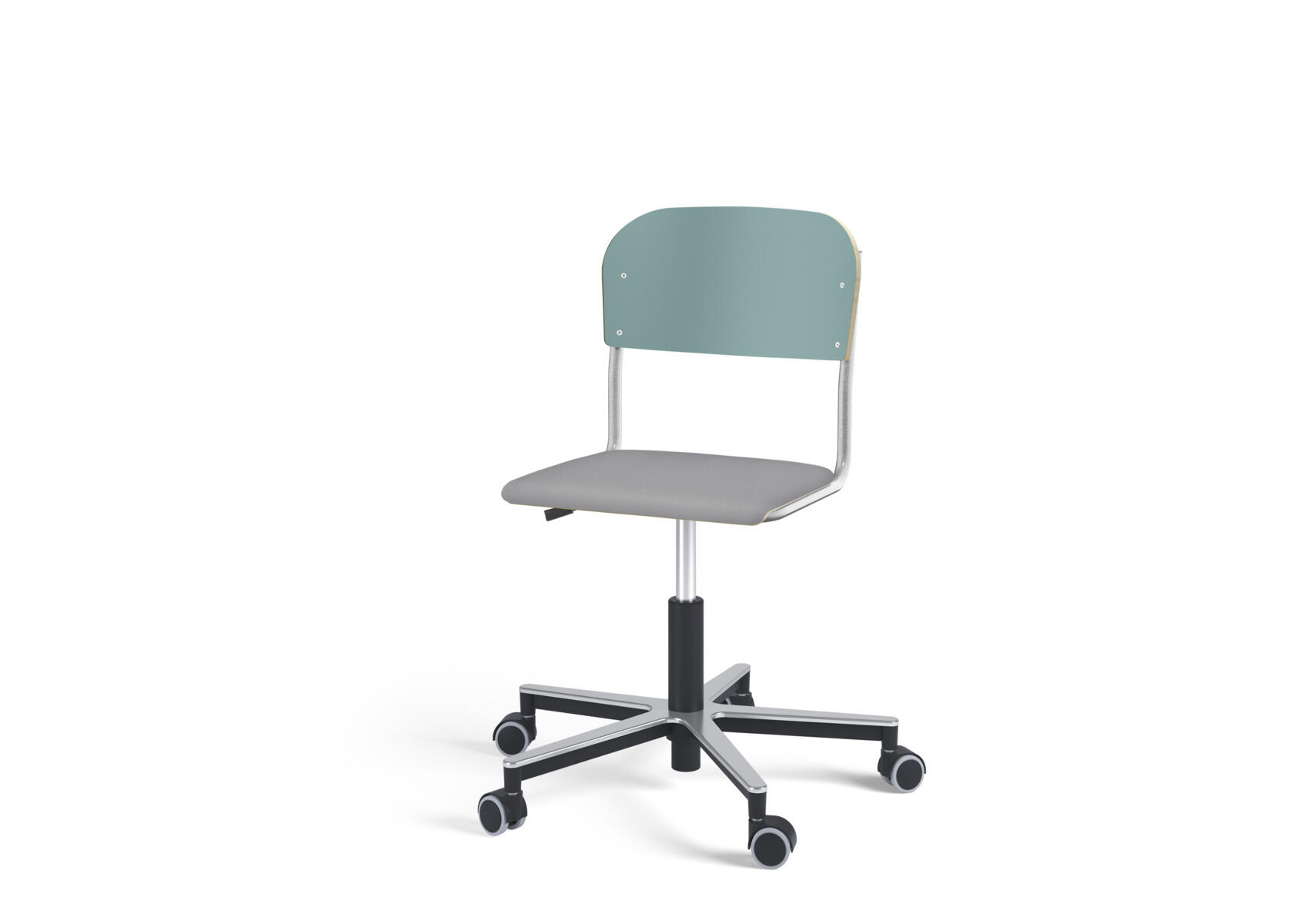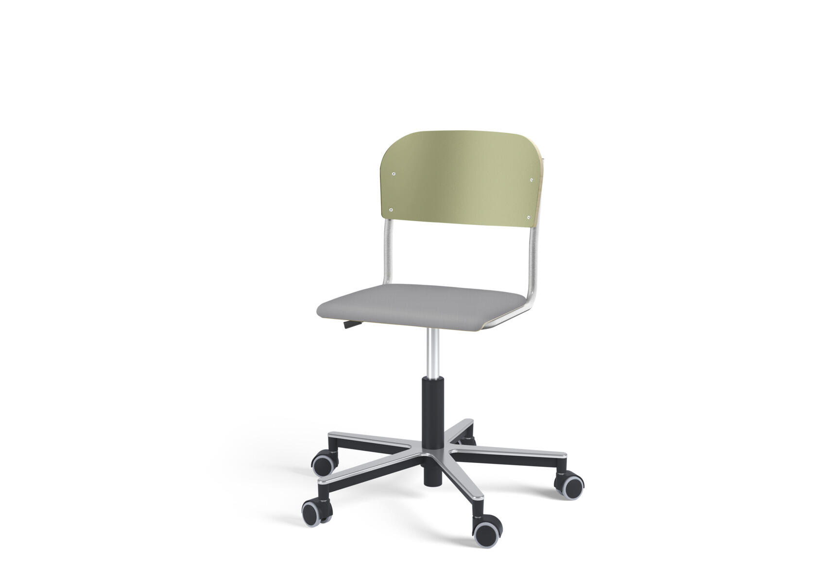 Oppilastuolin istuin ja selkänoja on valmistettu vanerista, pinnassa korkeapainelaminaattia. Kaasujousella portaattomasti säädettävä istuinkorkeus 38-51 cm. Pyörillä. Koottava. Lisävalintana istuinpehmuste.