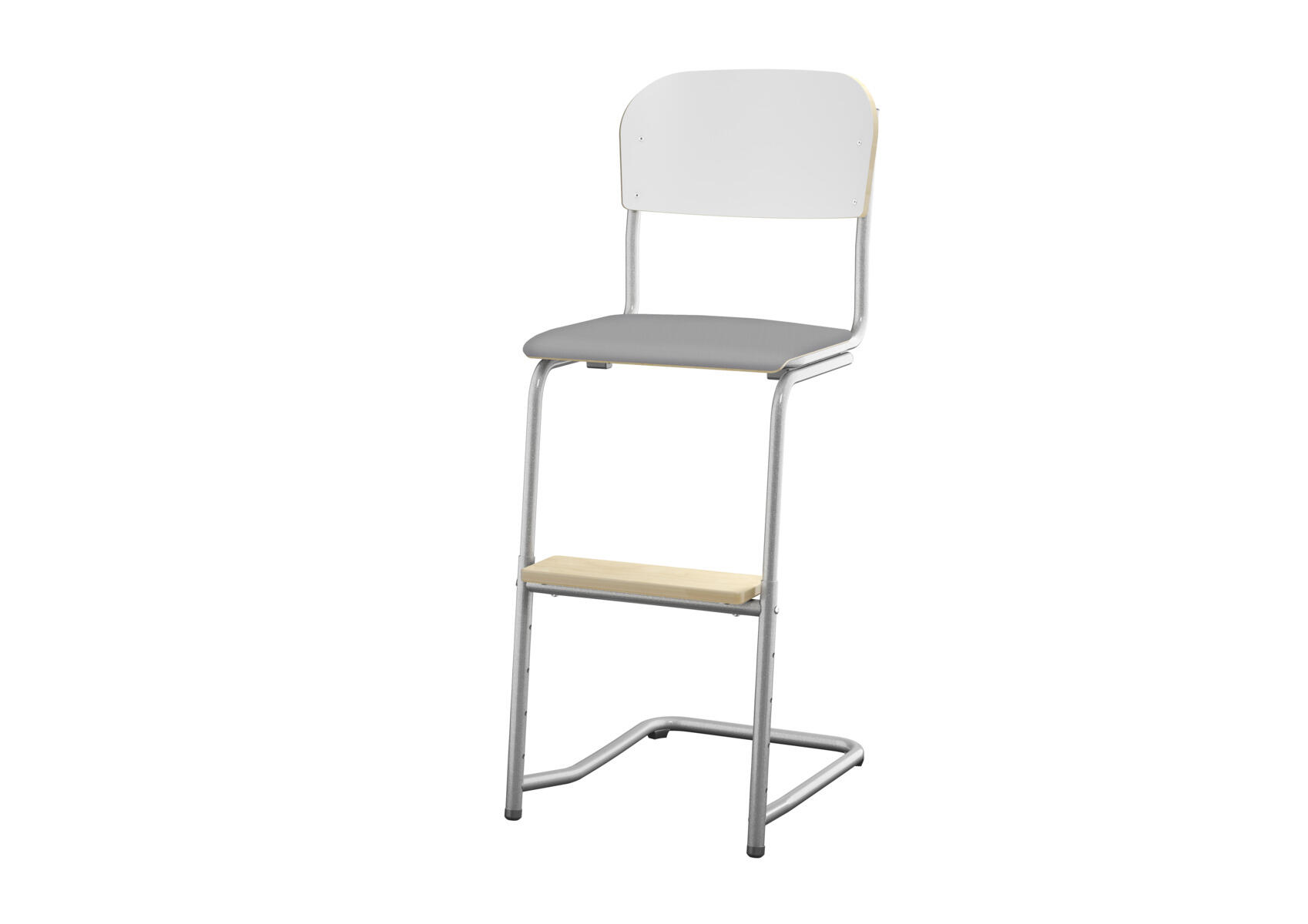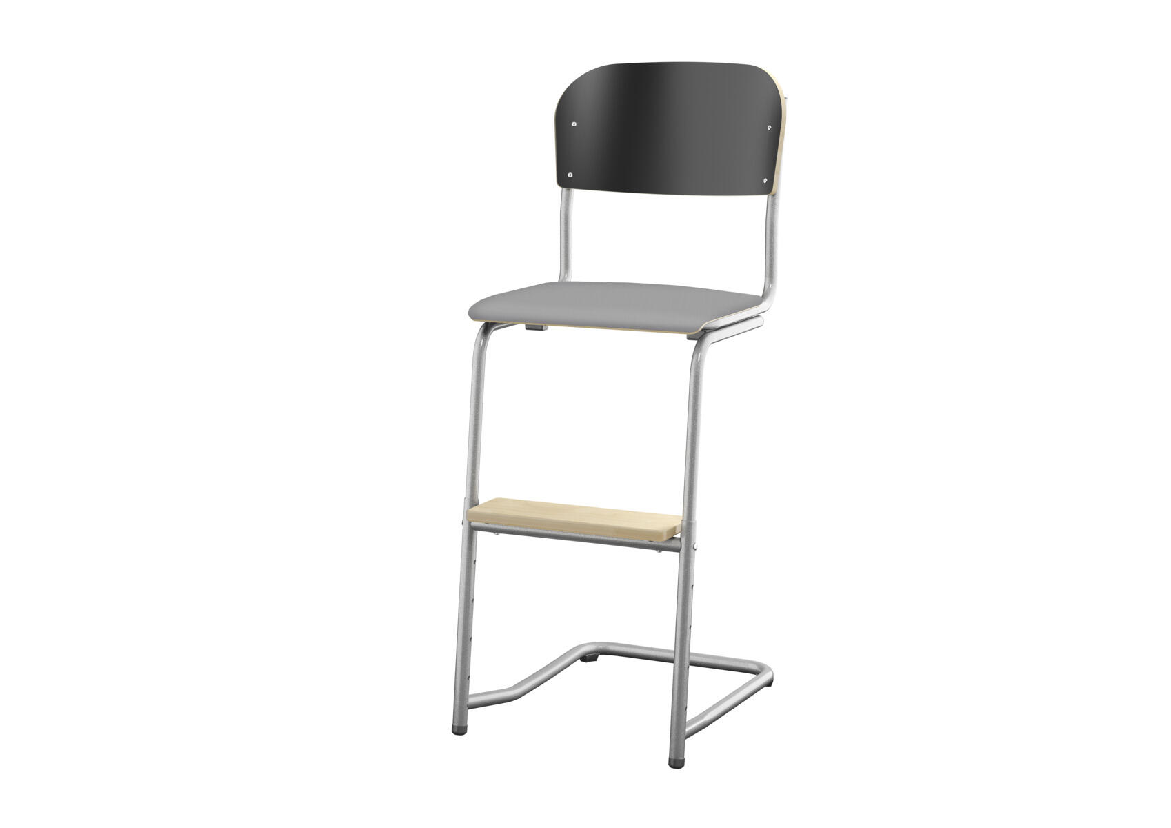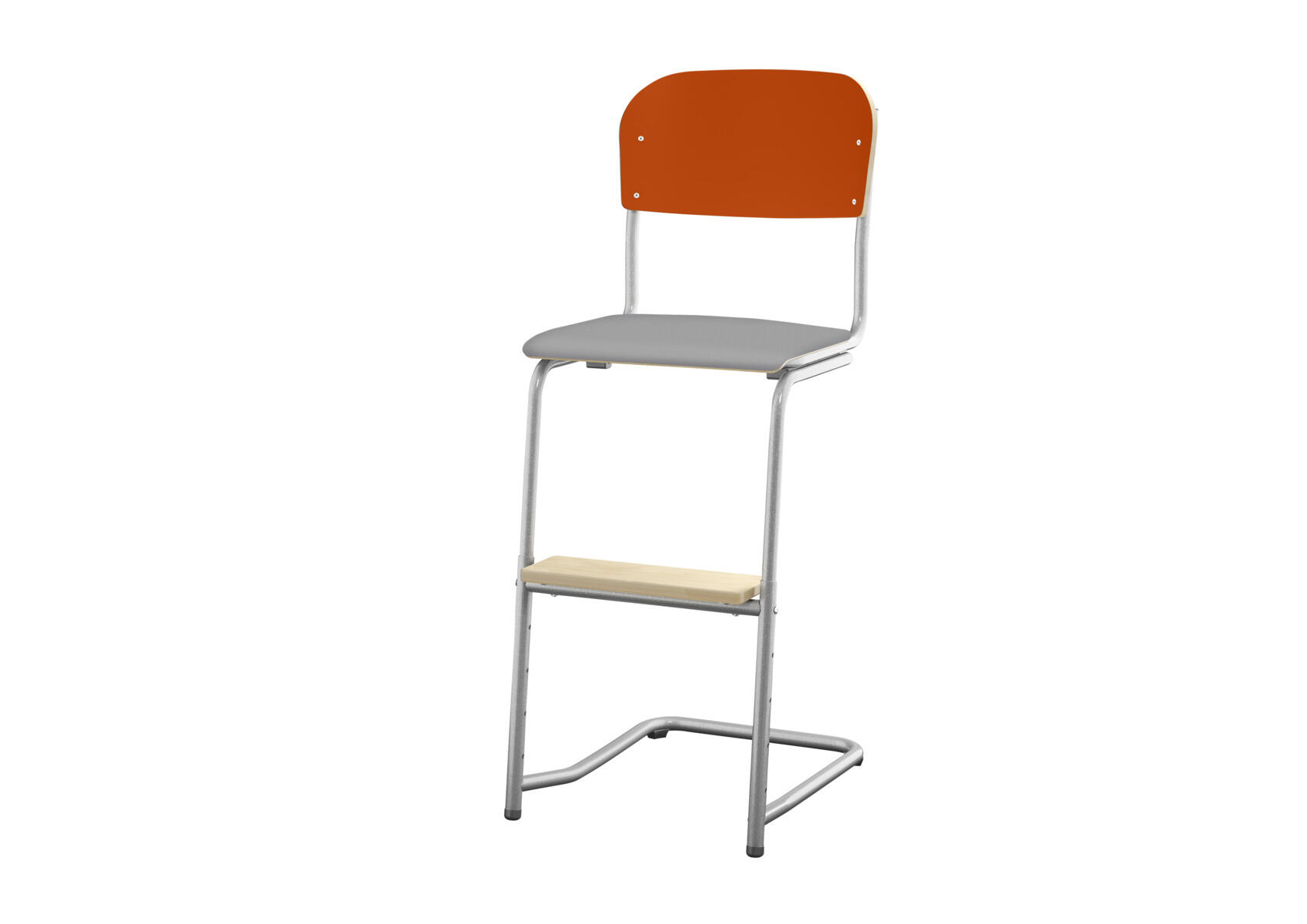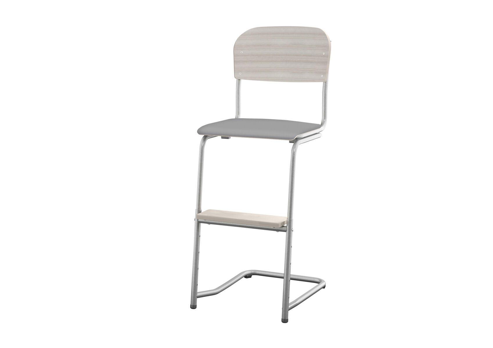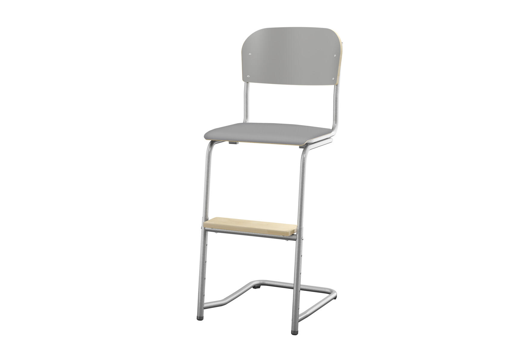 Oppilastuolin istuin ja selkänoja on valmistettu vanerista, pinnassa korkeapainelaminaattia. Korkeussäädettävä, pöytään ripustettava tuoli, joka on pinottavissa 4 kpl päällekkäin. Istuinkorkeudet 45, 51, 57 ja 63 cm. Säädettävällä jalkatuella. 5 eri korkeutta 5 cm välein. Huom! ylemmästä runkoputkestä tulee 2 reikää jäädä alempaan putkeen, tukevuuden varmistamiseksi. Maksimi istumakorkeus 63 cm. Lisävalintana istuinpehmuste.