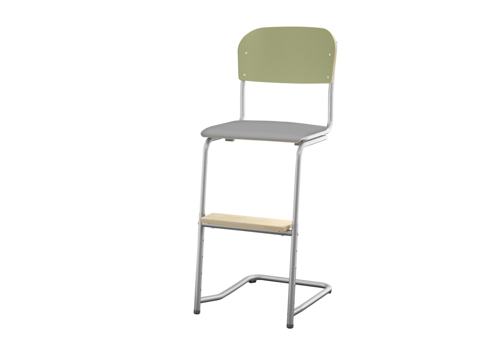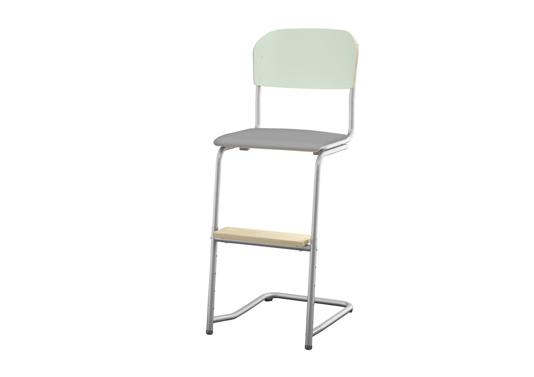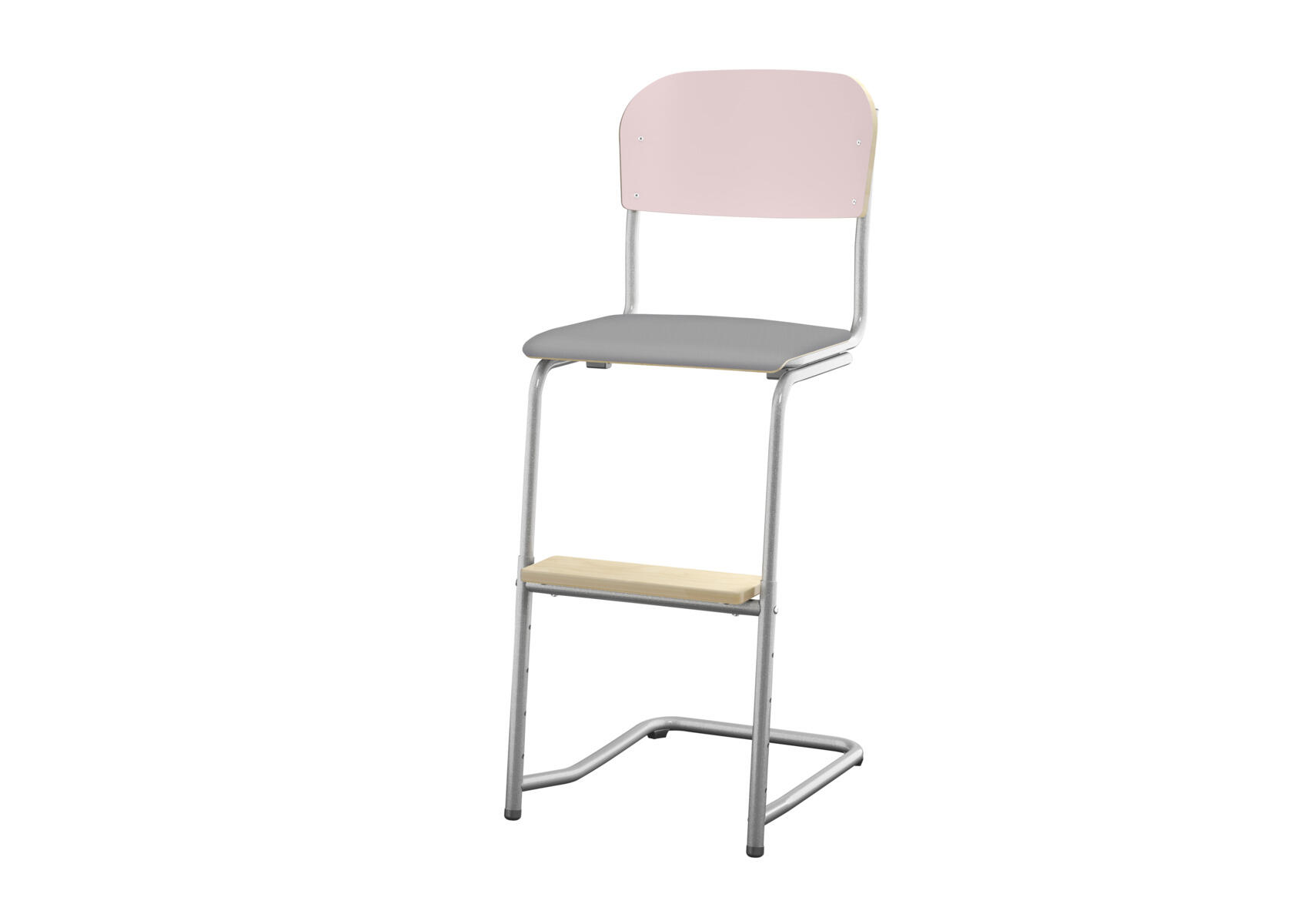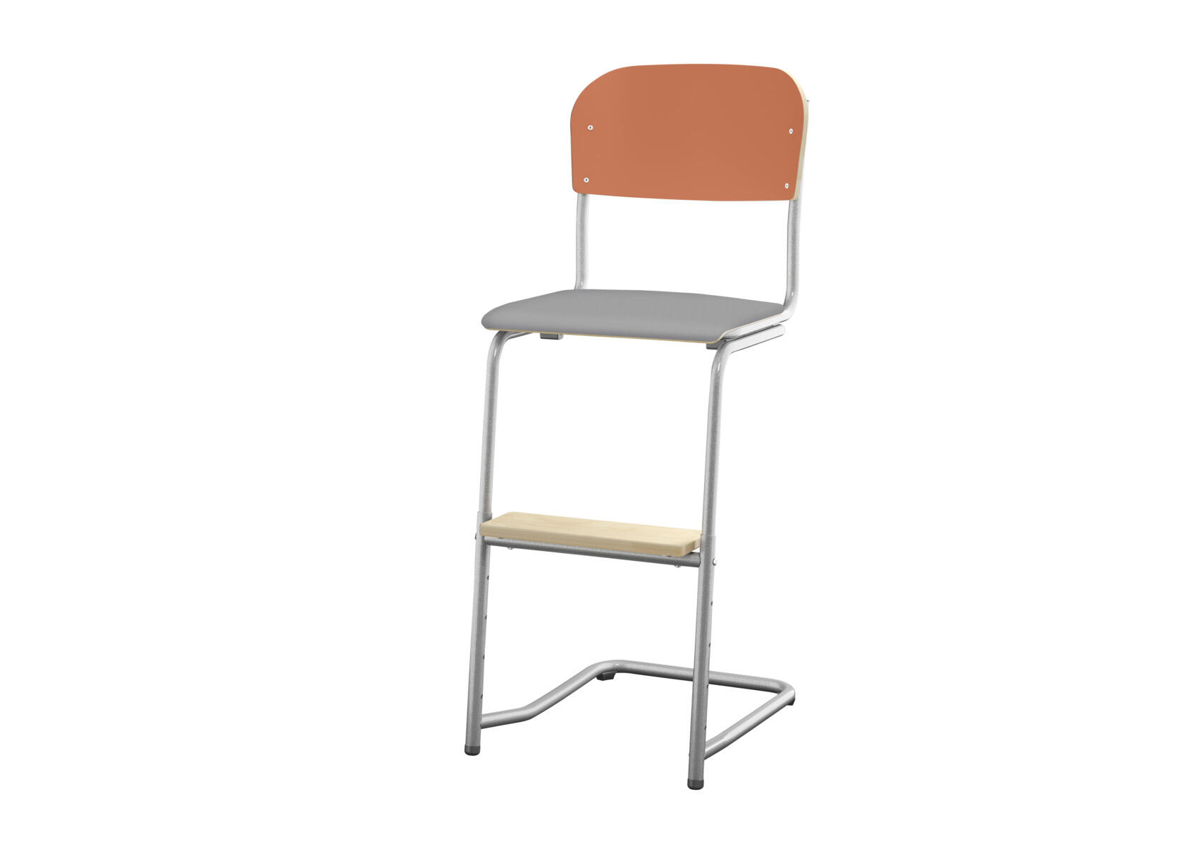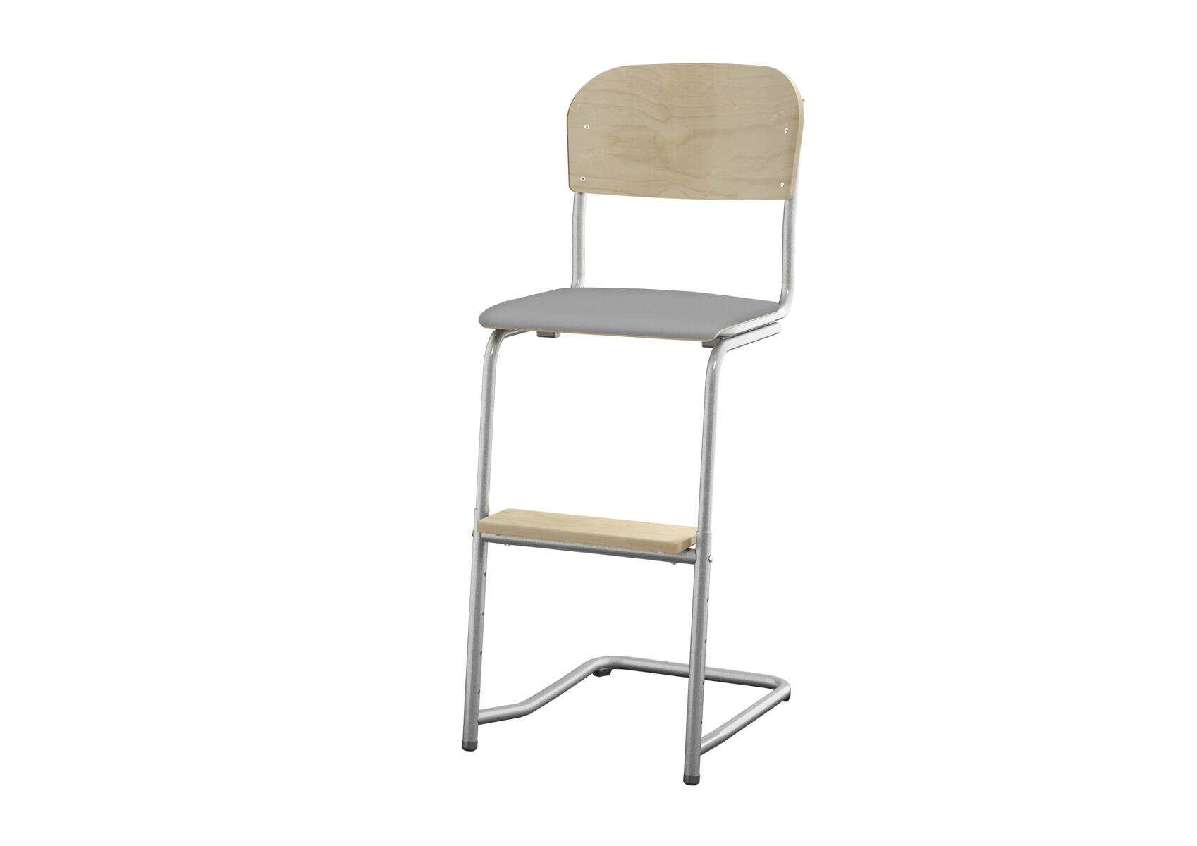 Oppilastuolin istuin ja selkänoja on valmistettu vanerista, pinnassa korkeapainelaminaattia. Korkeussäädettävä, pöytään ripustettava tuoli, joka on pinottavissa 4 kpl päällekkäin. Istuinkorkeudet 45, 51, 57 ja 63 cm. Säädettävällä jalkatuella. 5 eri korkeutta 5 cm välein. Huom! ylemmästä runkoputkestä tulee 2 reikää jäädä alempaan putkeen, tukevuuden varmistamiseksi. Maksimi istumakorkeus 63 cm. Lisävalintana istuinpehmuste.